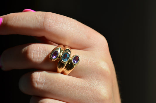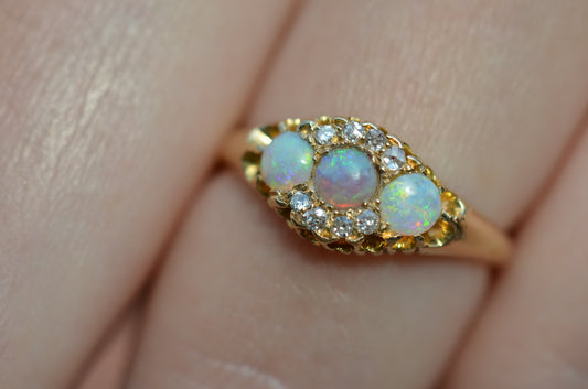 Romantic Victorian Diamond and Opal Trilogy Ring