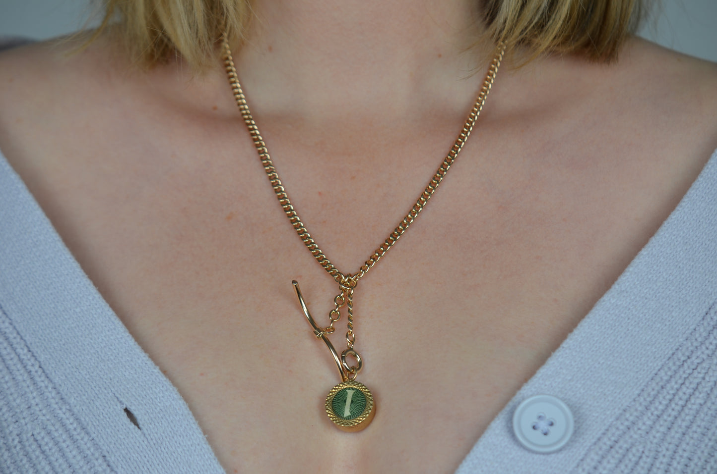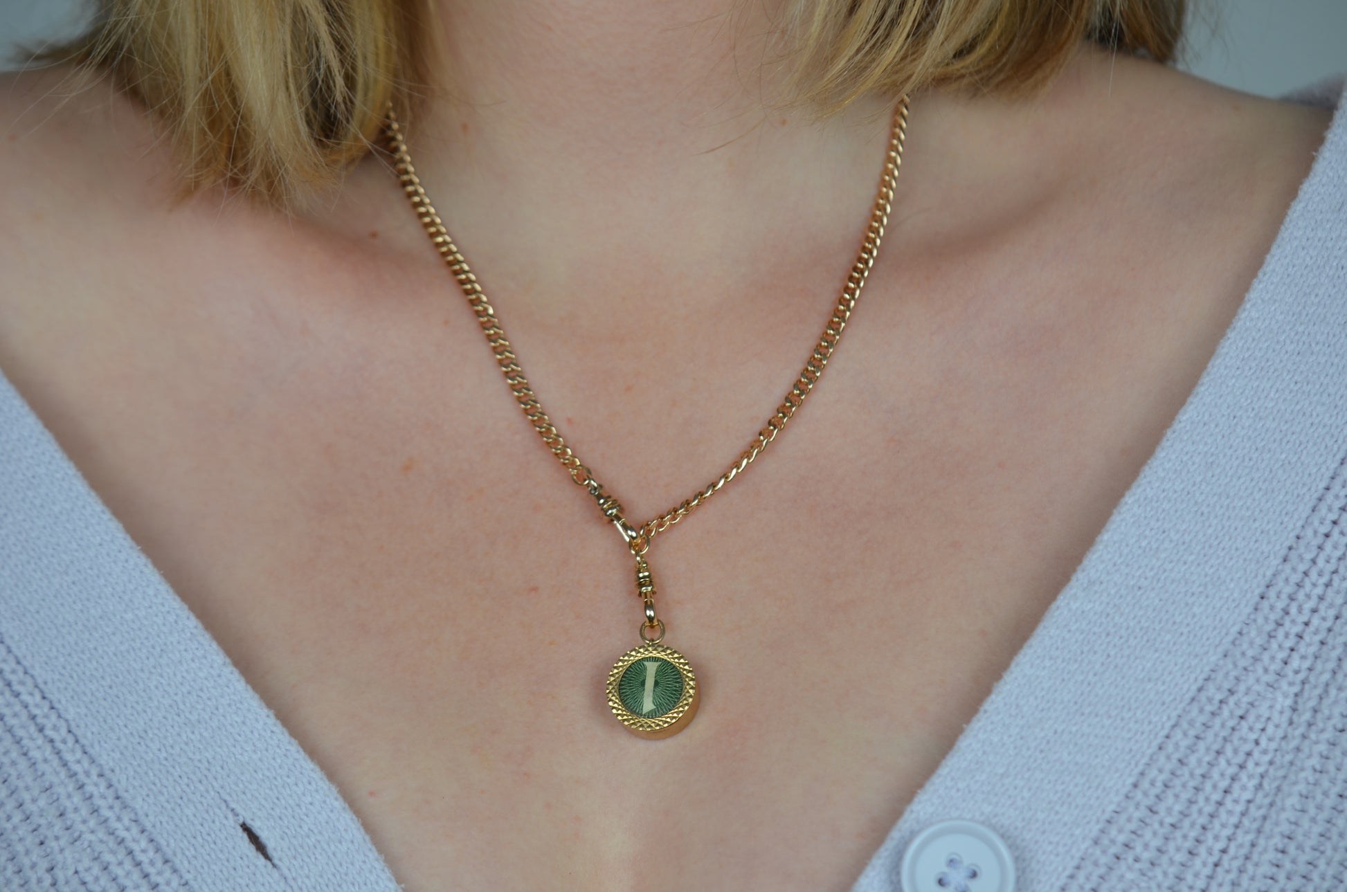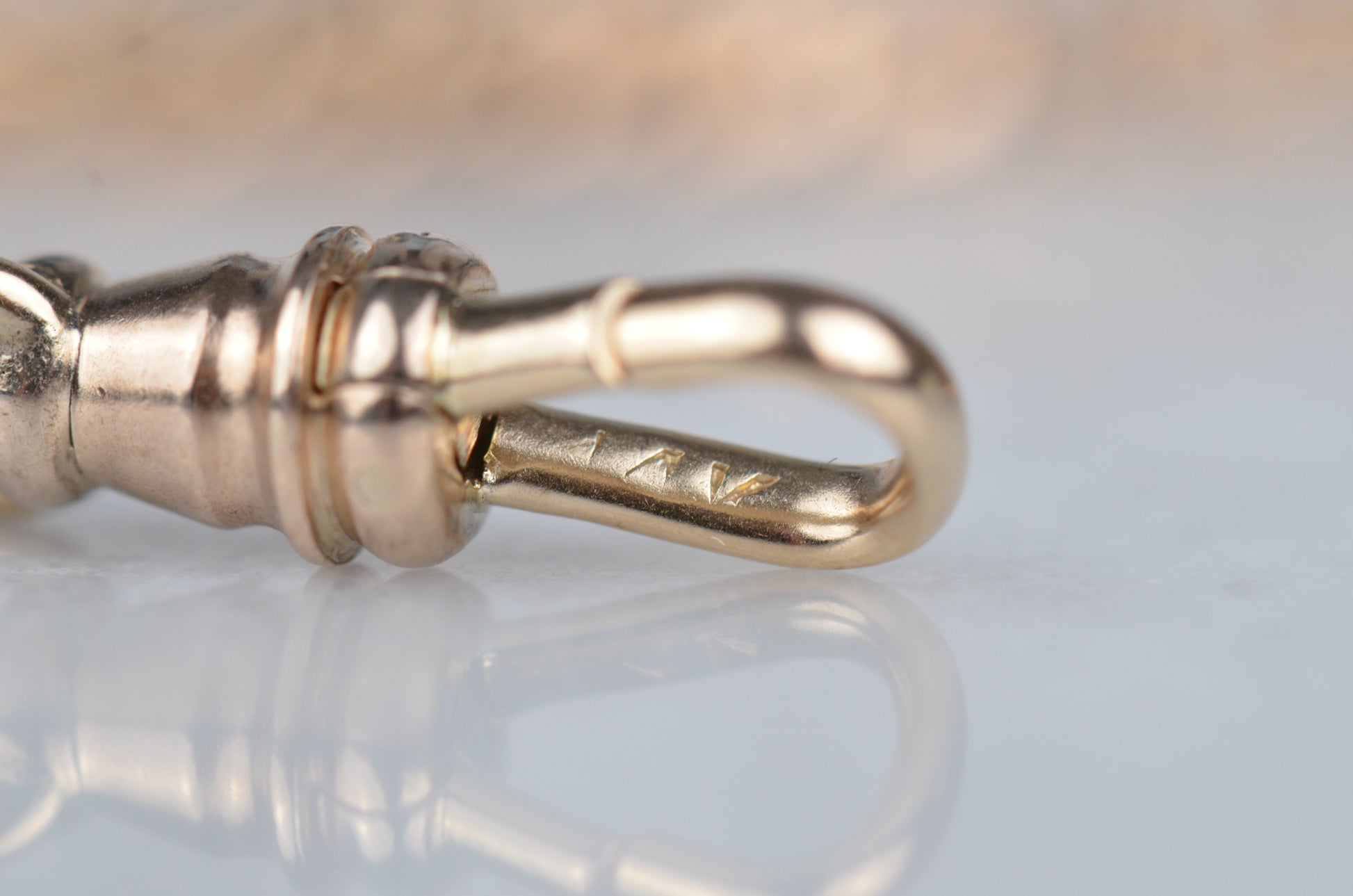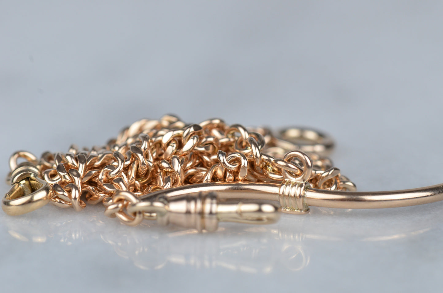 A gorgeous gold watch chain - in harder to find yellow gold - is among the most versatile pieces you can add to your collection. In its traditional style, the t-bar would slip easily through a button hole on a vest or a top, and at either end a dog clip closure makes for an easy way to attach a pocket watch, a fob, or any selection of tools or charms. Give it a modern twist by wrapping it around your wrist, or by wearing it as a necklace with either the t-bar or clasps hanging from your collarbone. Easily add charms alone or in groups, or add your favourite split ring full of them.