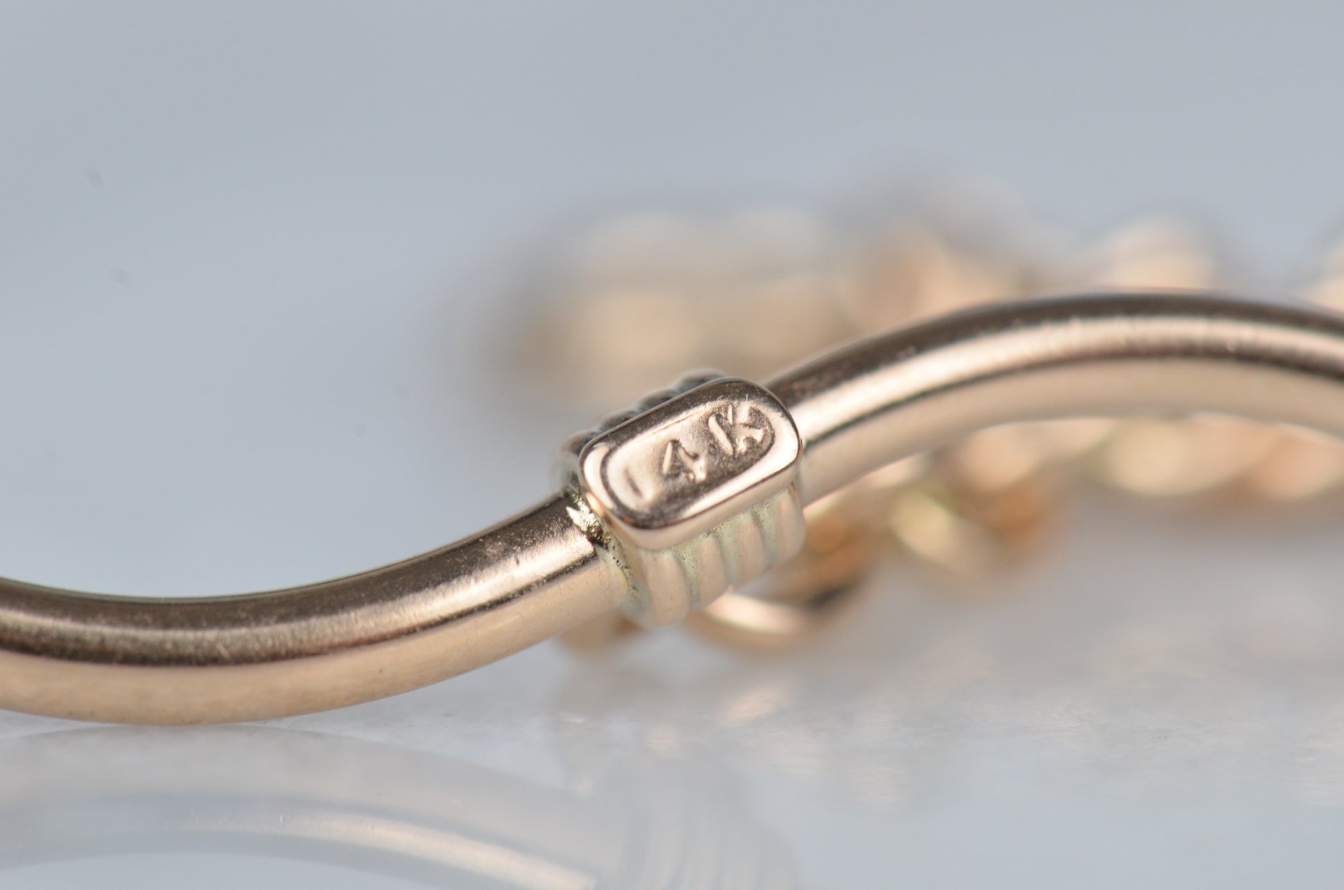 • 14k yellow gold, stamped on t-bar and dog clips, and tested throughout