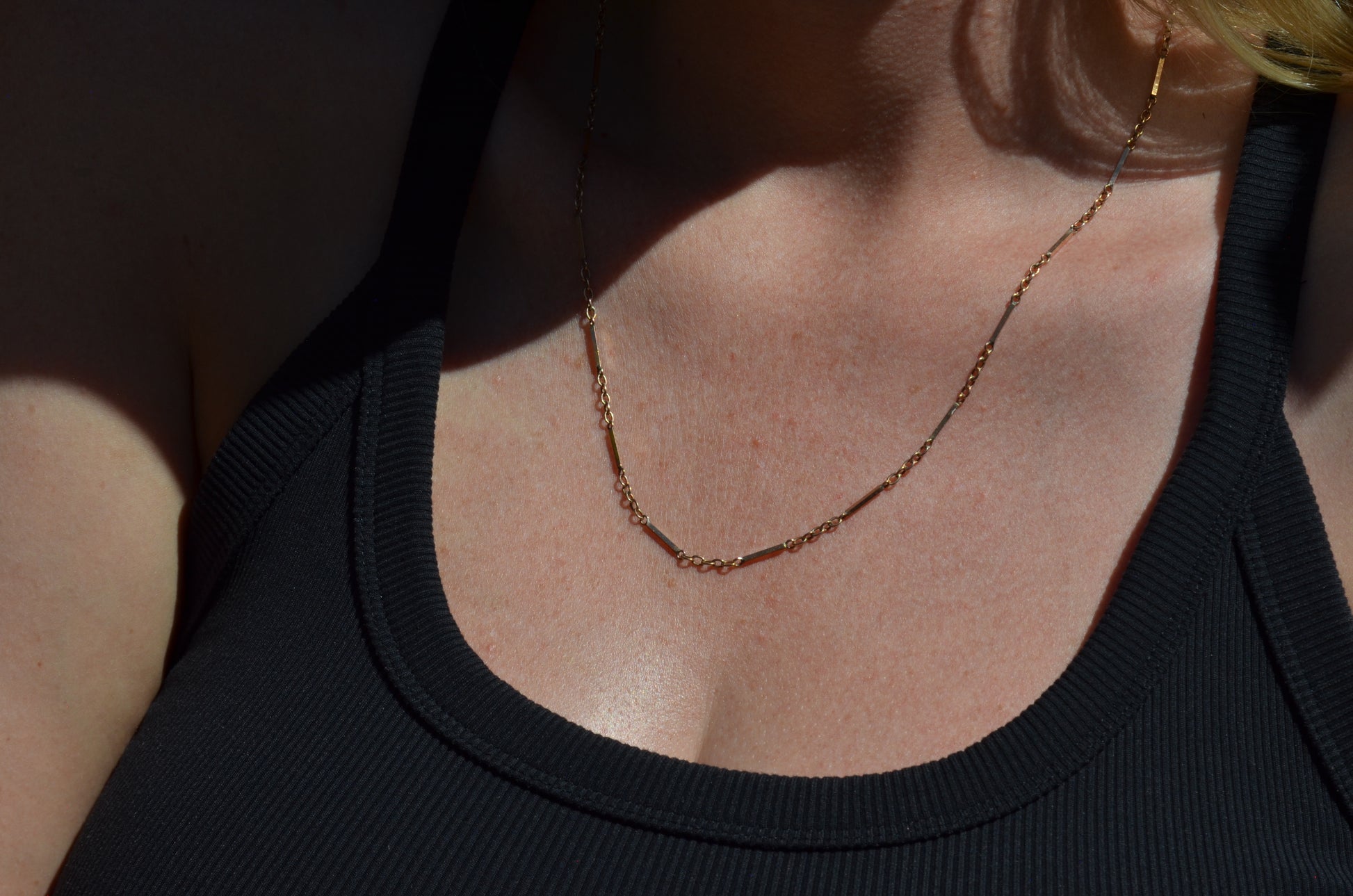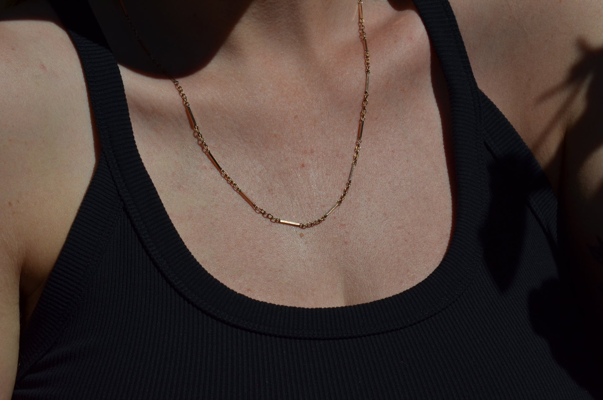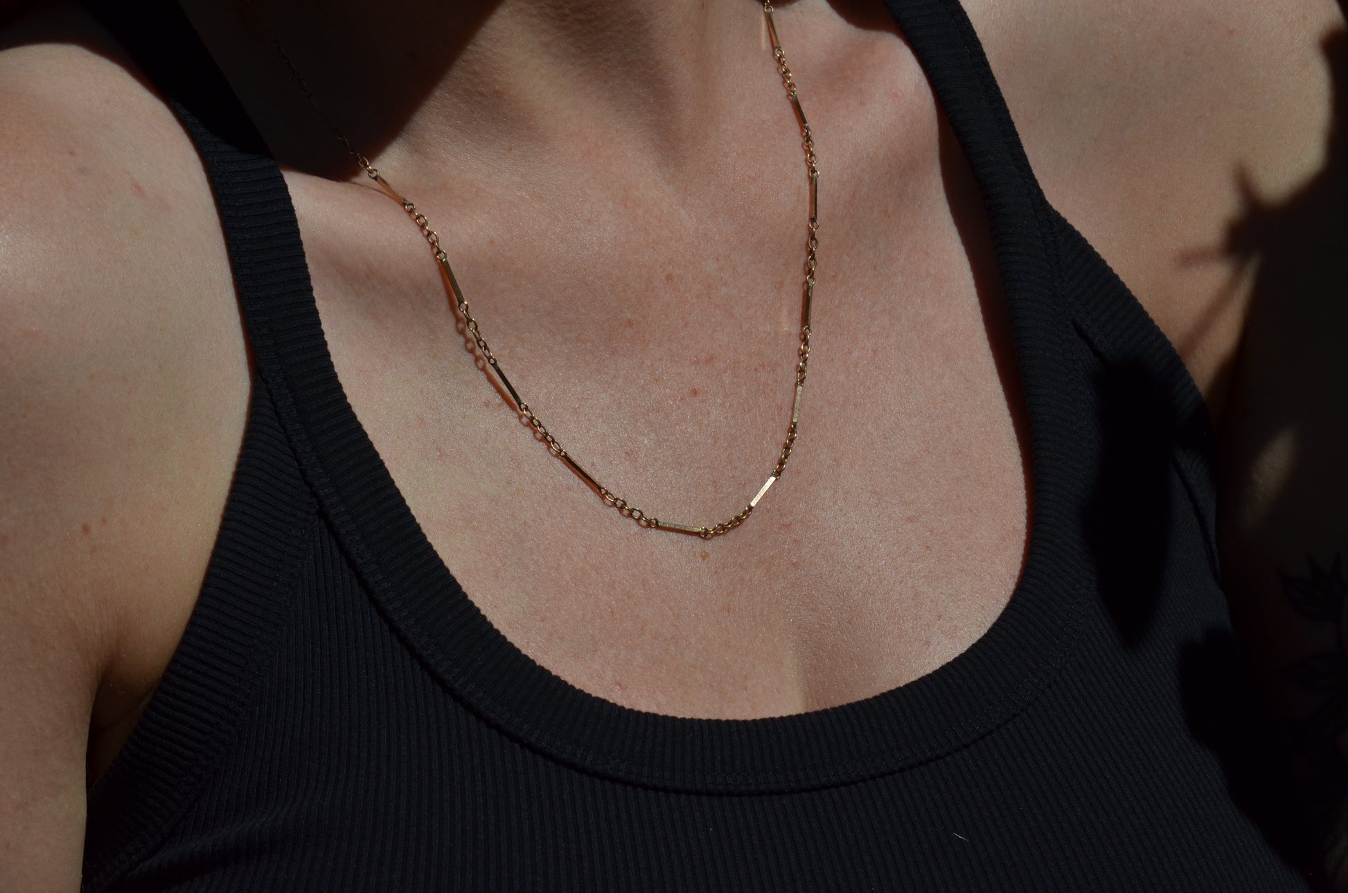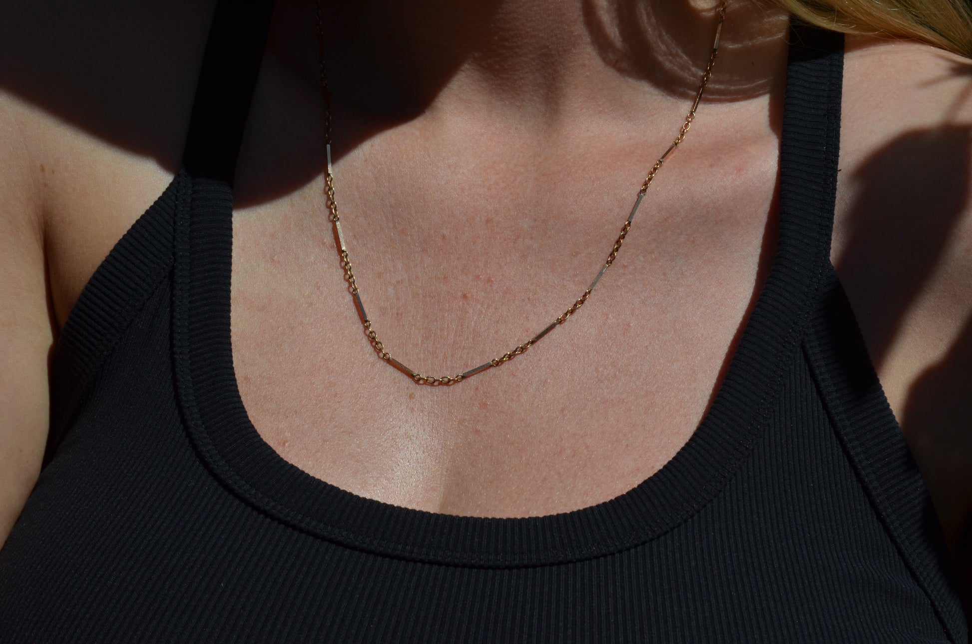 A gorgeous bar chain interspersed with classic rolo links, this necklace is gorgeous with a pendant or solo. Sleek and structured but with lovely movement, this is a great way to add a little depth and interest within your necklace wardrobe.