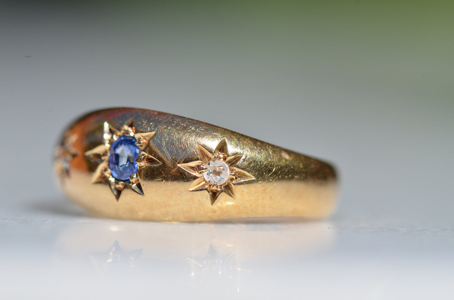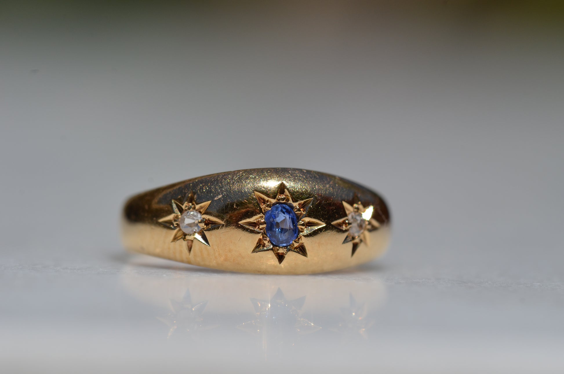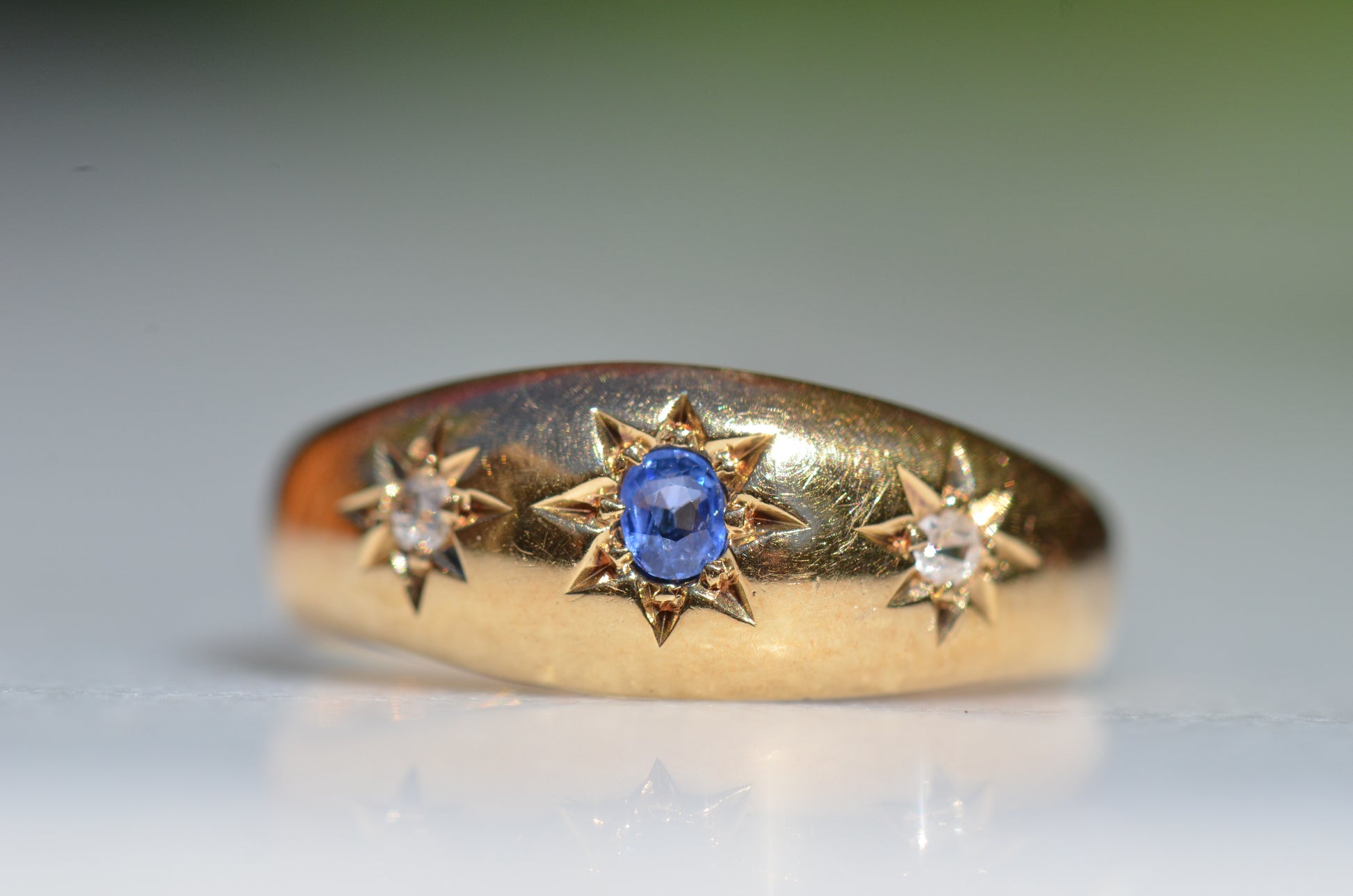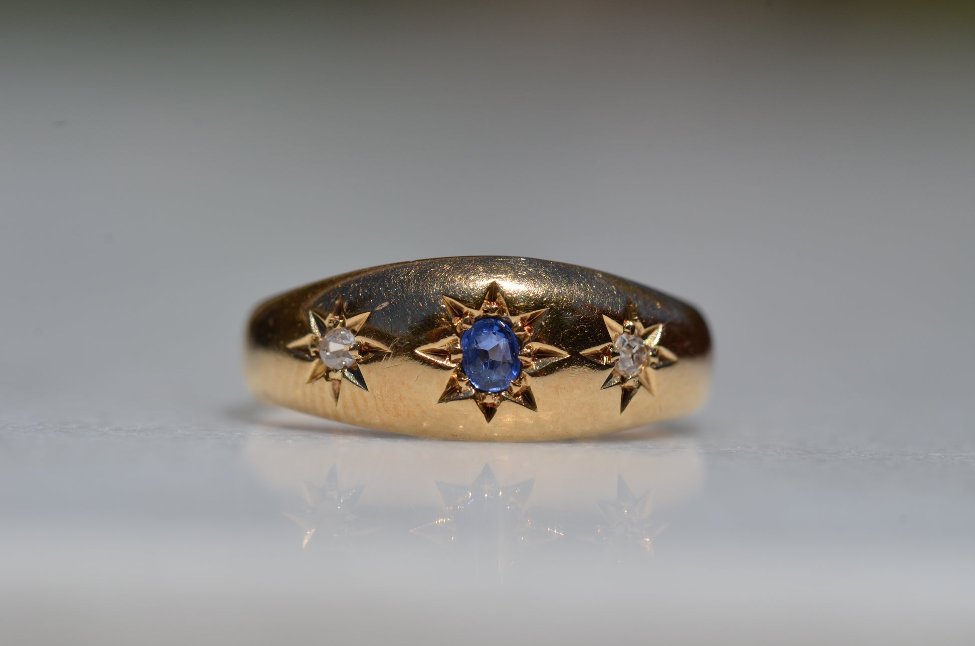 Antique Sapphire Diamond Starburst Trilogy Ring