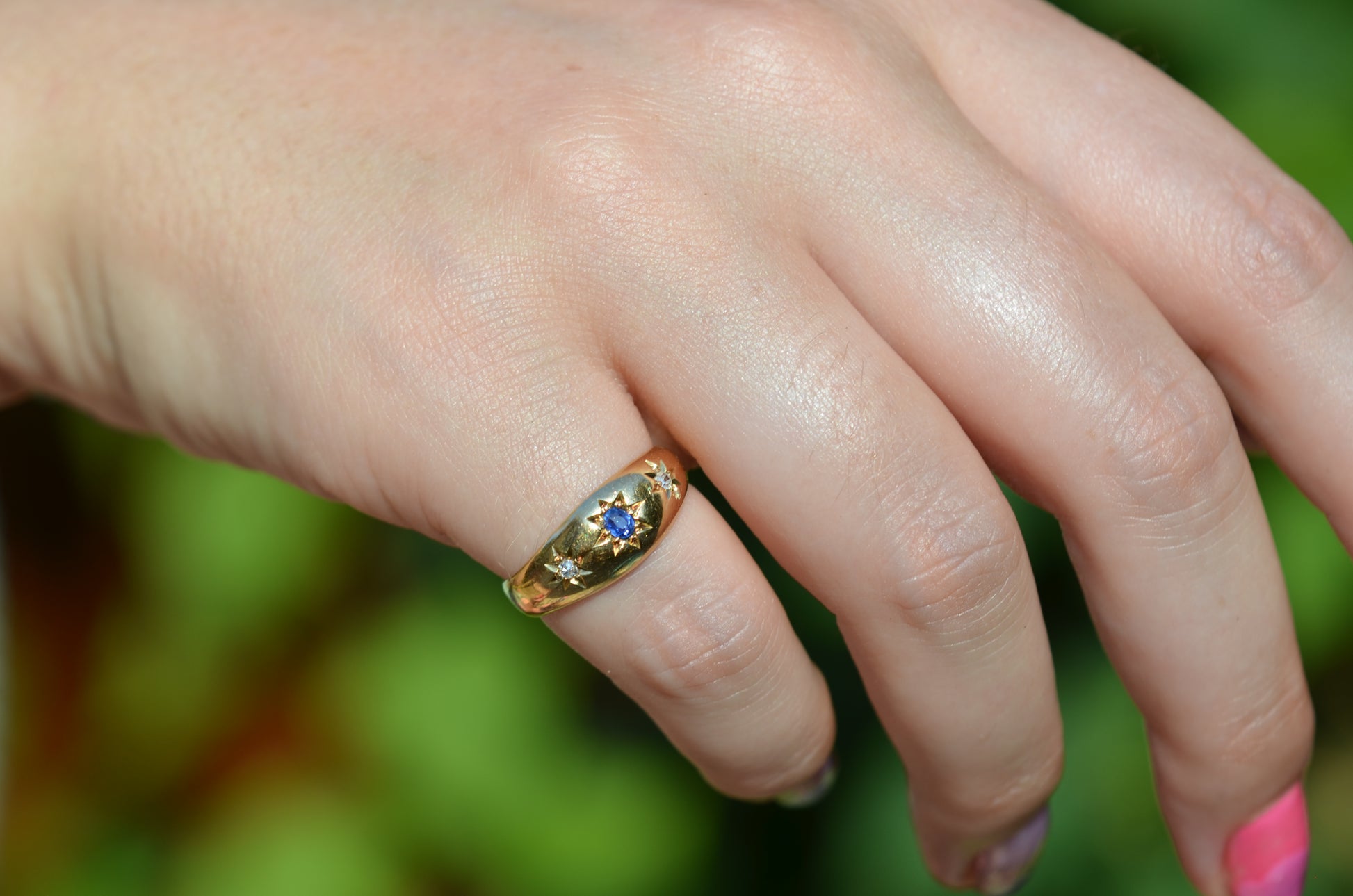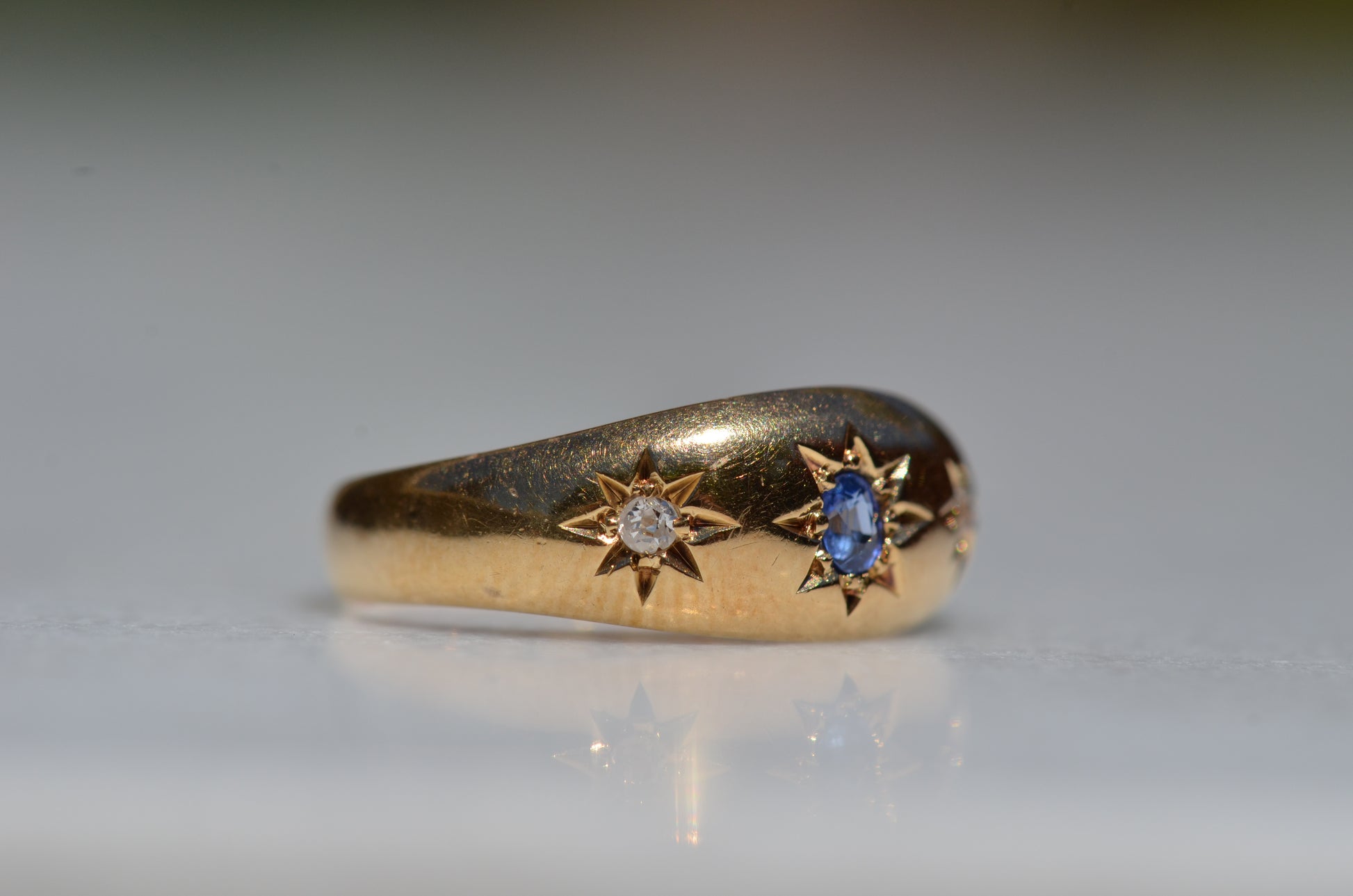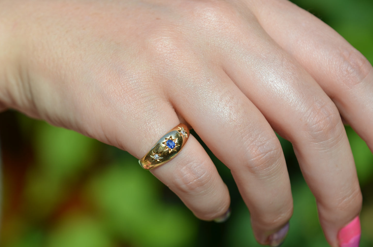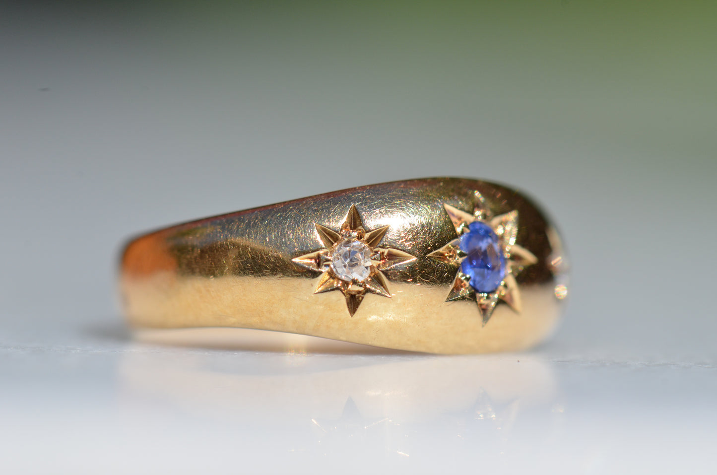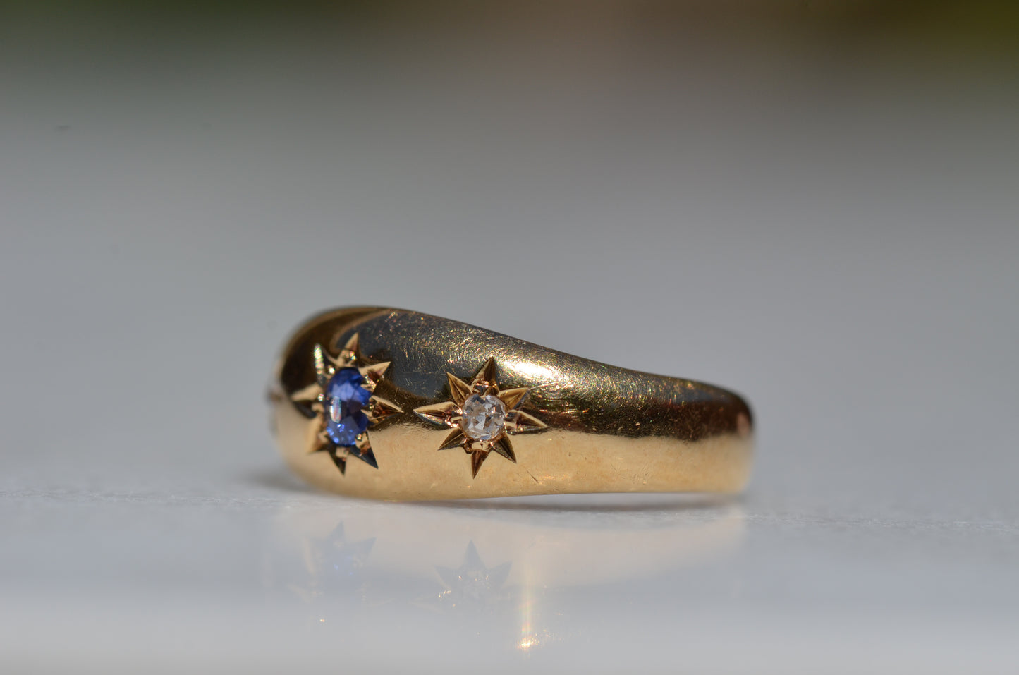 Antique Sapphire Diamond Starburst Trilogy Ring