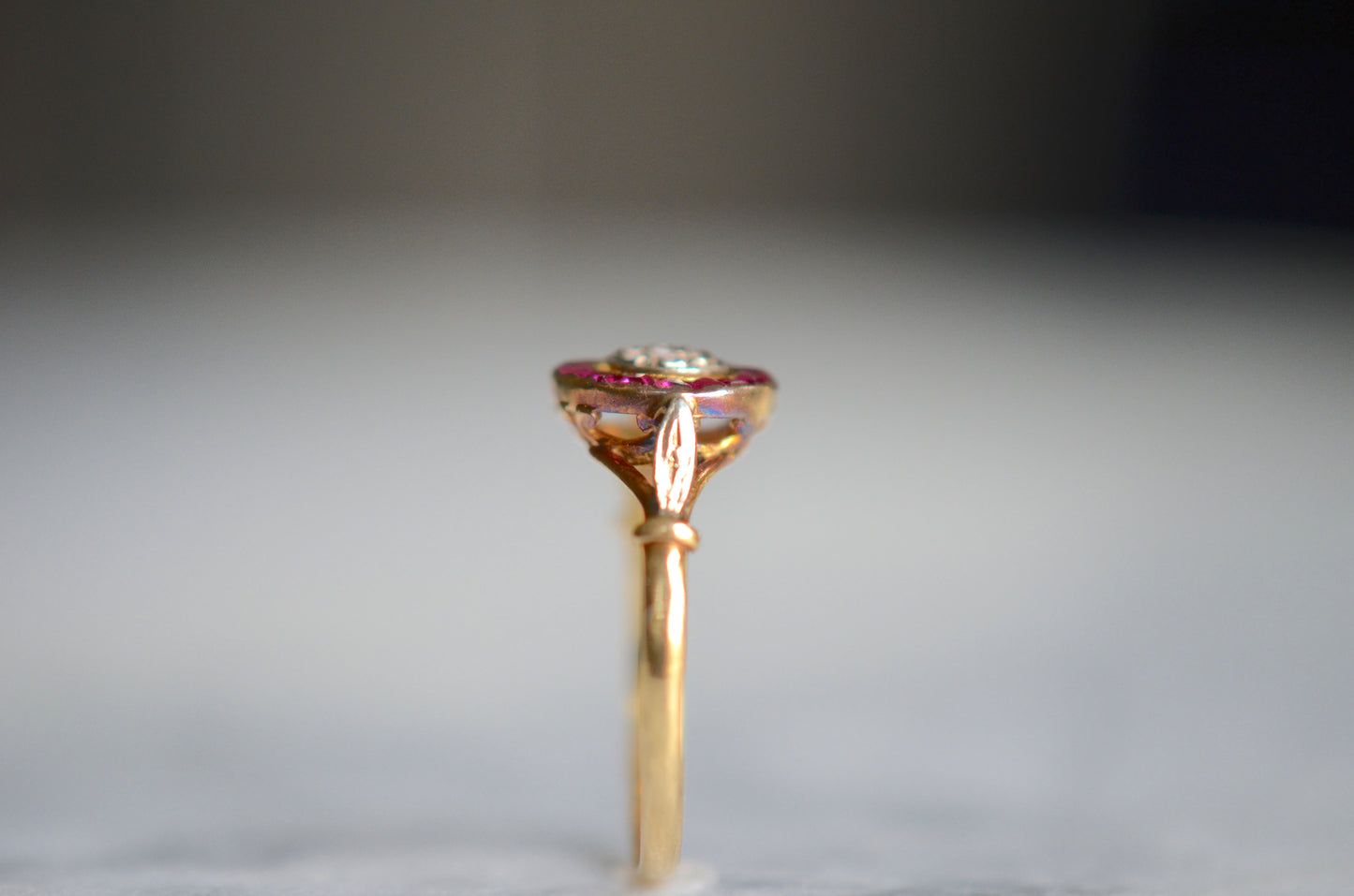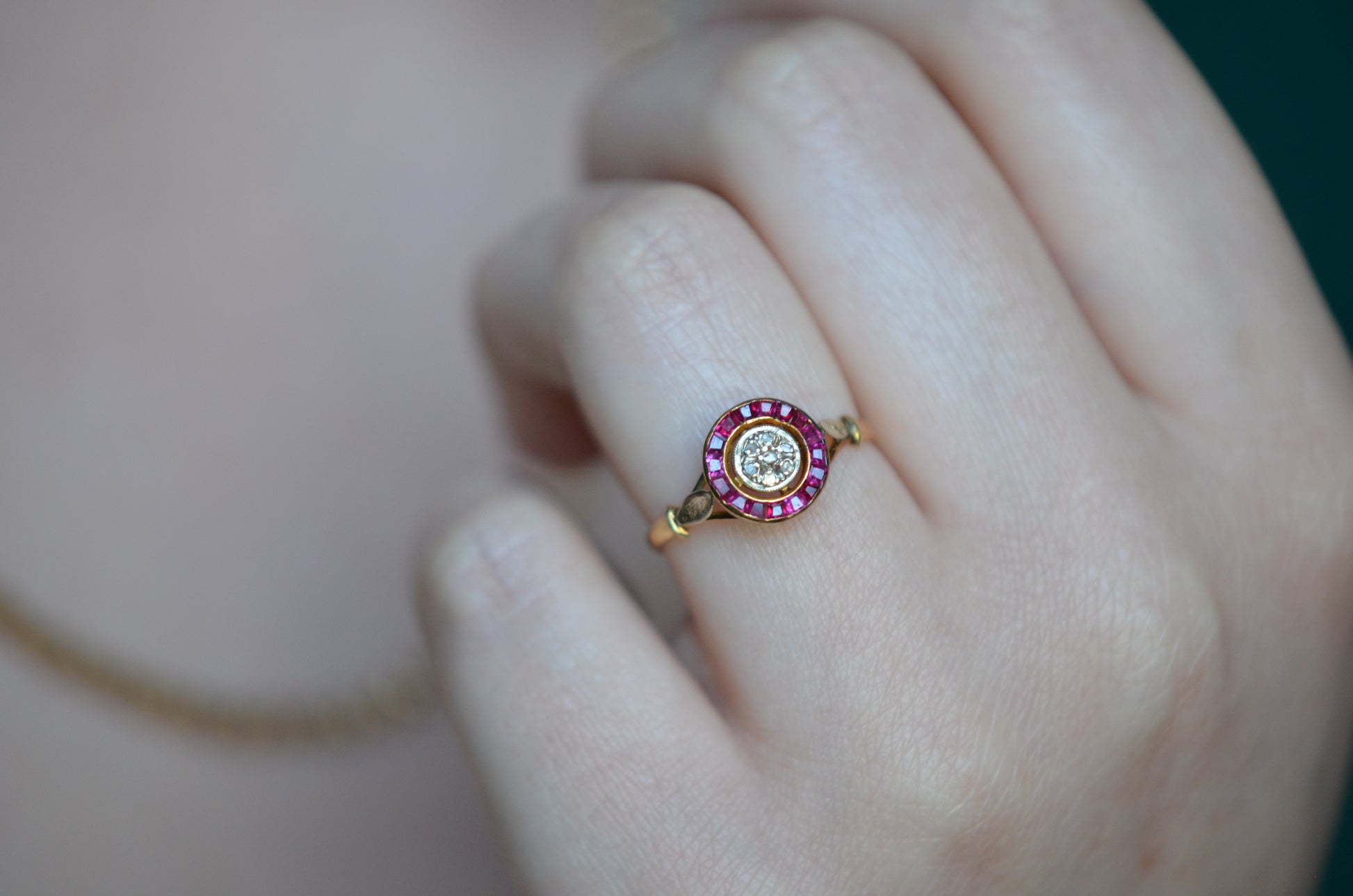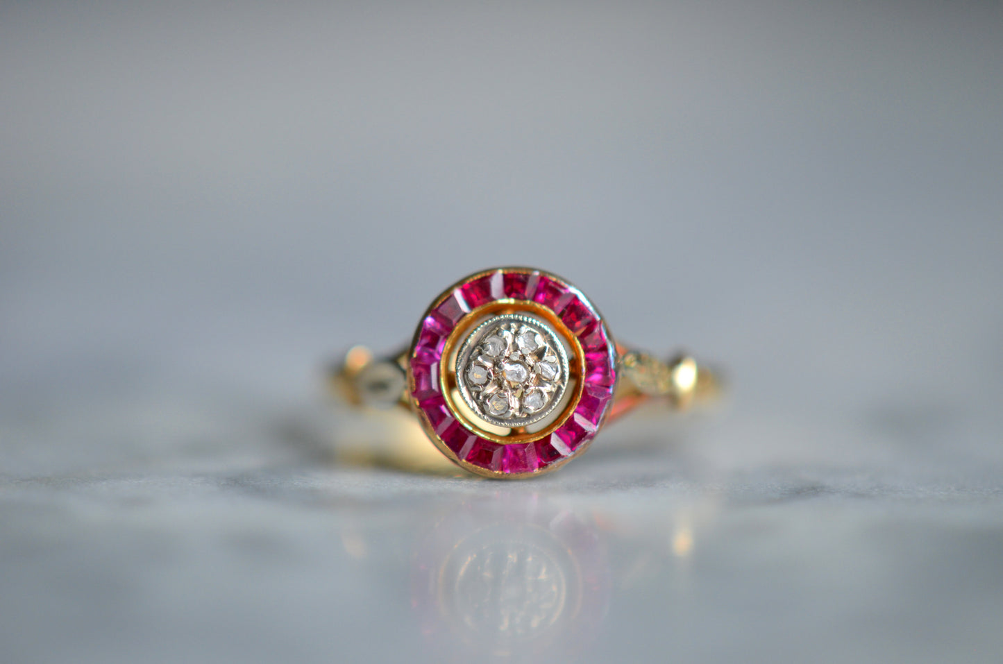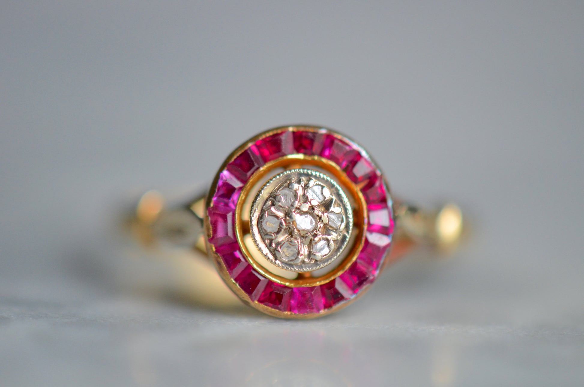 Often imitated and rarely encountered in their original form, it's no wonder the Art Deco target ring is still one of the favourite styles to come from the era. The pop of colour combined with the sparkle of diamonds and geometric precision is eye-catching in every iteration.
