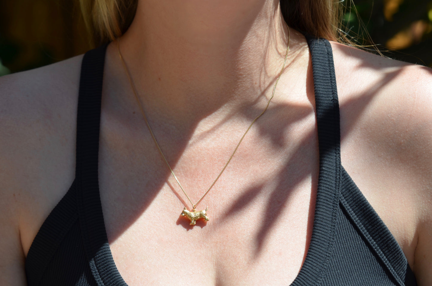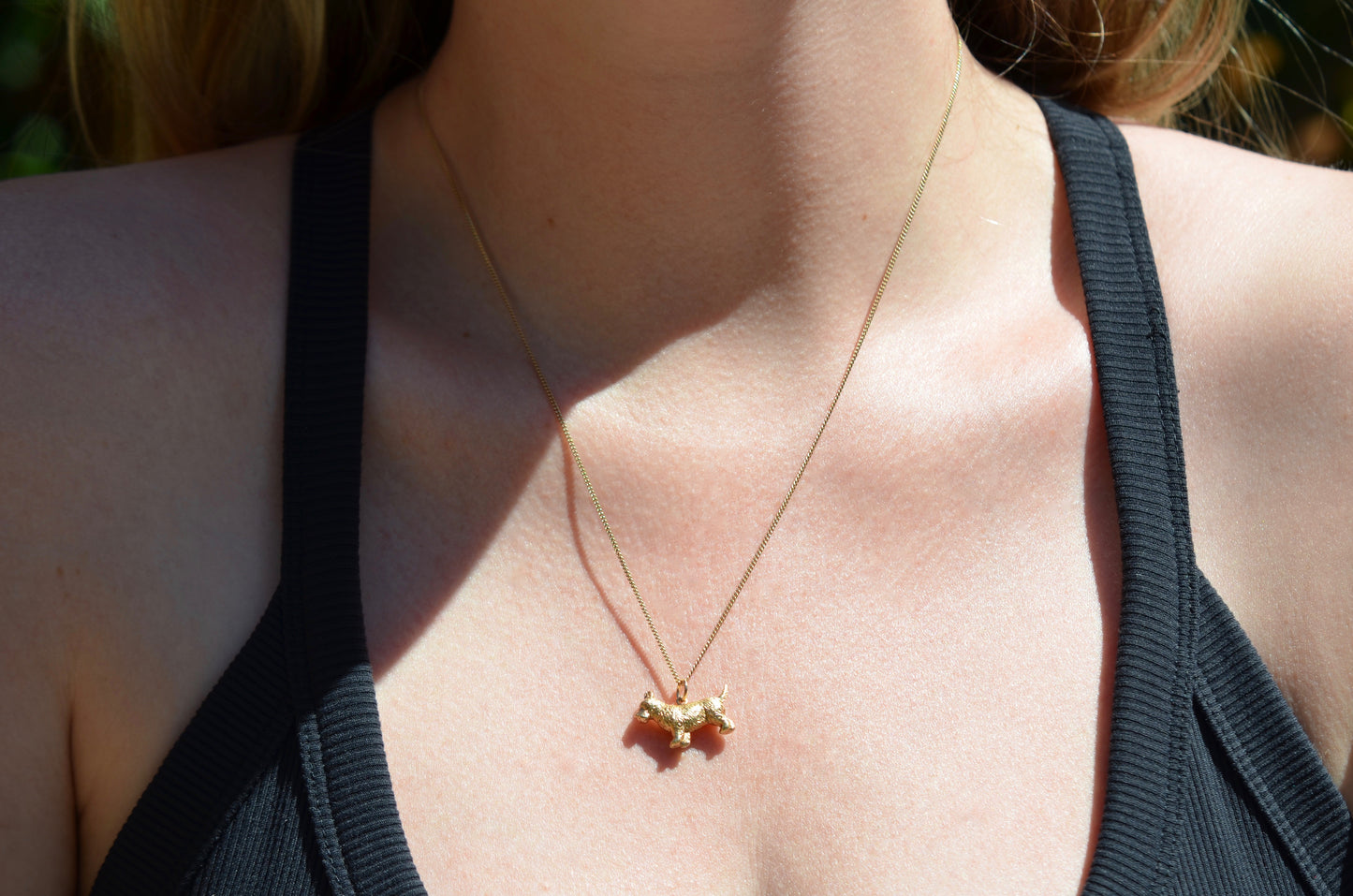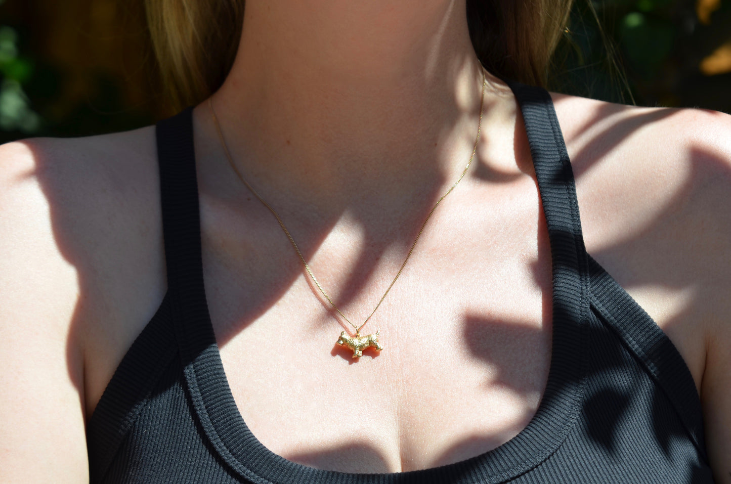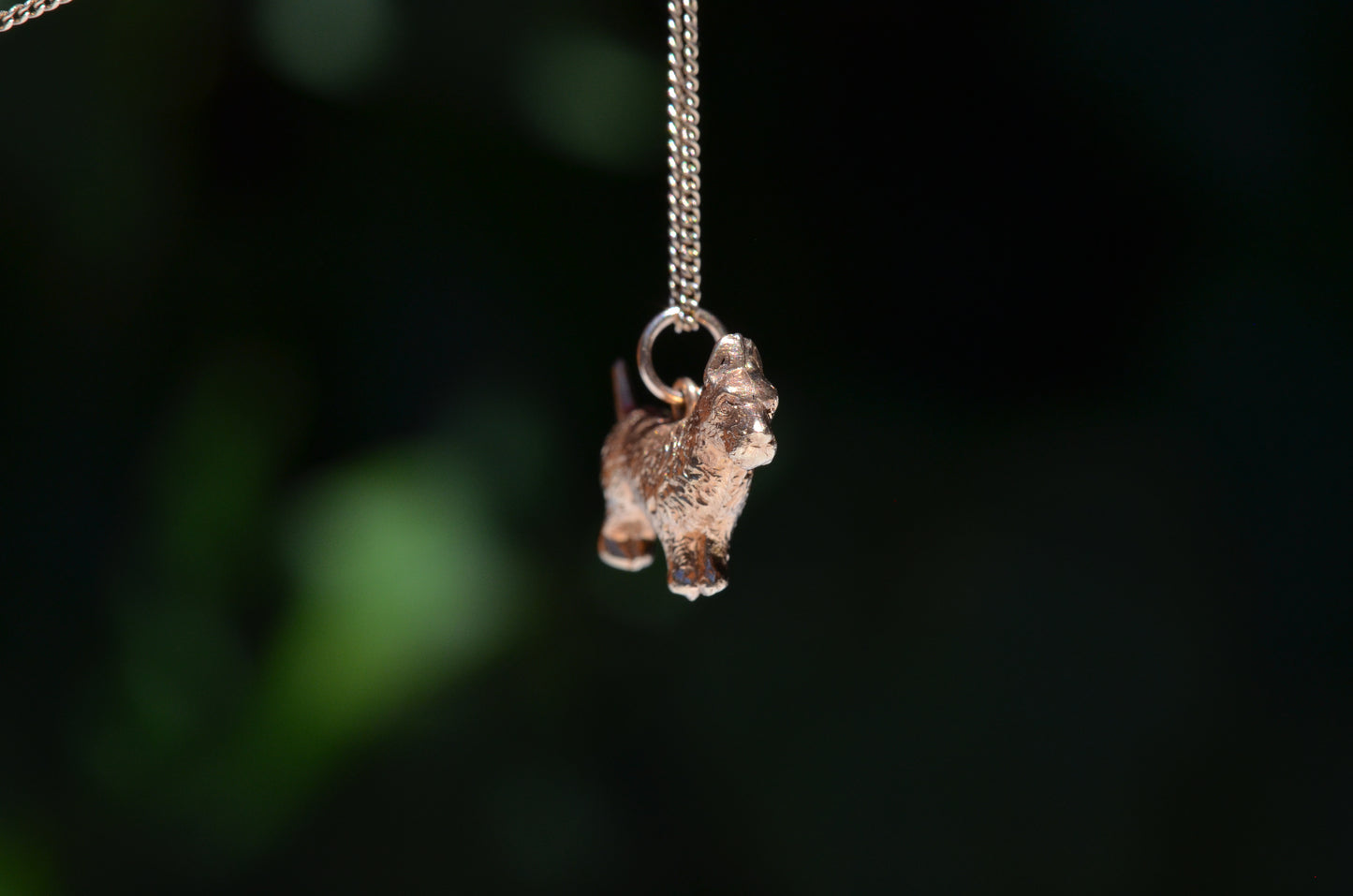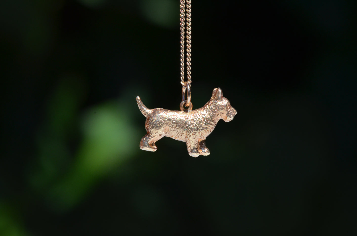To quote the cinematic masterpiece Best In Show, “God loves a terrier!” This charming canine delights from his perky ears to alert tail. Dogs have been used for thousands of years as a motif to connote loyalty and integrity. This is the perfect piece to commemorate your best friend.