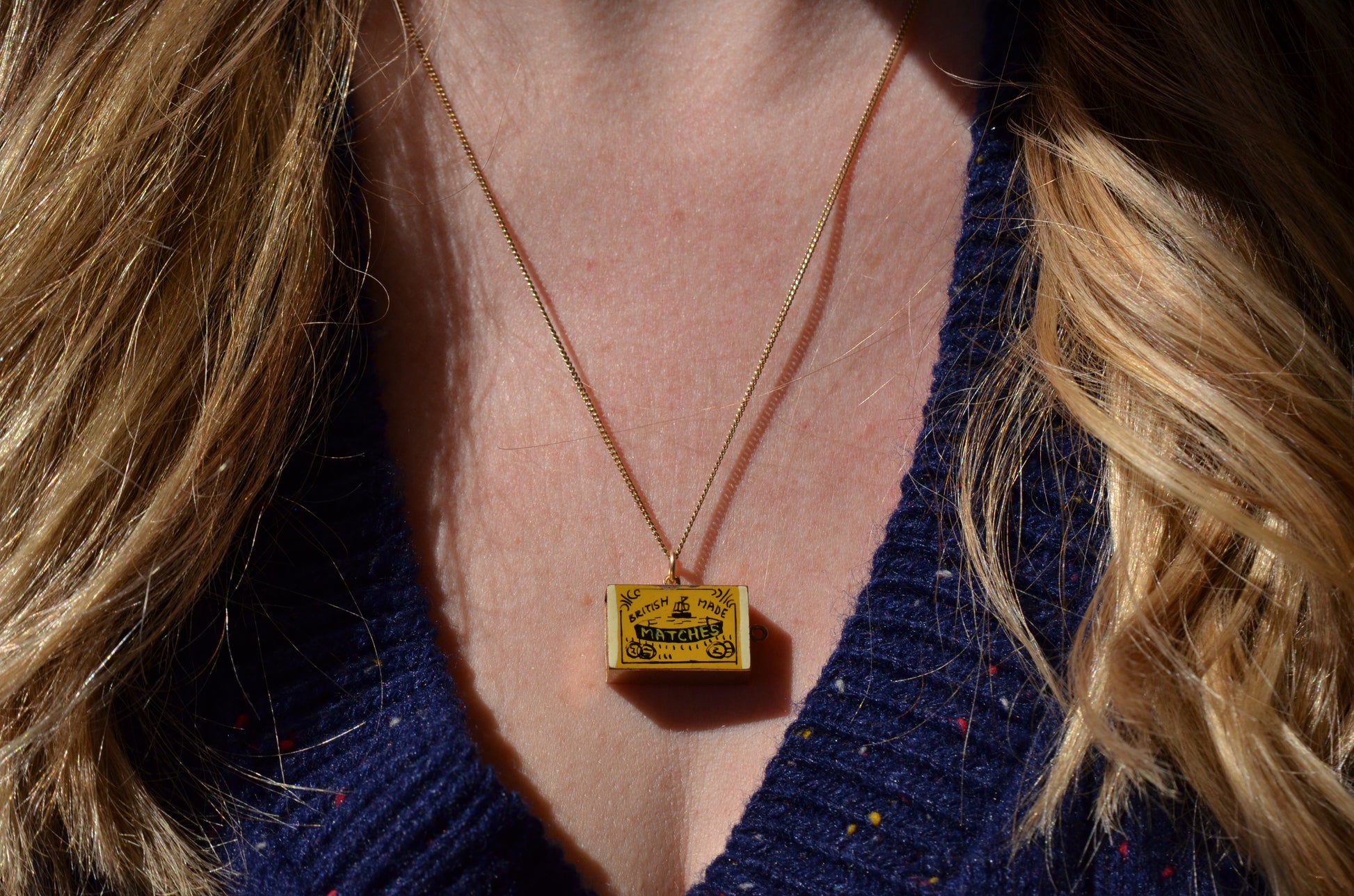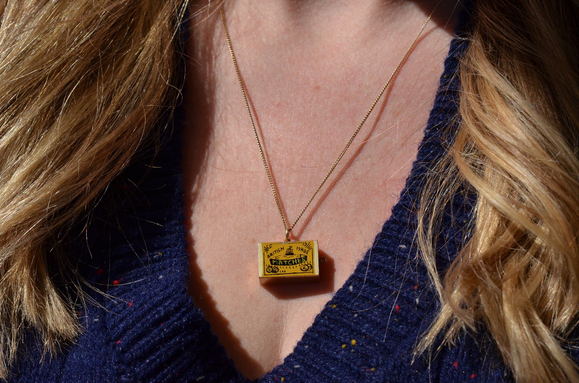 Putting the fun in functional, we can't resist charms with moving parts or that do things - and this little mid century cutie really lights us up. With a drawer that smoothly glides open to reveal a set of matches, this charm would pair perfectly with a little pocket knife charm for "ready for anything, good or evil" vibes.