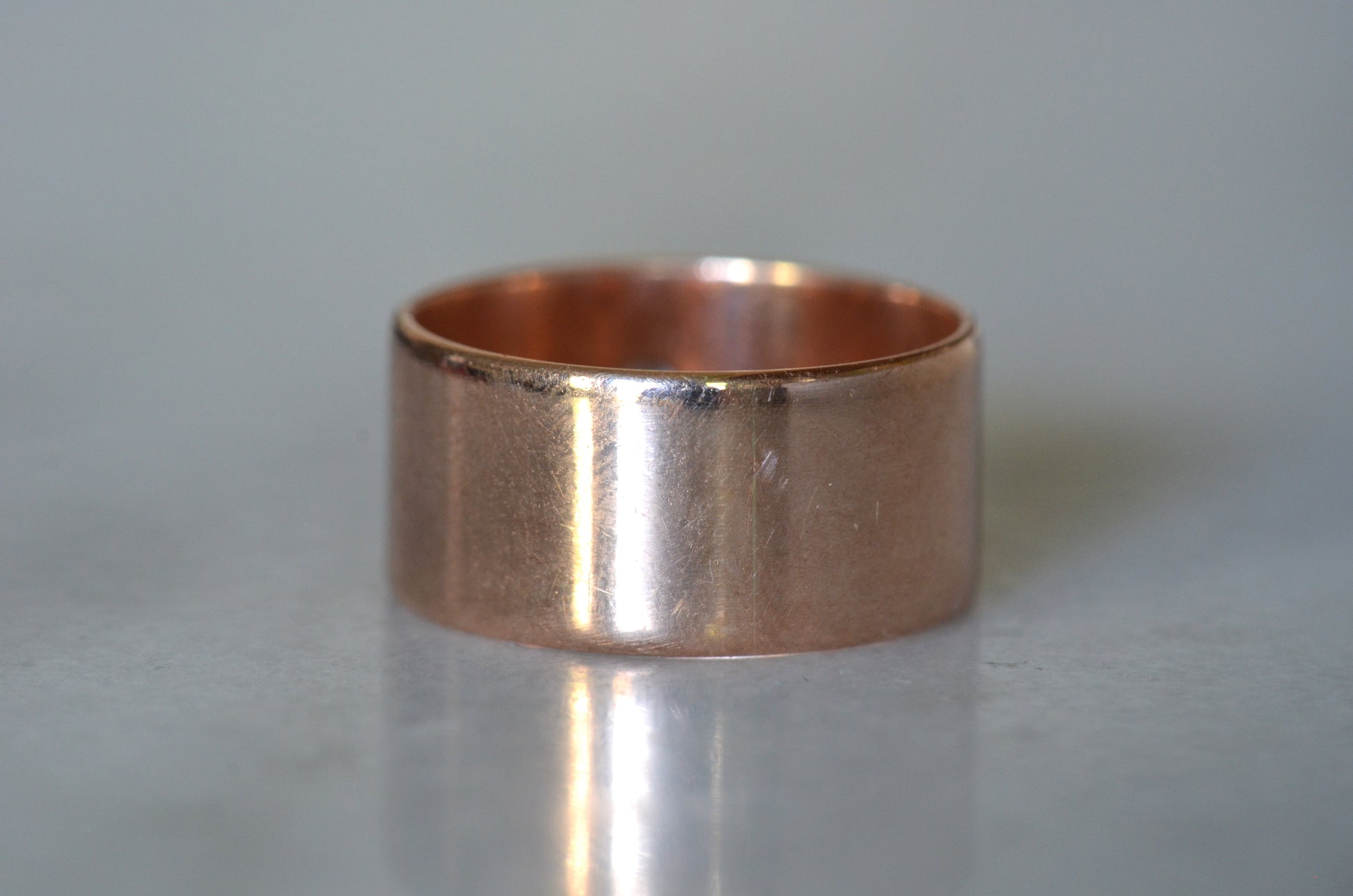 • Ring is 9.5mm wide, with a rise at the face of 1.8mm, rest of band is 0.9mm thick