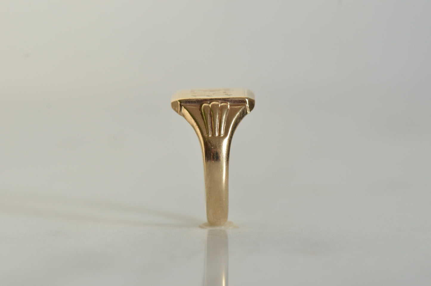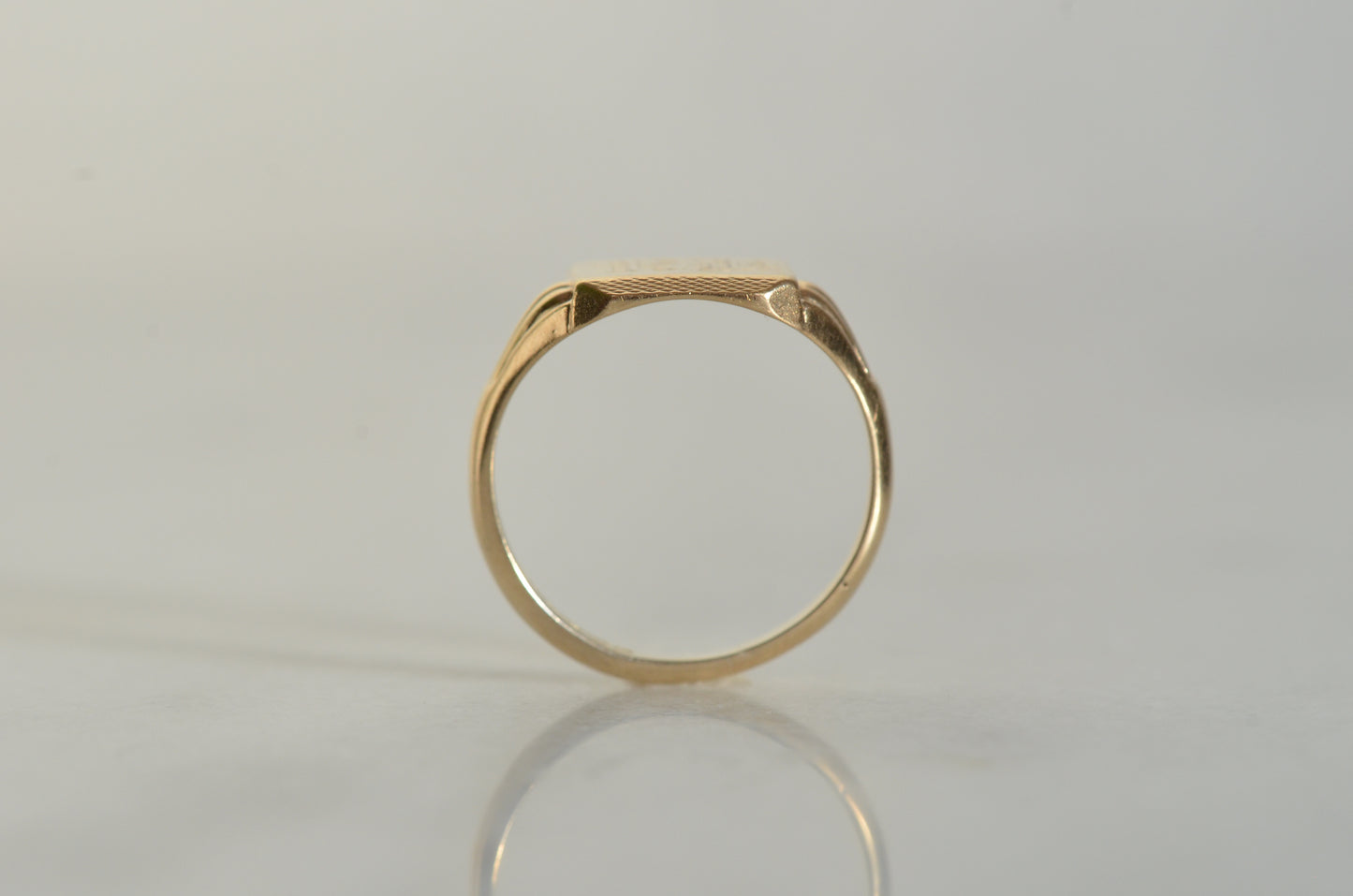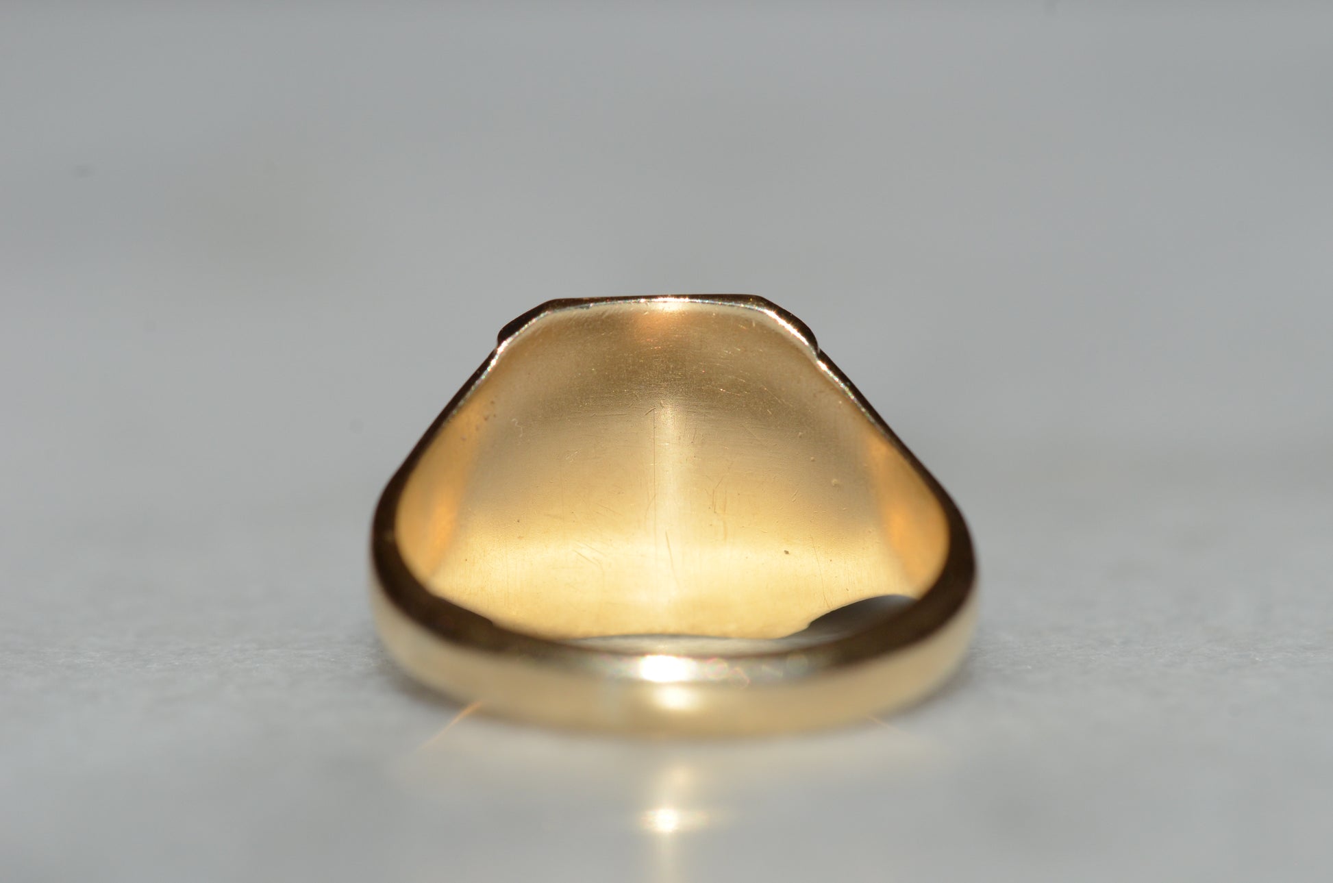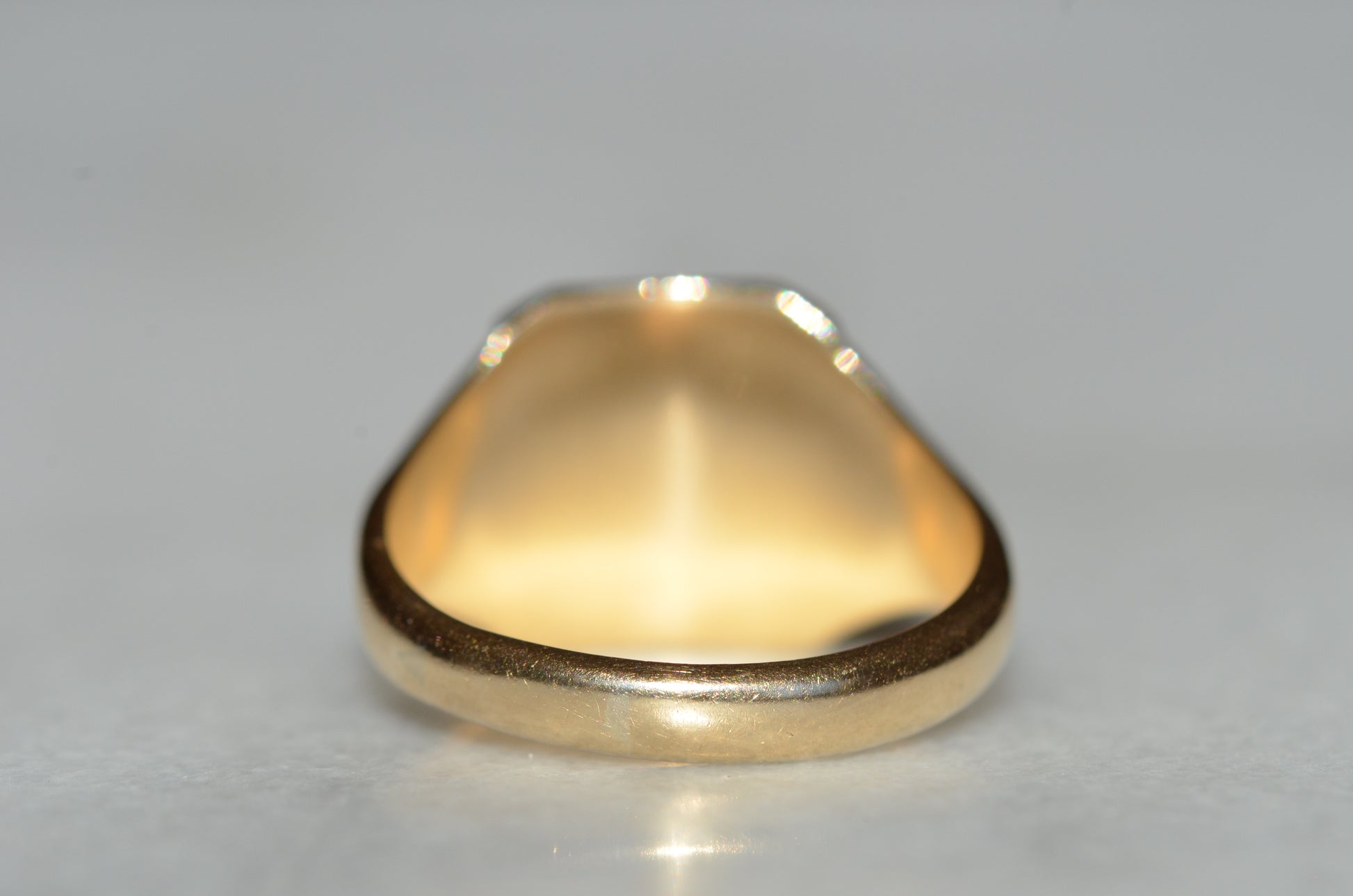 Dramatic in its bold features and textures as well as its classic shaded old English lettering, this ring perfectly straddles a classic-modern divide. There's such a special feeling in finding a preloved piece that already has letters on it that are meaningful to you, that we play pretty fast and loose - maybe it's the first or last initials of you and your lover, or your own in another order, or the initials of a loved one: no matter what, it will feel sentimental every time it catches your eye.