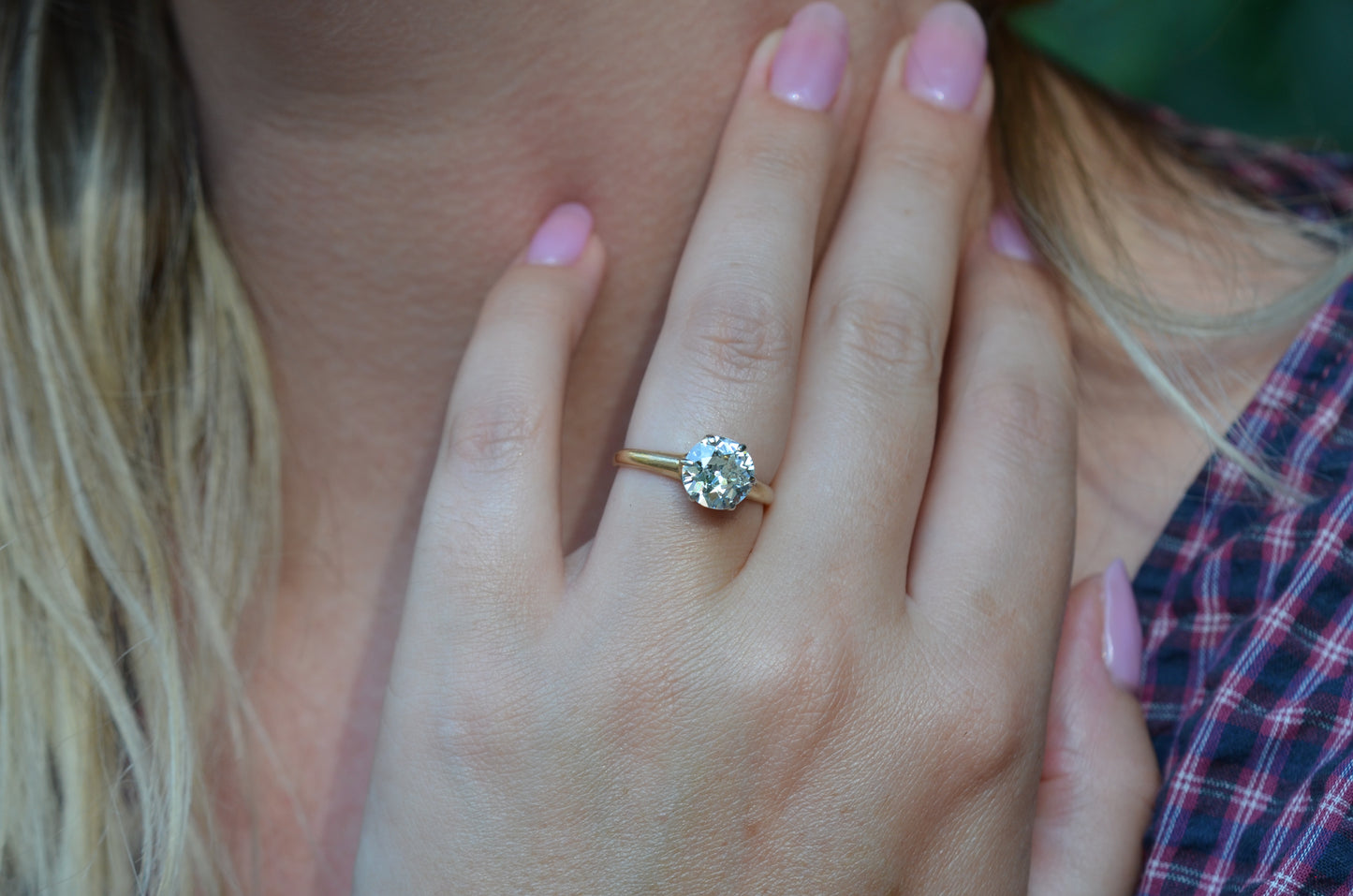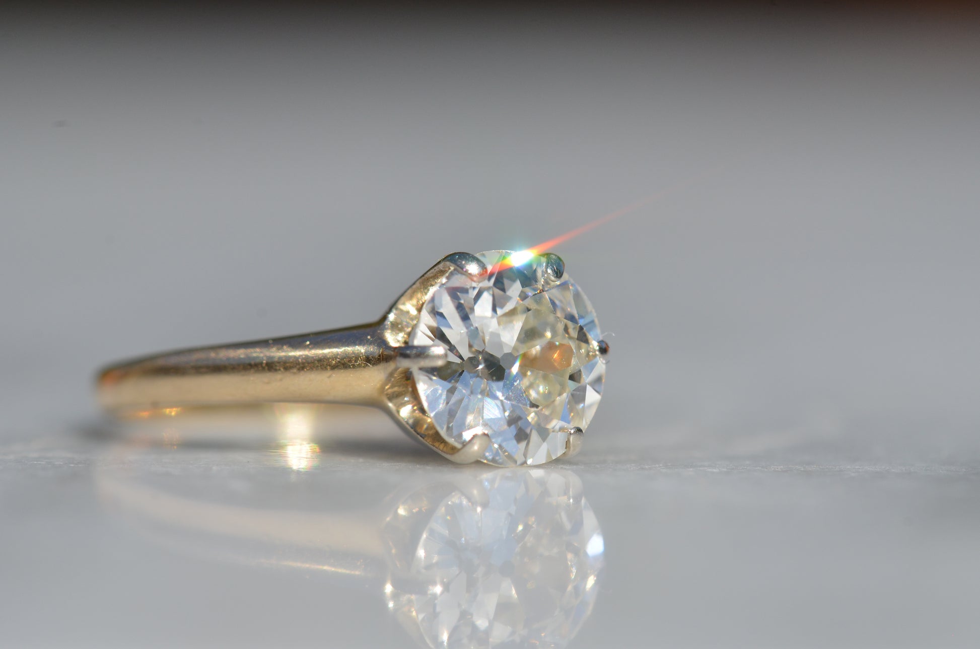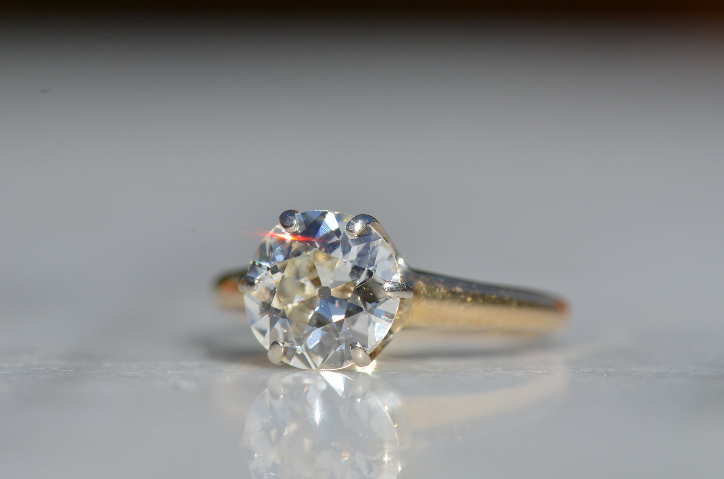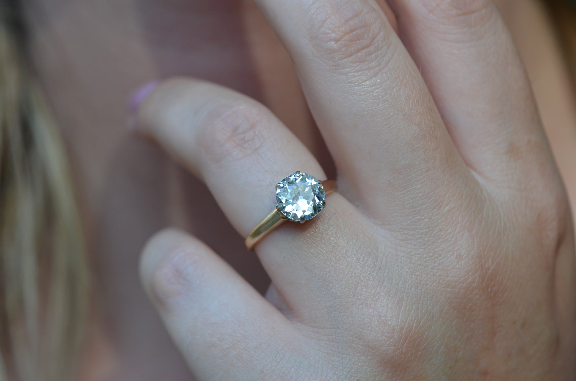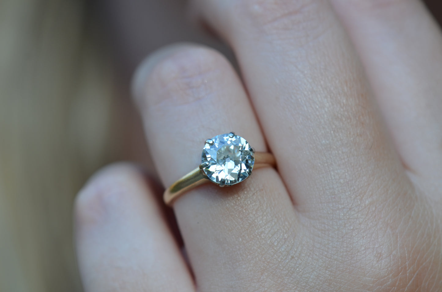 Simple, minimal, and utterly classic: this near-antique ring features a stunning and crisply faceted old European oval held aloft in six dainty claw prongs, held in white gold so as not to distract from the stone. On a slim yellow gold band, this ring would check the boxes of what so many contemporary ring designs are trying to achieve, but with the grace and glamour only possible with the craftsmanship of the retro period. Quietly elegant in construction, but with a fiery diamond that sparkles and bluffs - be sure to check instagram.com/st.eloi to see this ring in action.