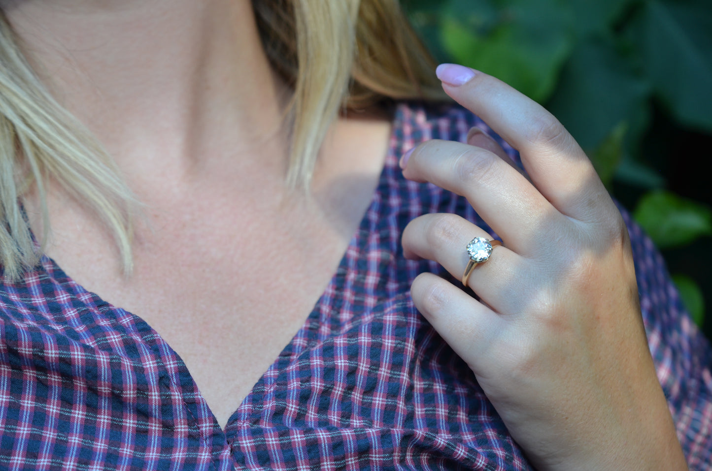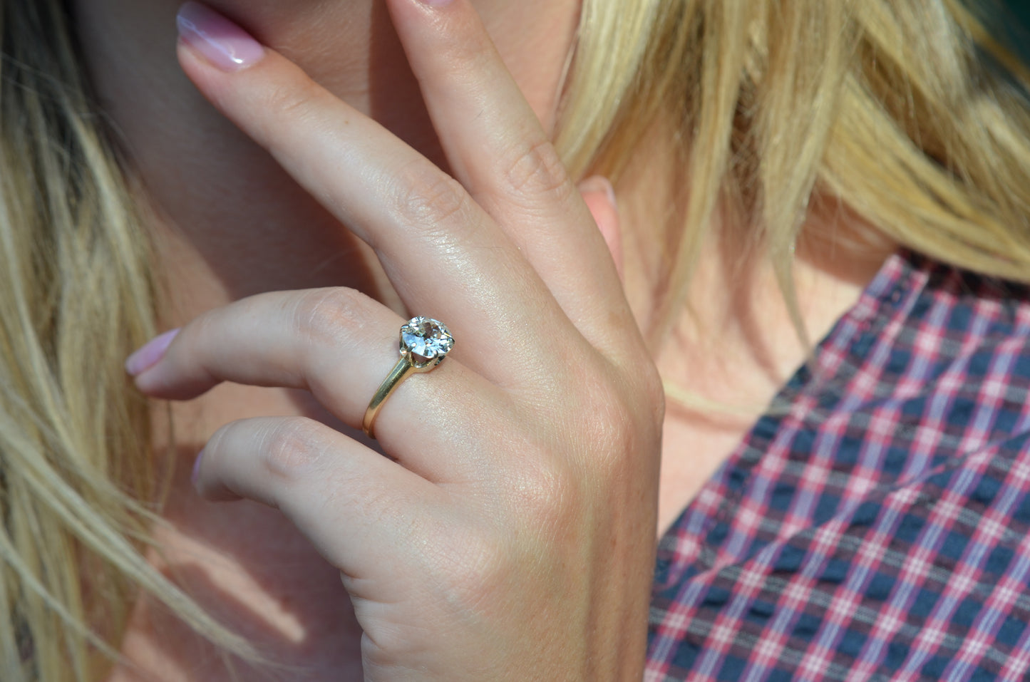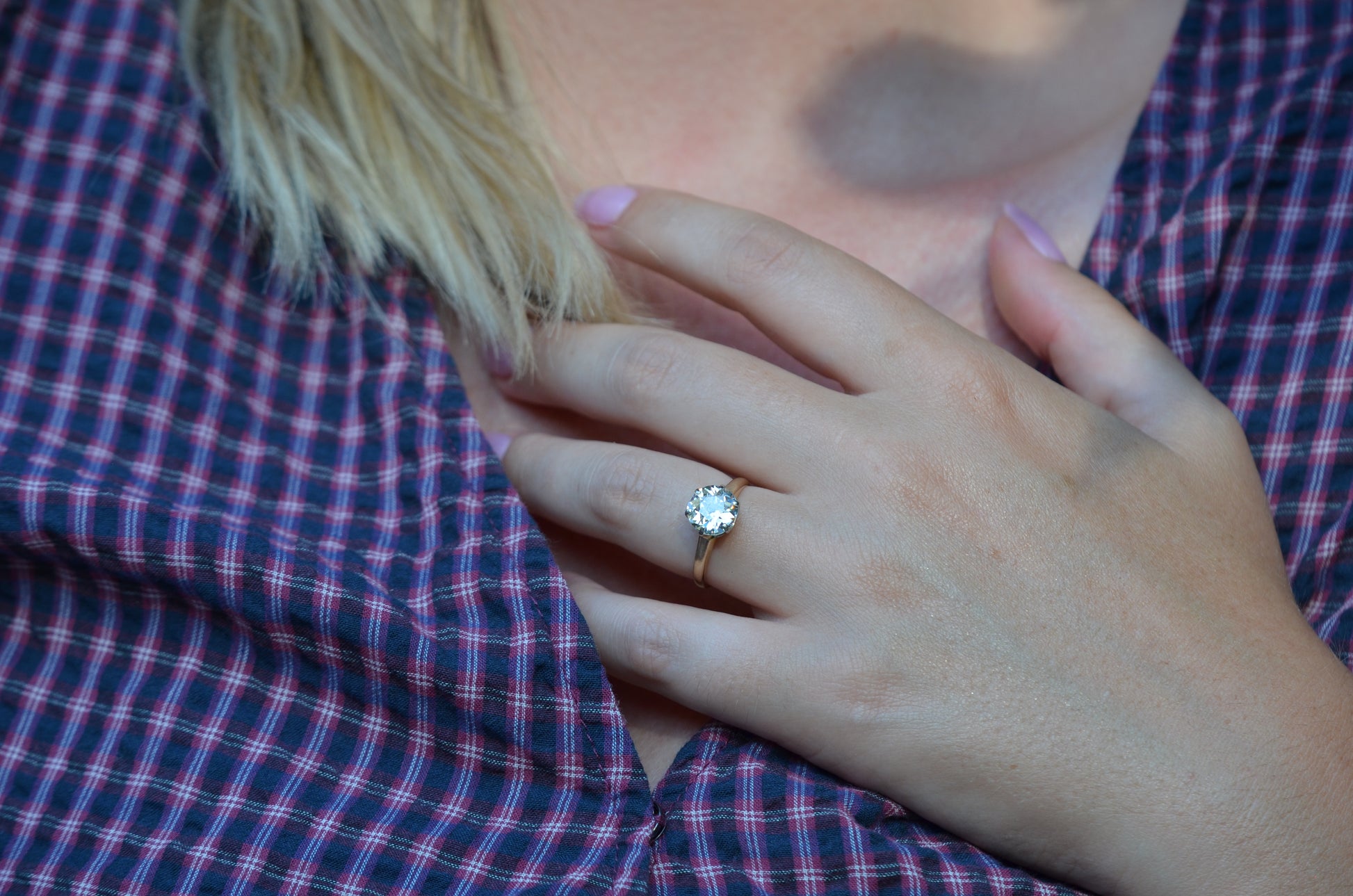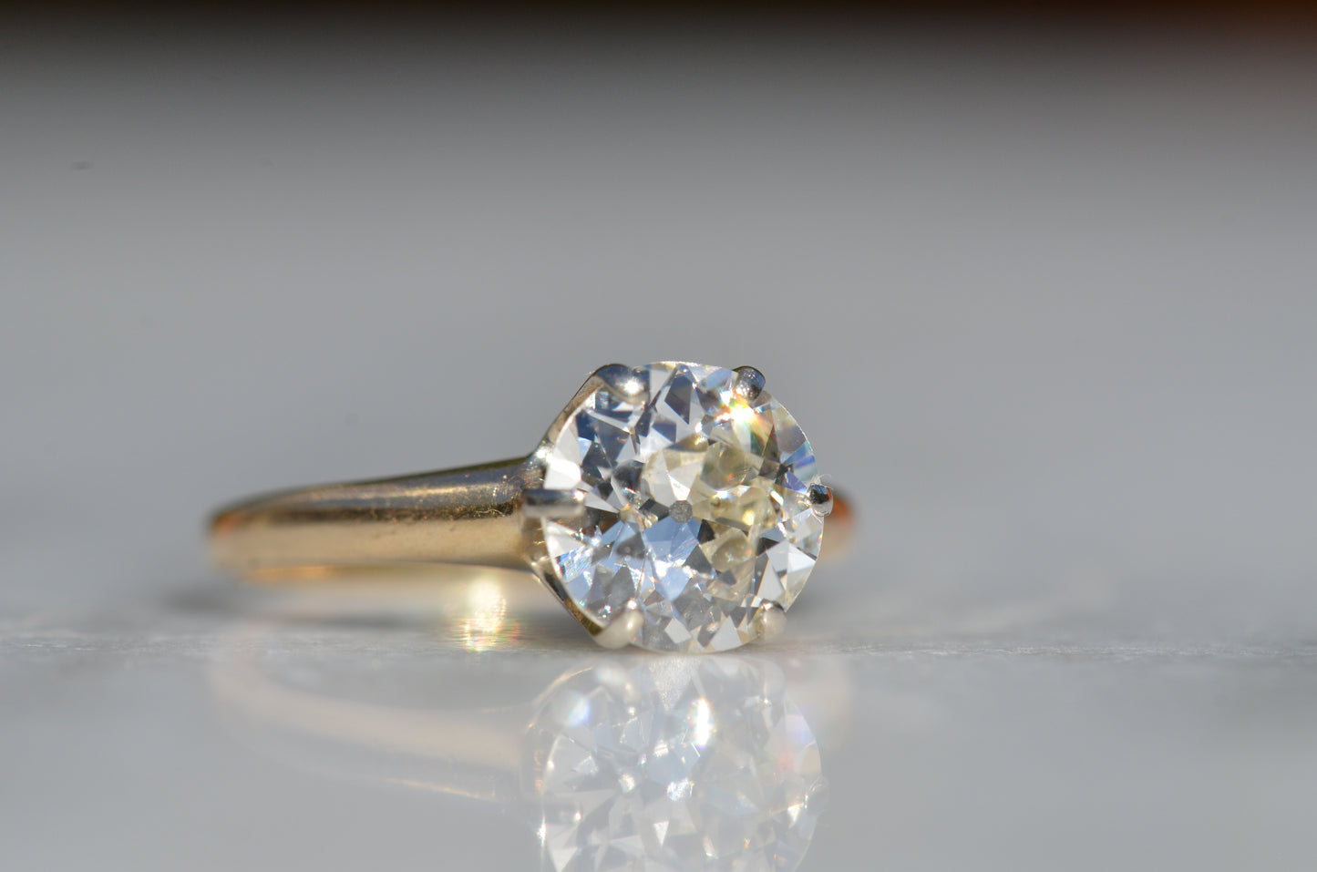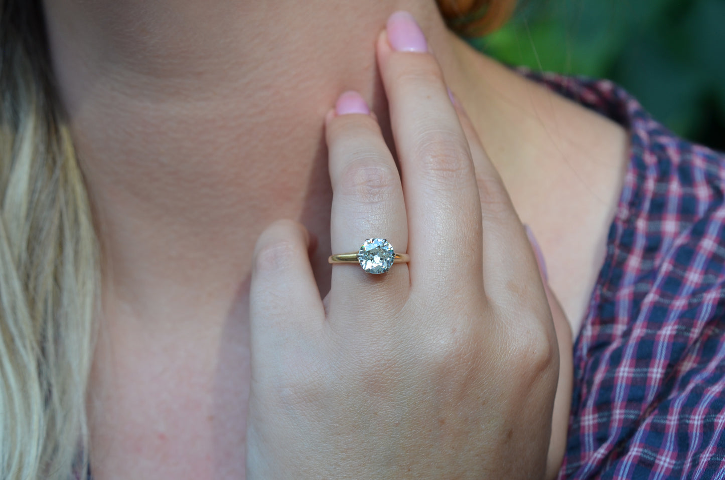 Simple, minimal, and utterly classic: this near-antique ring features a stunning and crisply faceted old European oval held aloft in six dainty claw prongs, held in white gold so as not to distract from the stone. On a slim yellow gold band, this ring would check the boxes of what so many contemporary ring designs are trying to achieve, but with the grace and glamour only possible with the craftsmanship of the retro period. Quietly elegant in construction, but with a fiery diamond that sparkles and bluffs - be sure to check instagram.com/st.eloi to see this ring in action.