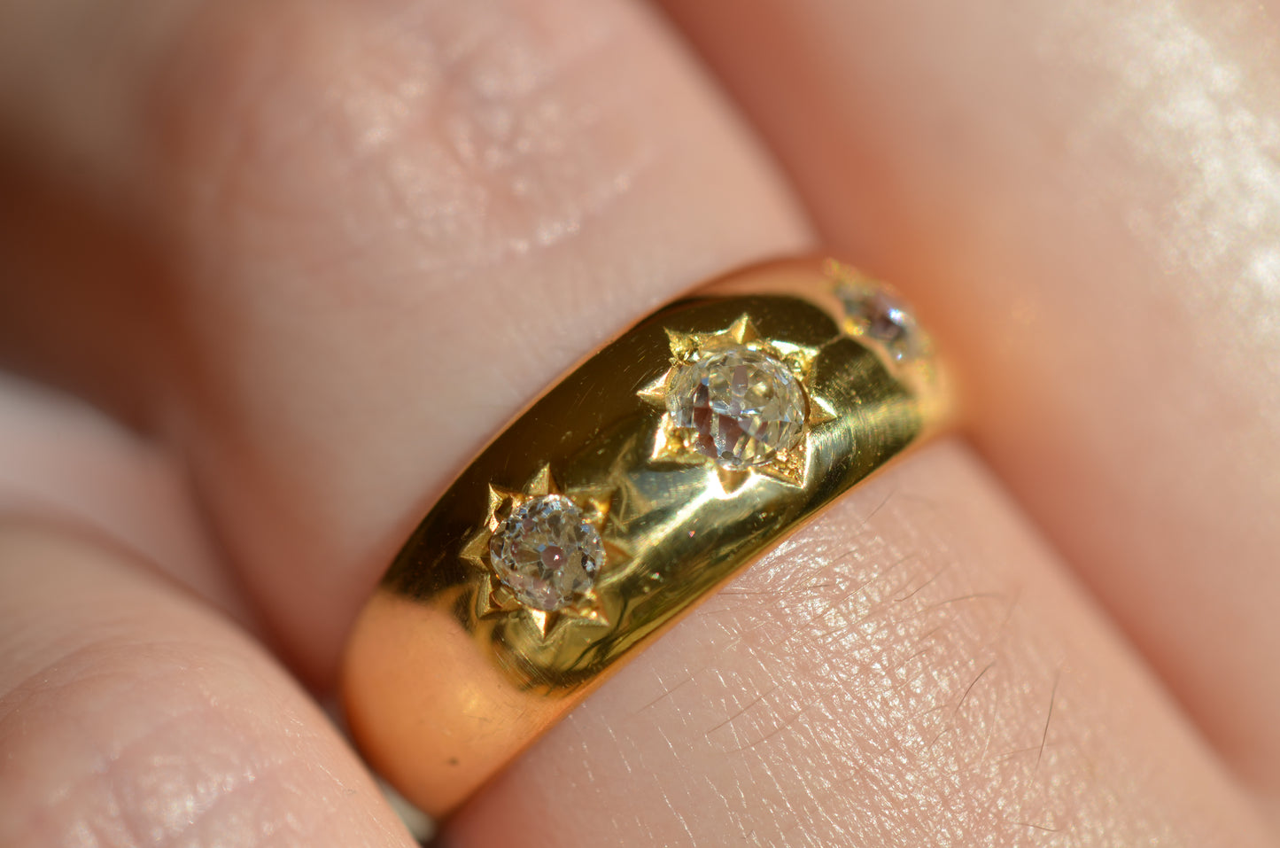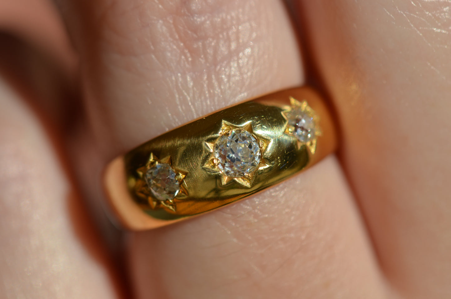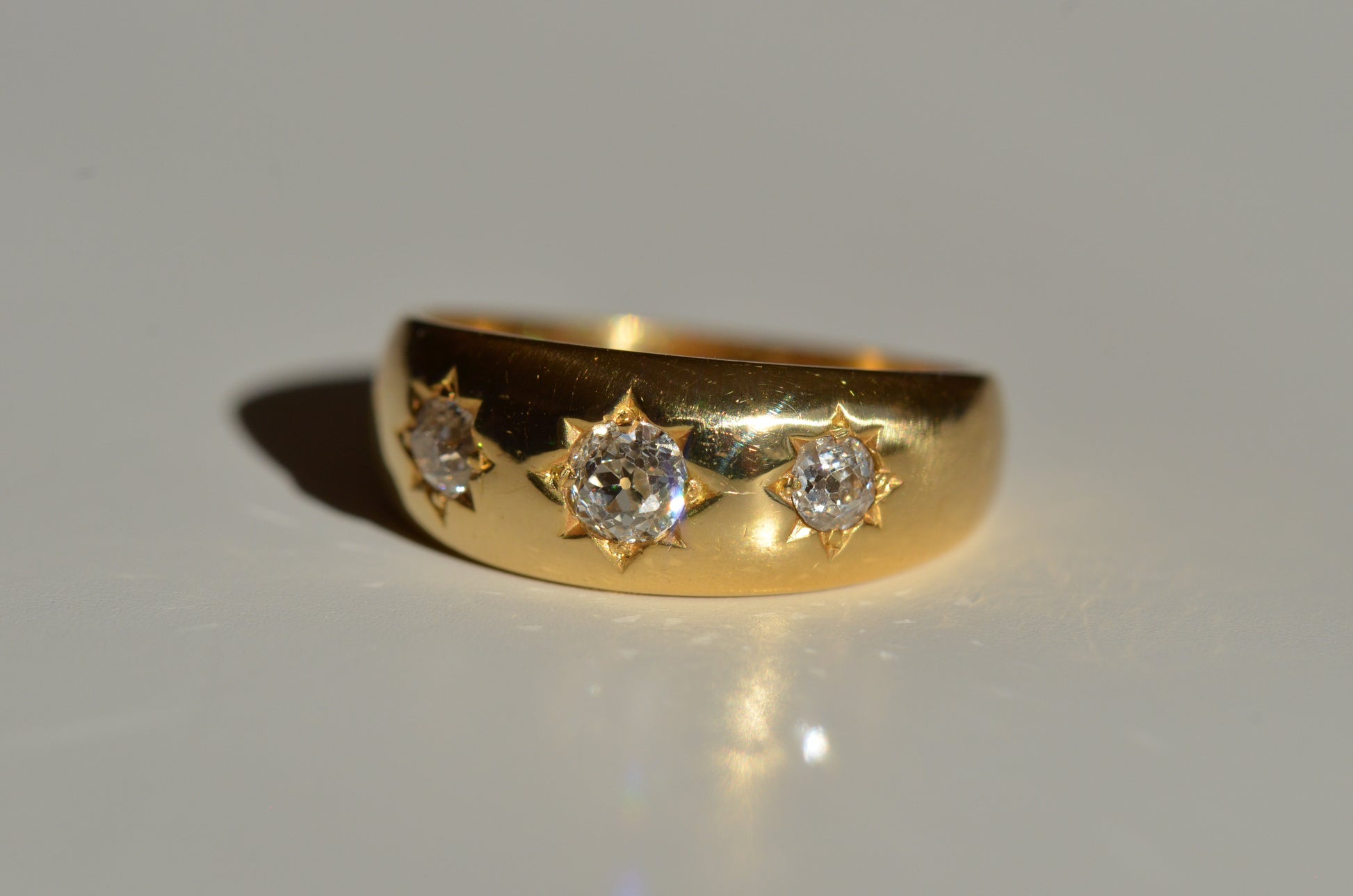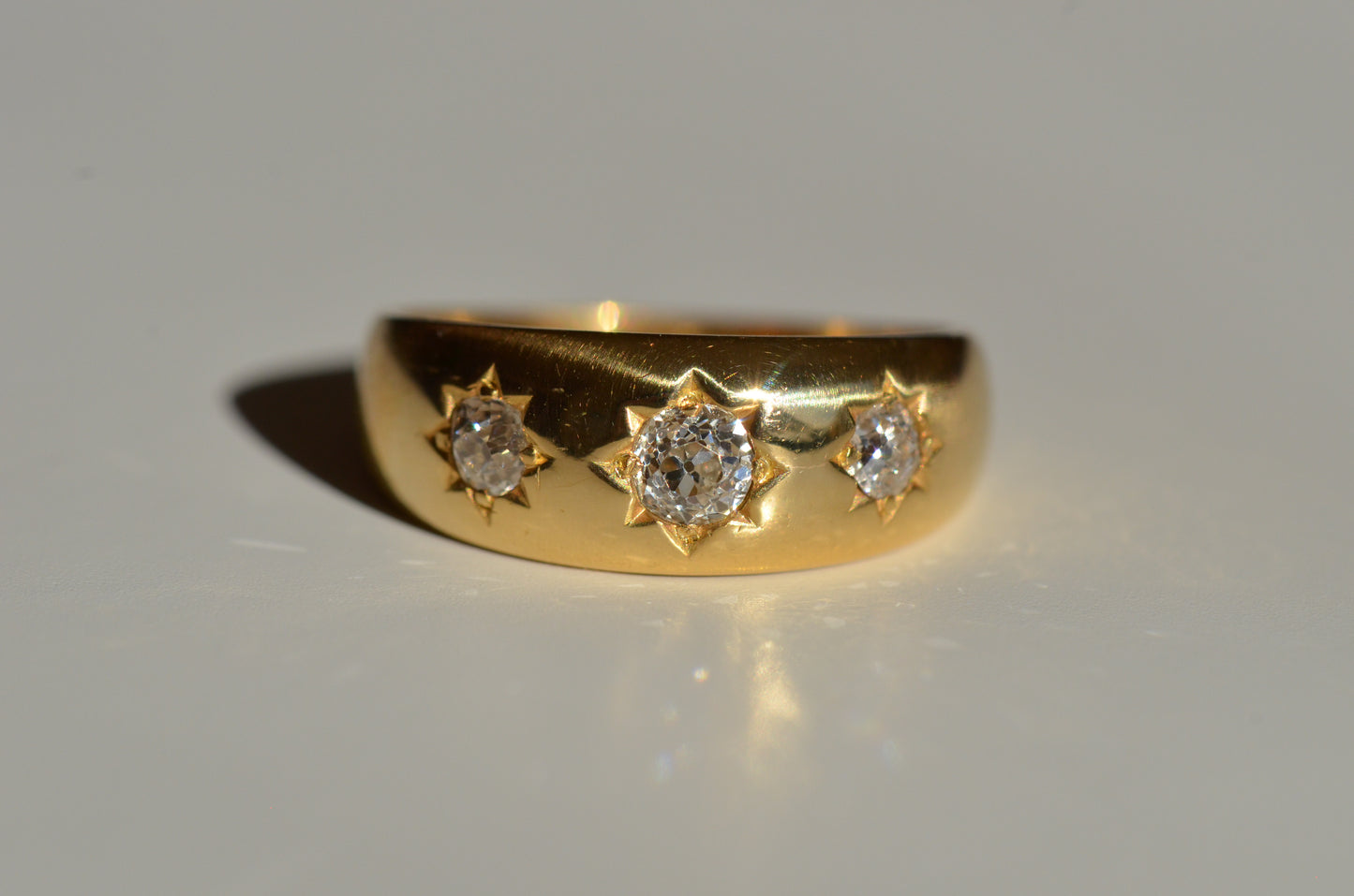 • One old European cut diamond and two old mine cut diamonds, approximately 0.37 carat total weight