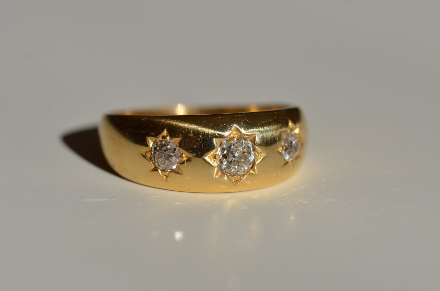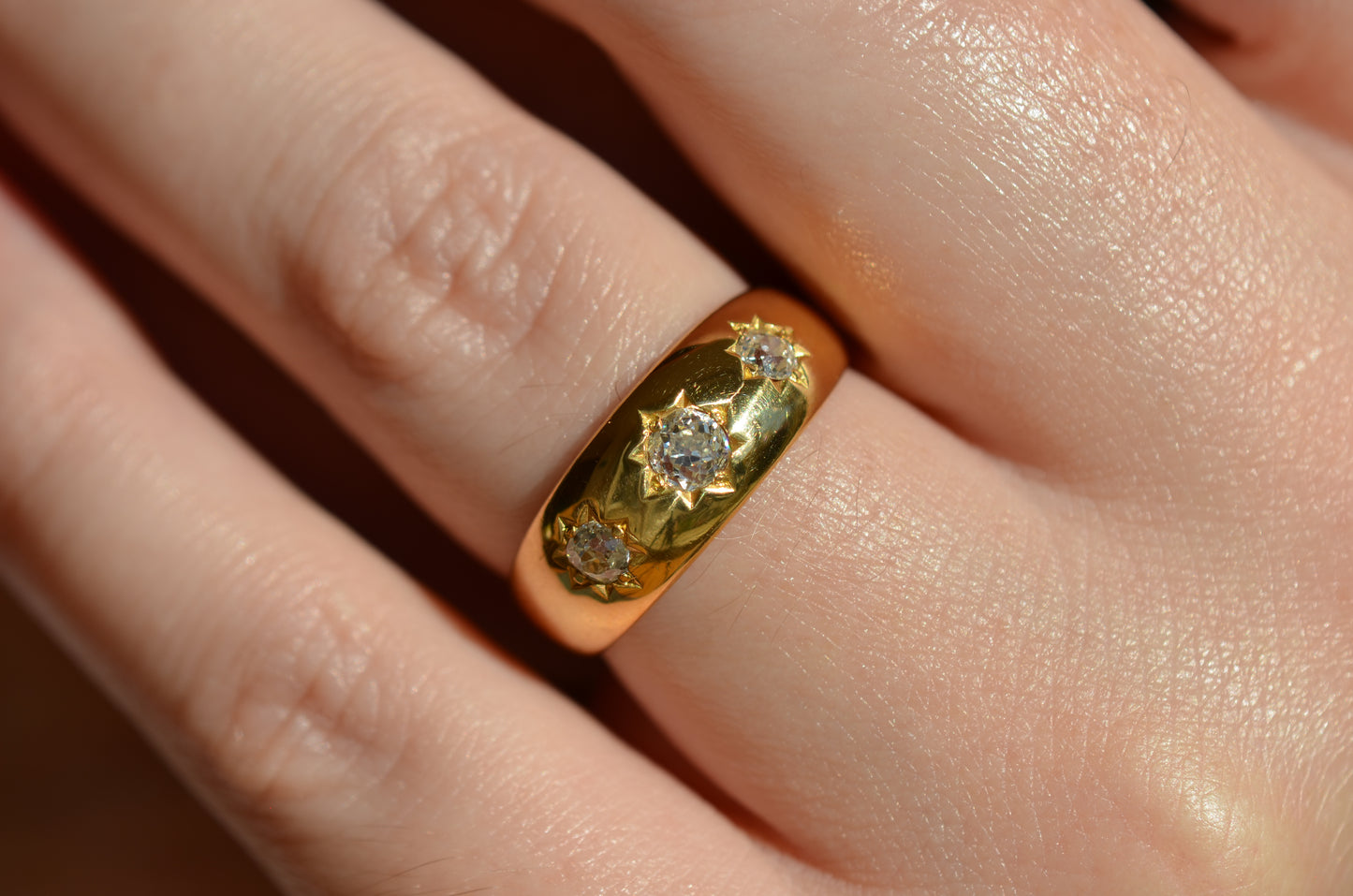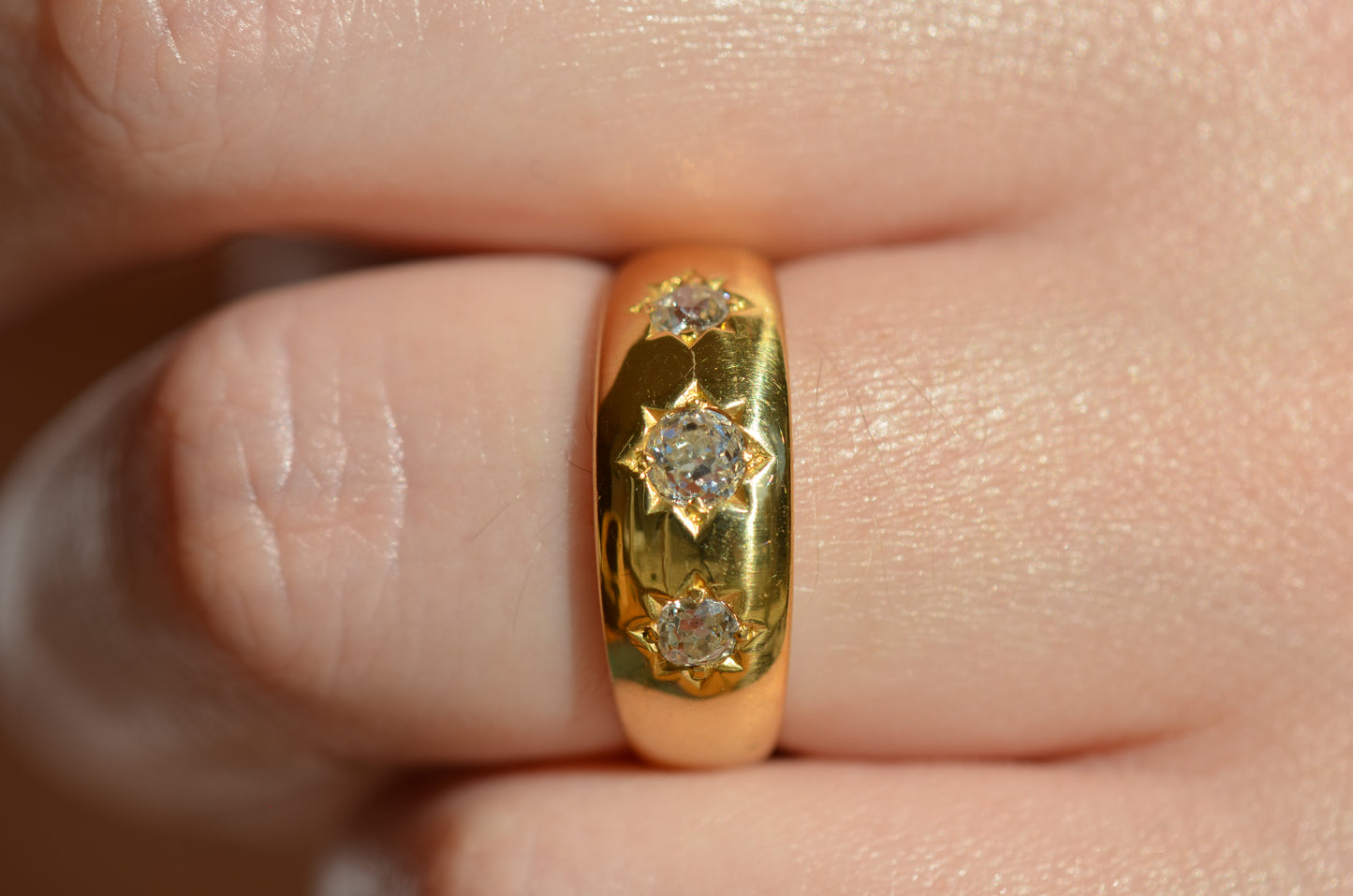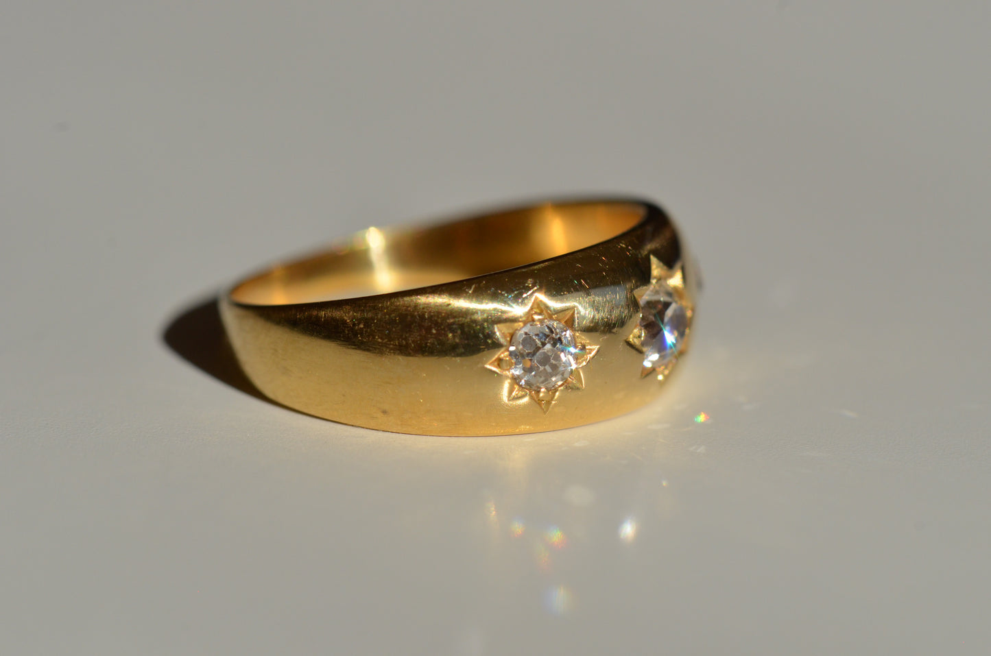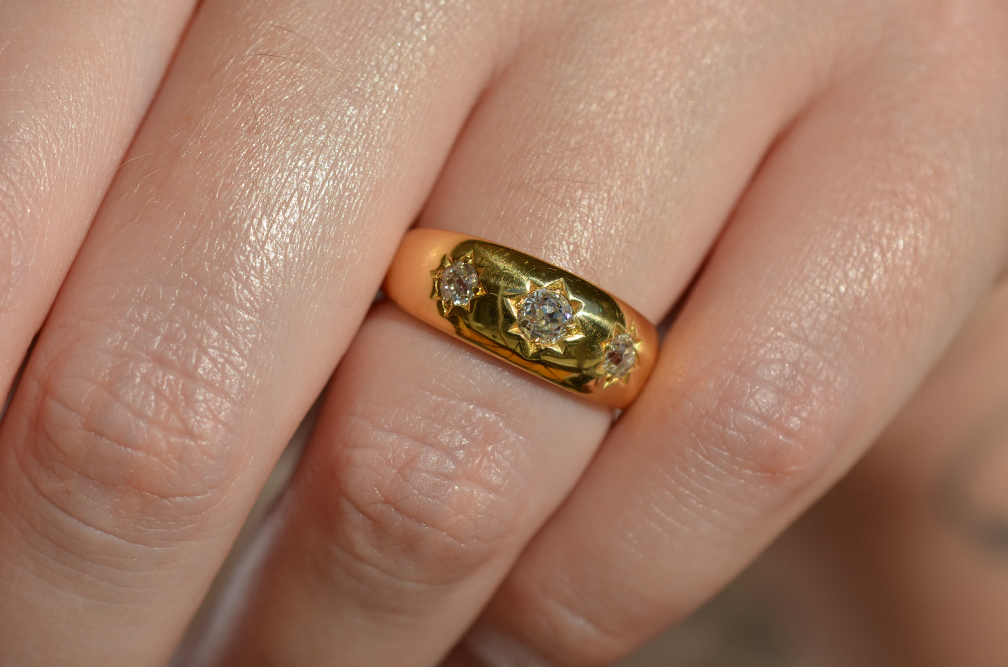 • One old European cut diamond and two old mine cut diamonds, approximately 0.37 carat total weight