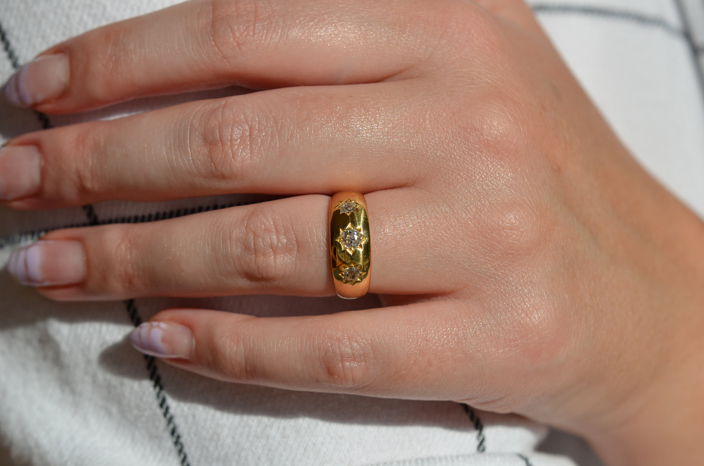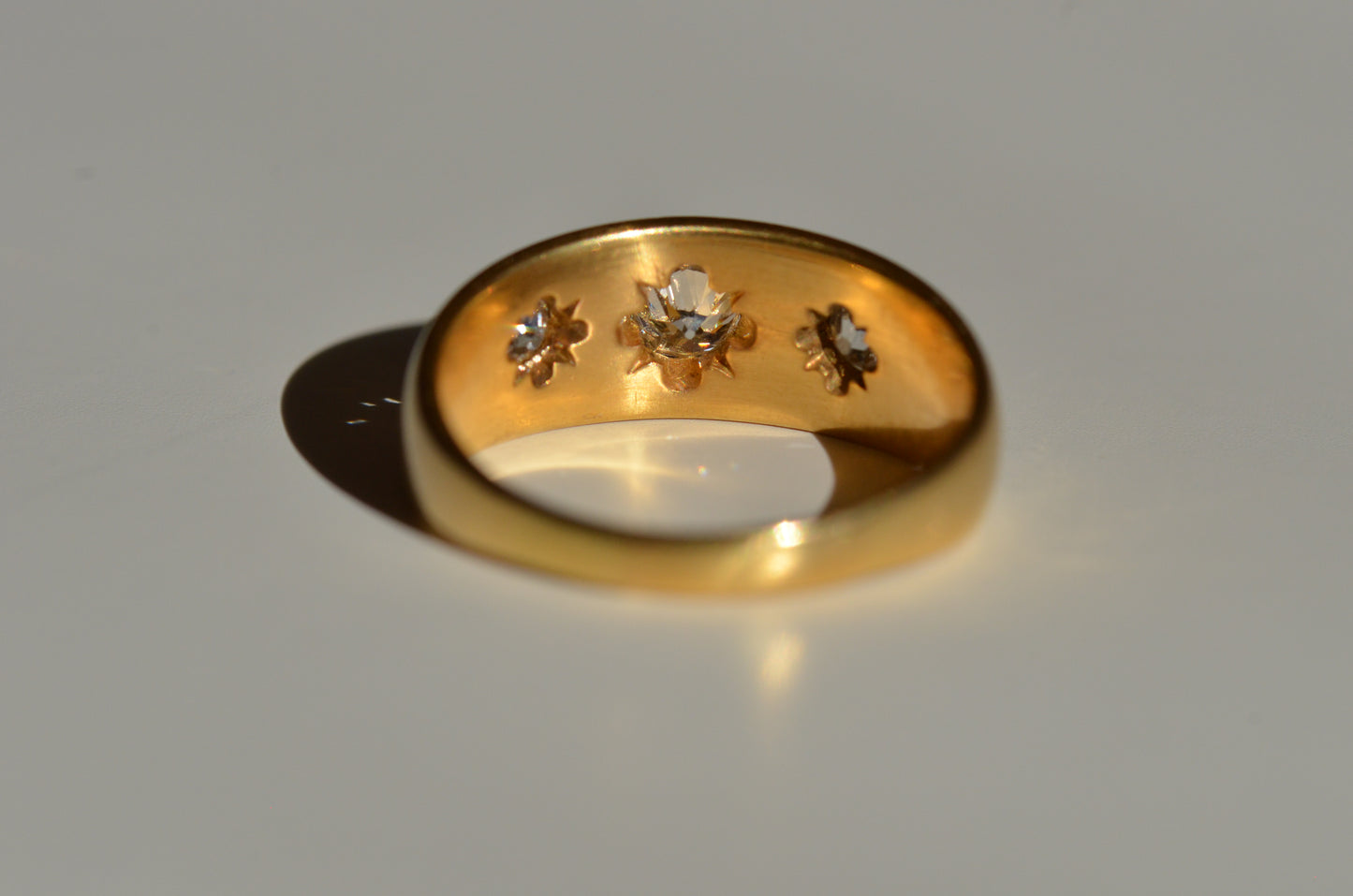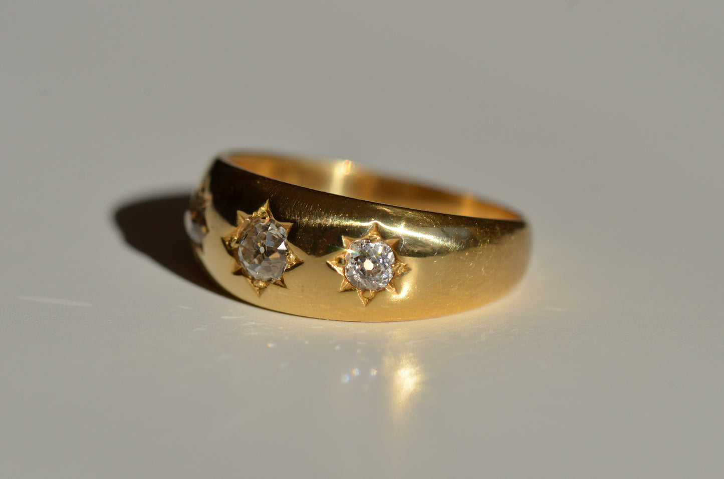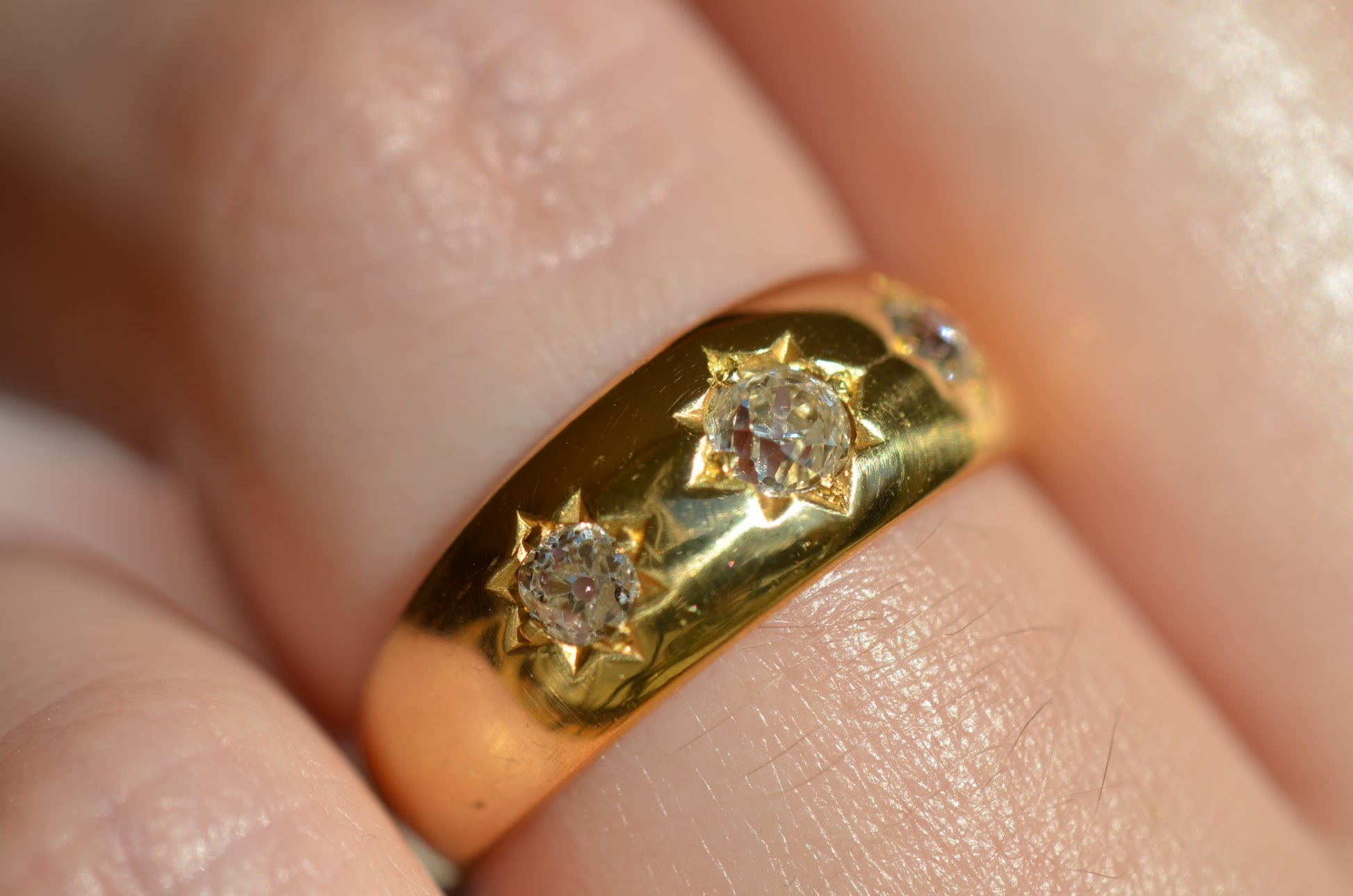 • One old European cut diamond and two old mine cut diamonds, approximately 0.37 carat total weight