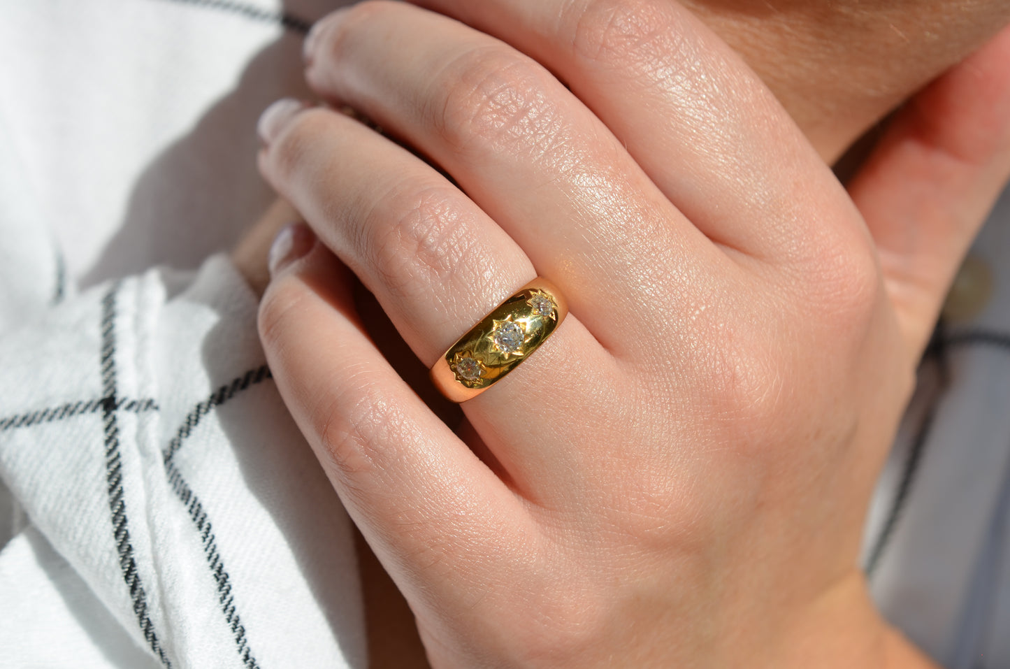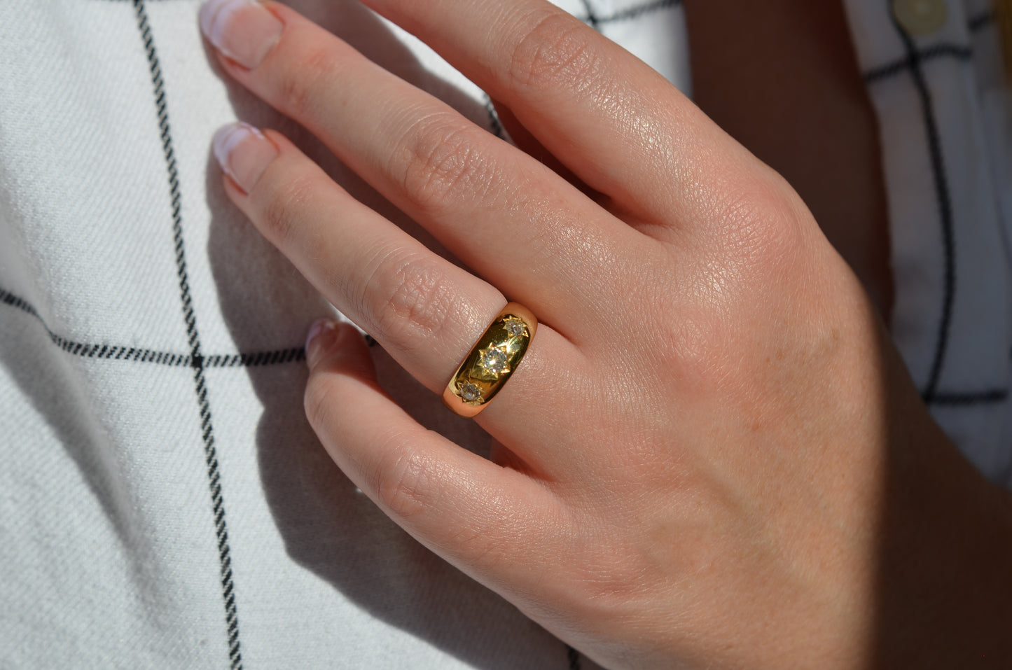• Face of ring measures 7.3mm wide, 15.6mm across, with a 2.5mm rise; back of band measures 2.2mm wide and 0.7mm thick
