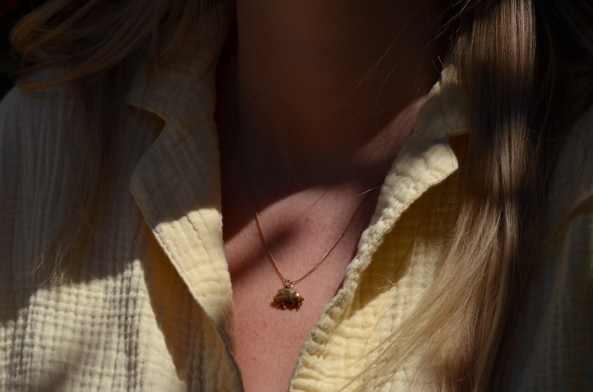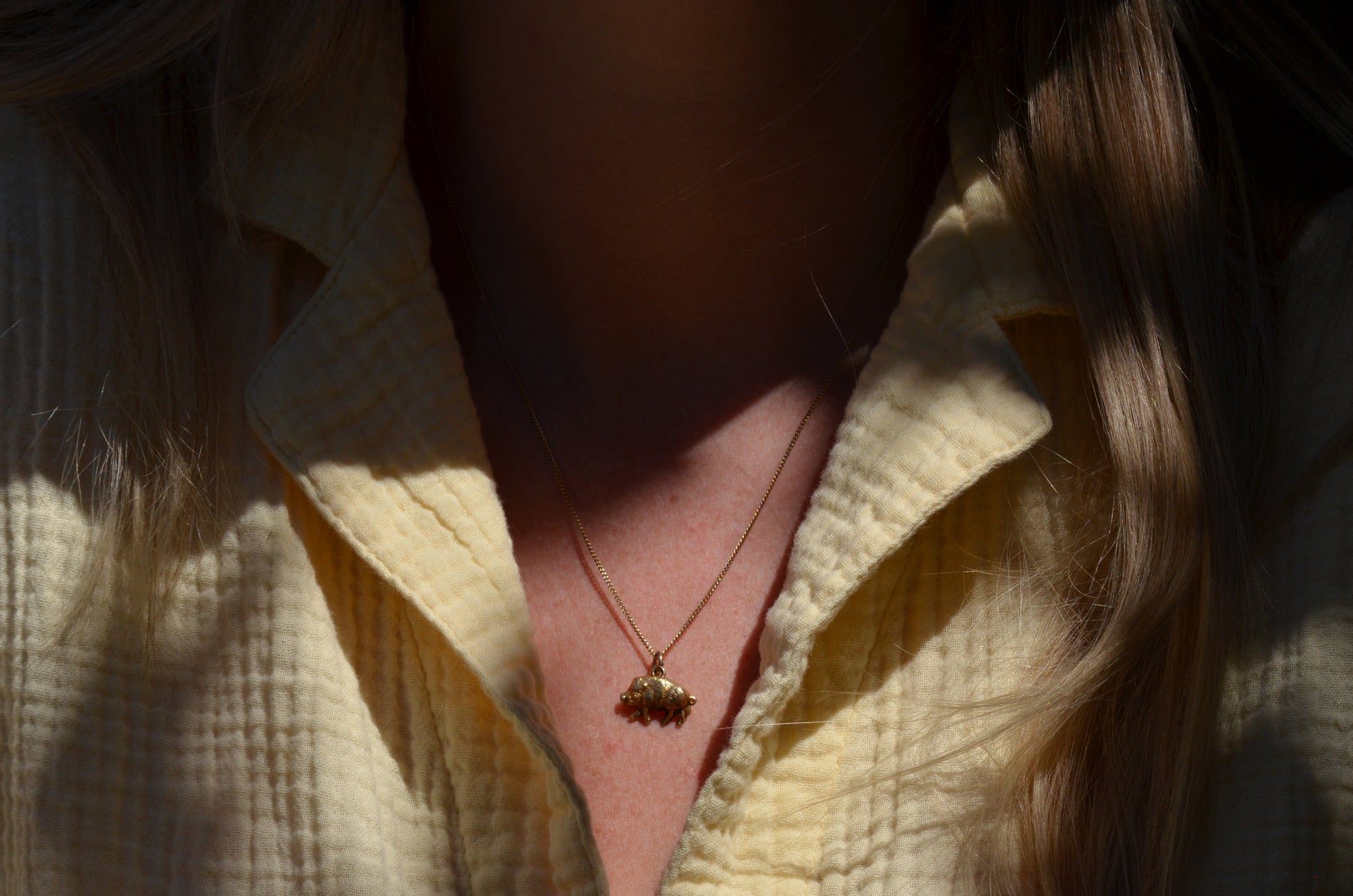 This little boar is ready to join you on every adventure and bring you luck and prosperity! Plump, playful, and charming, this golden pig is the perfect size for either a pendant or as an addition to a charm bracelet. Known for their beautiful personality and good fortune, recent pig years include 1971, 1983, 1995, and 2019.