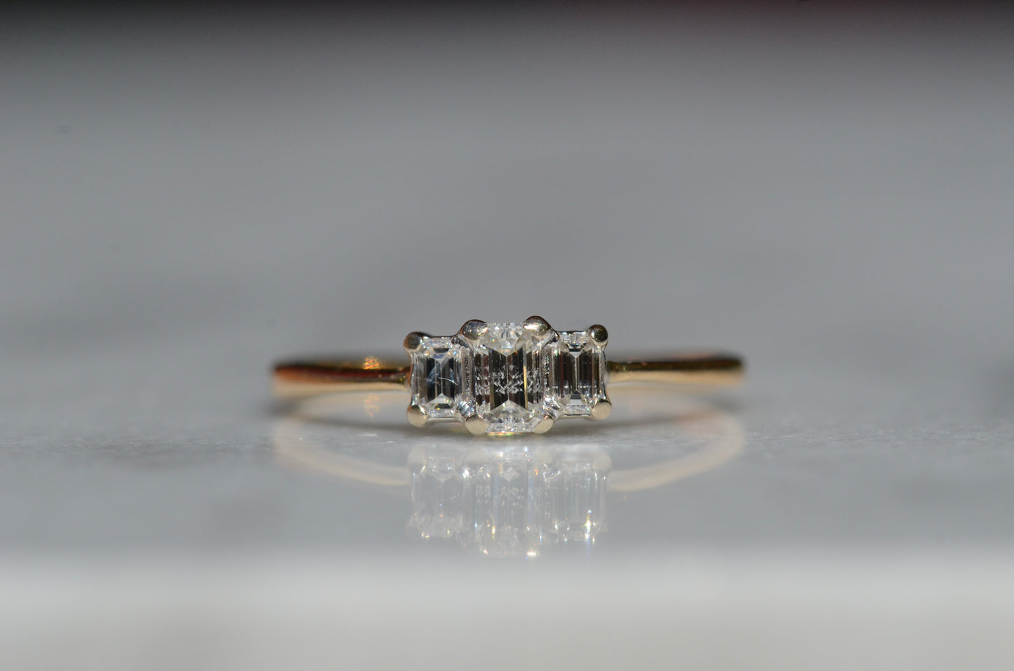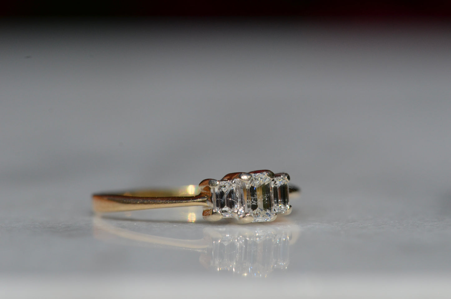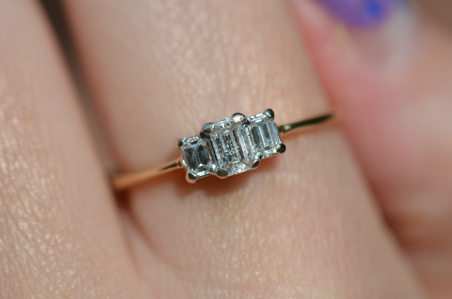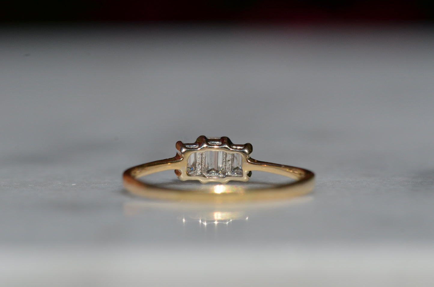 Chic Vintage Emerald Cut Diamond Trilogy Ring