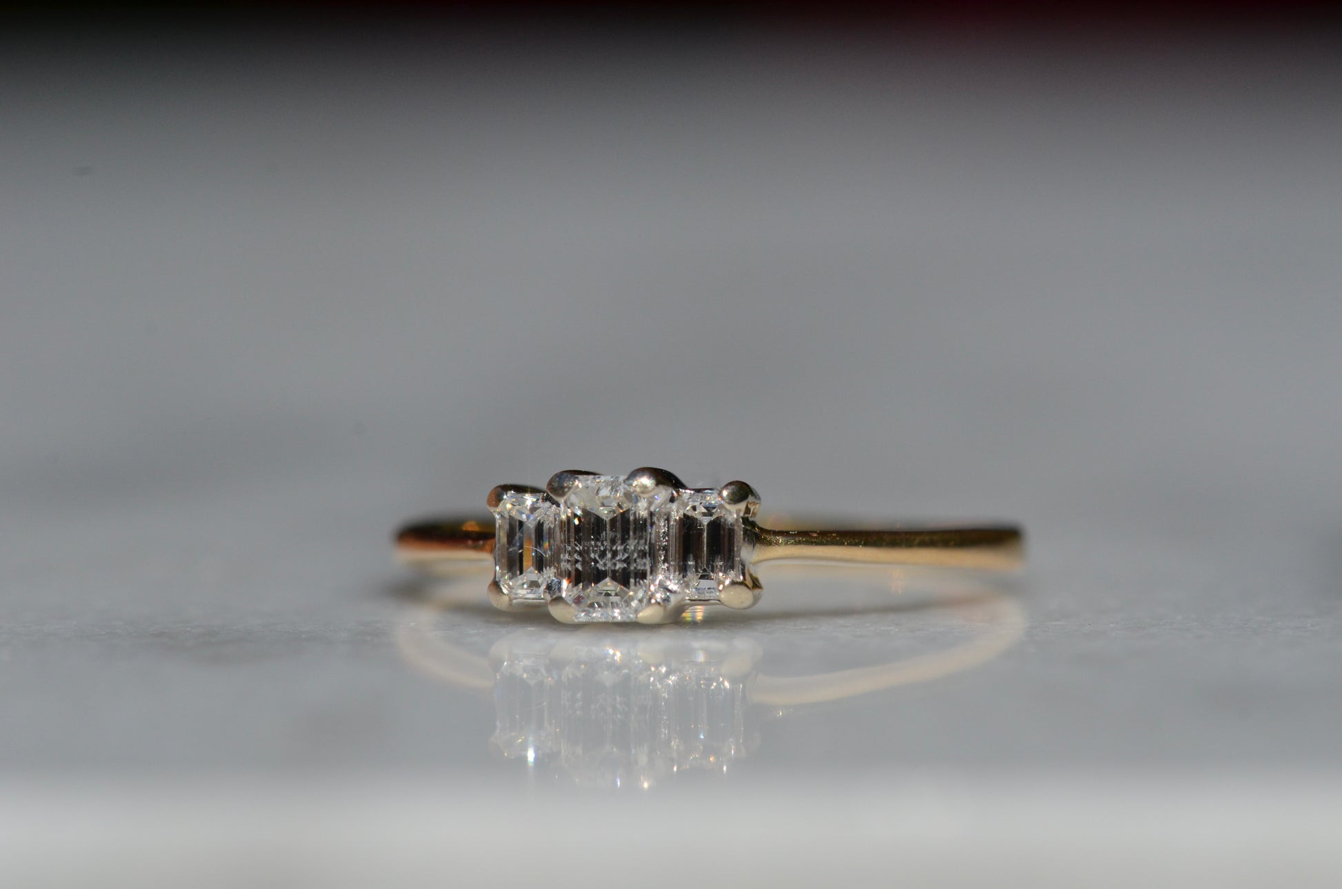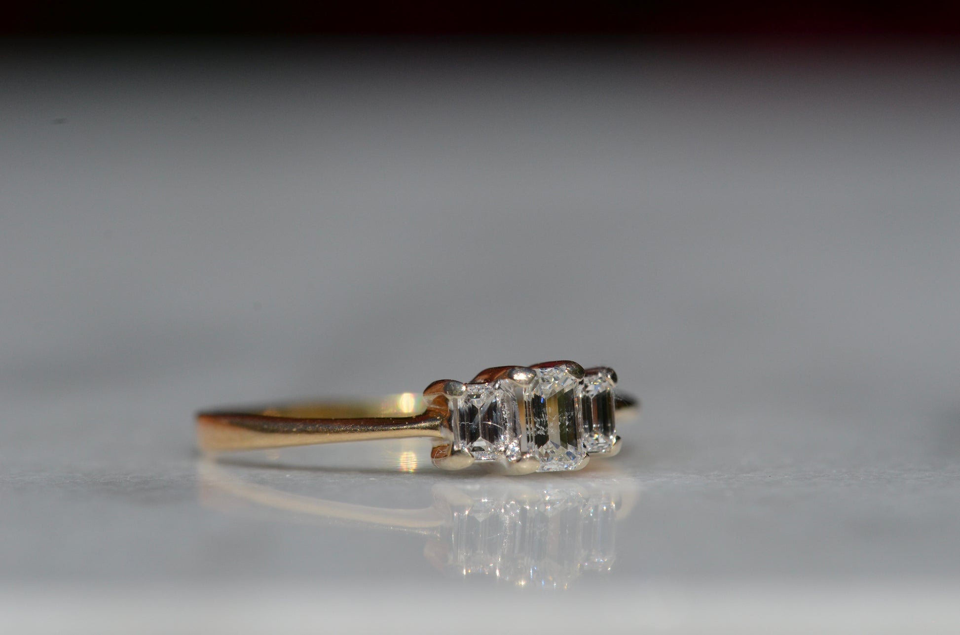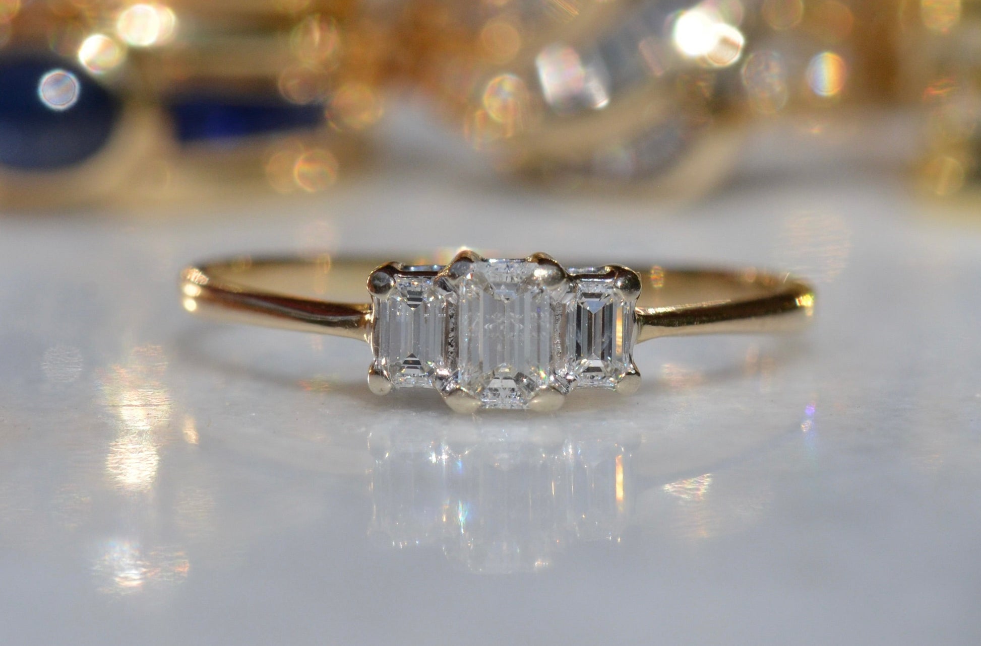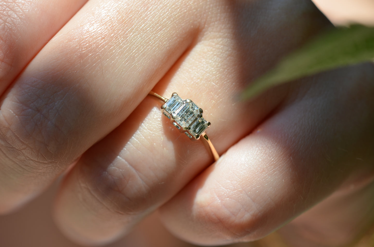 Chic Vintage Emerald Cut Diamond Trilogy Ring