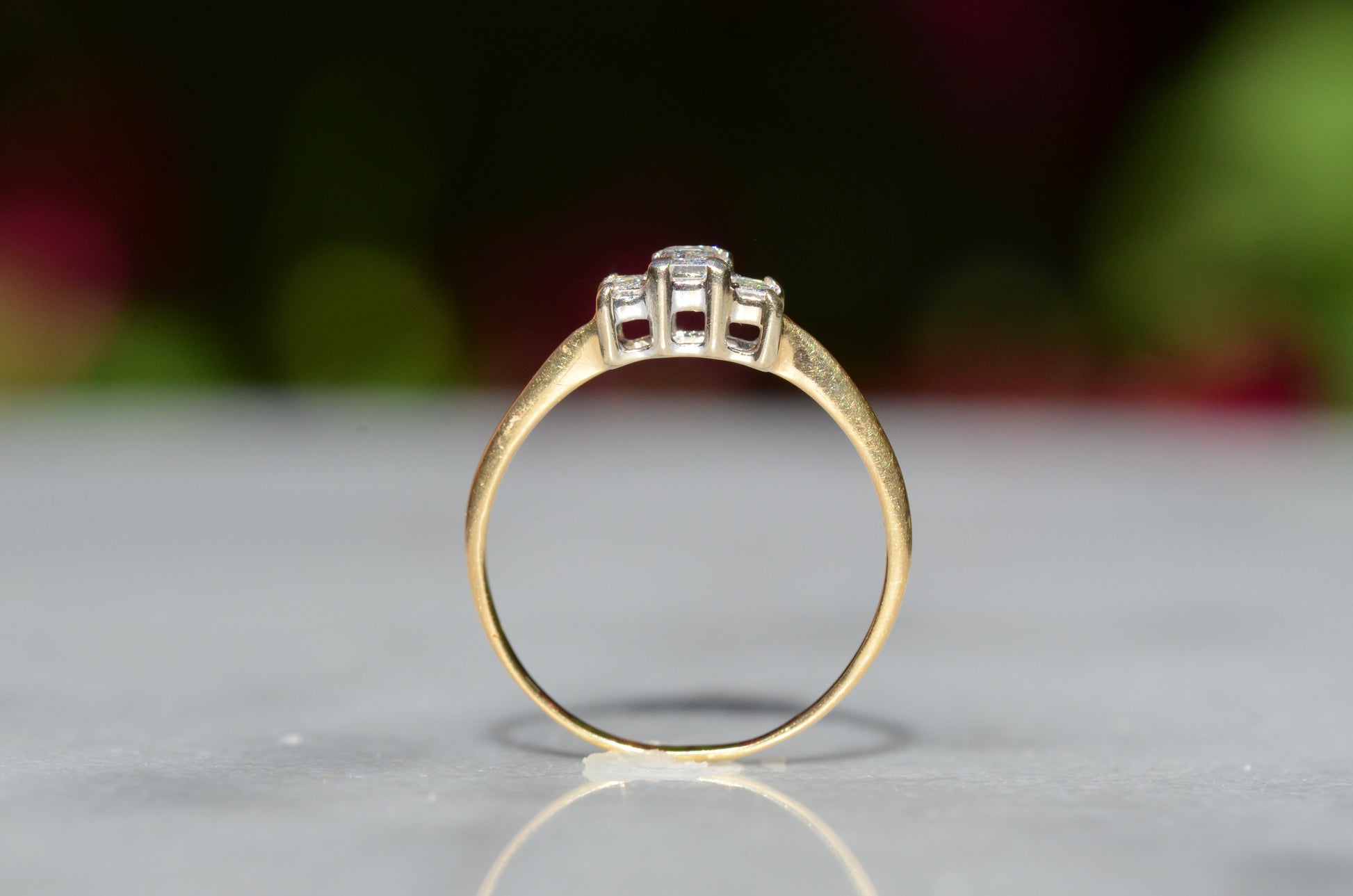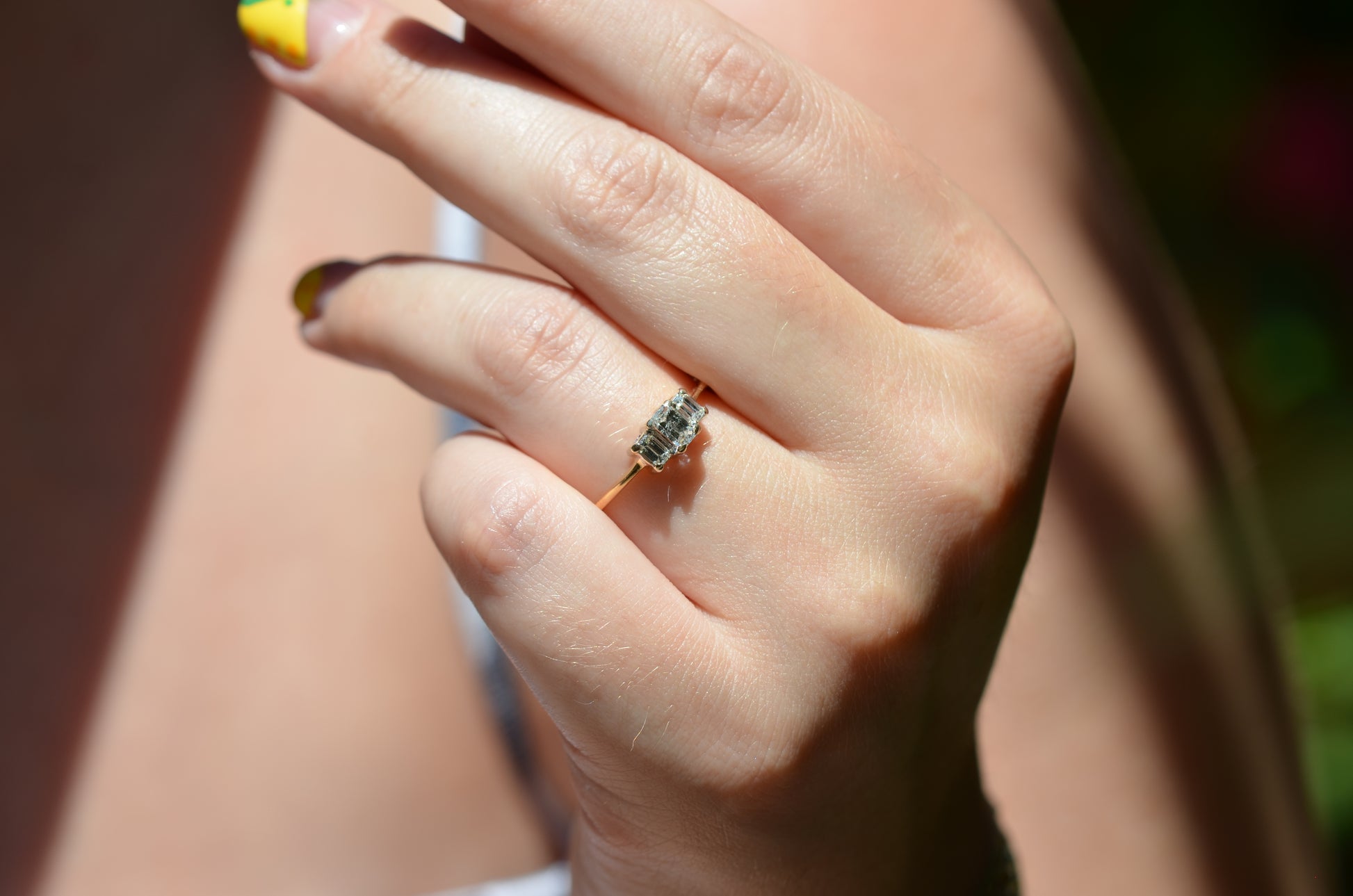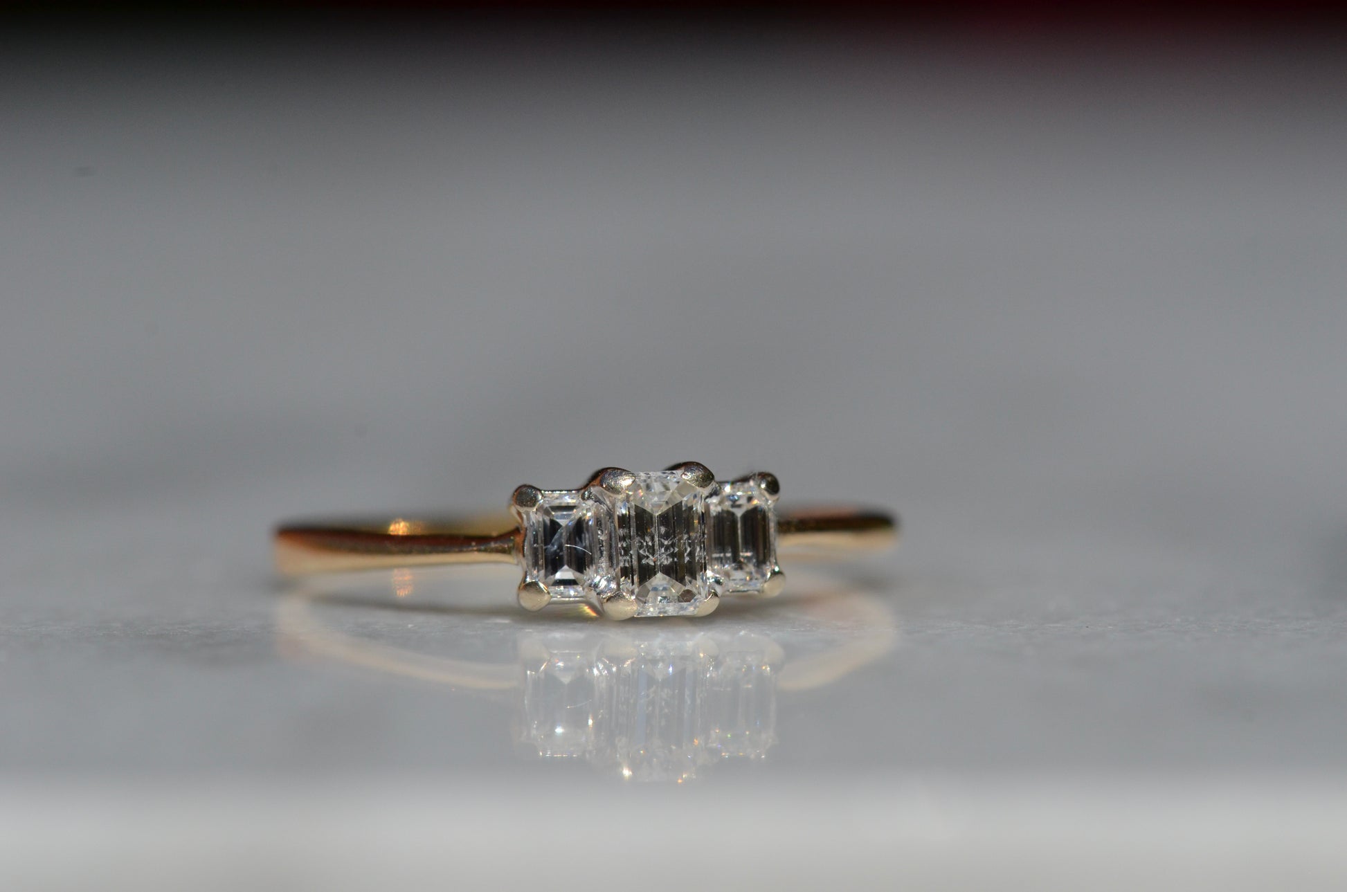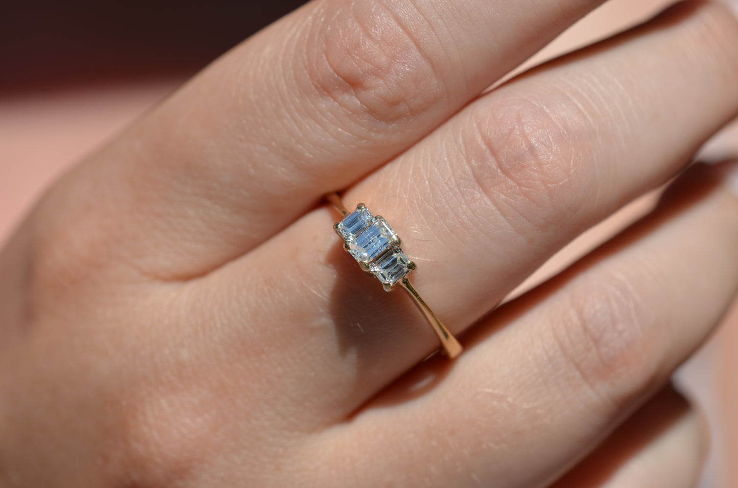 Chic Vintage Emerald Cut Diamond Trilogy Ring