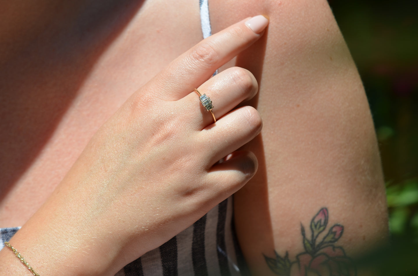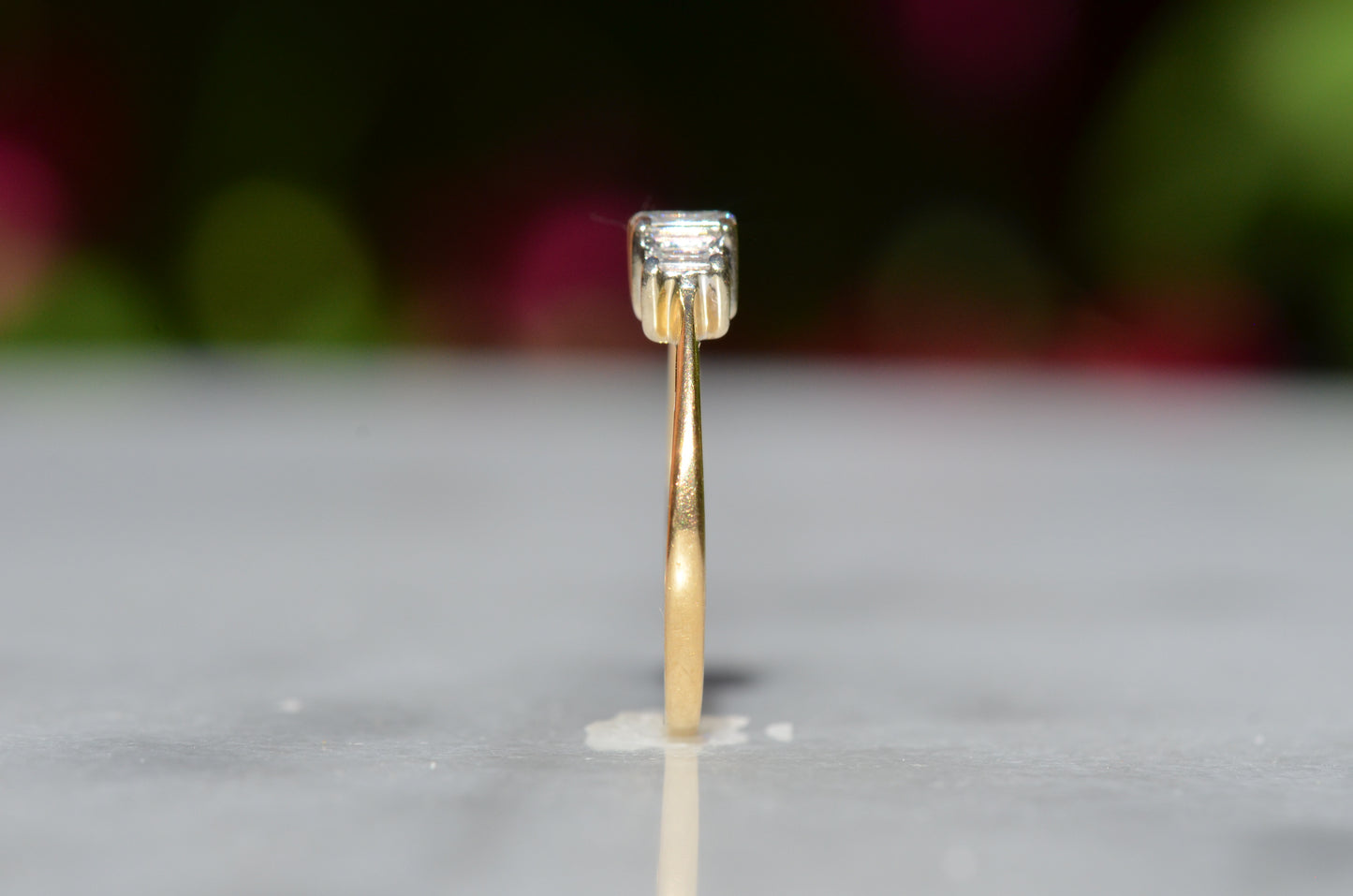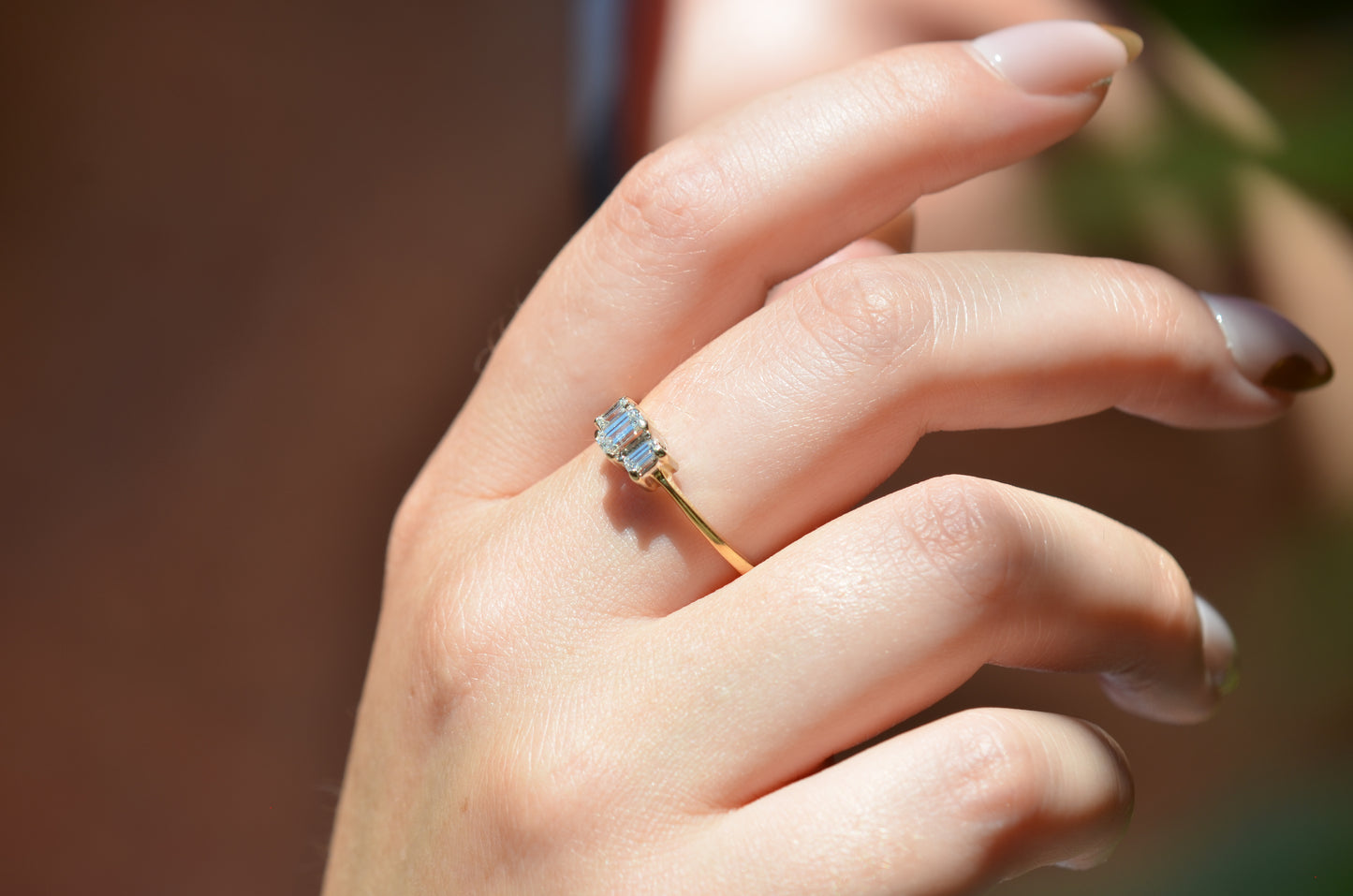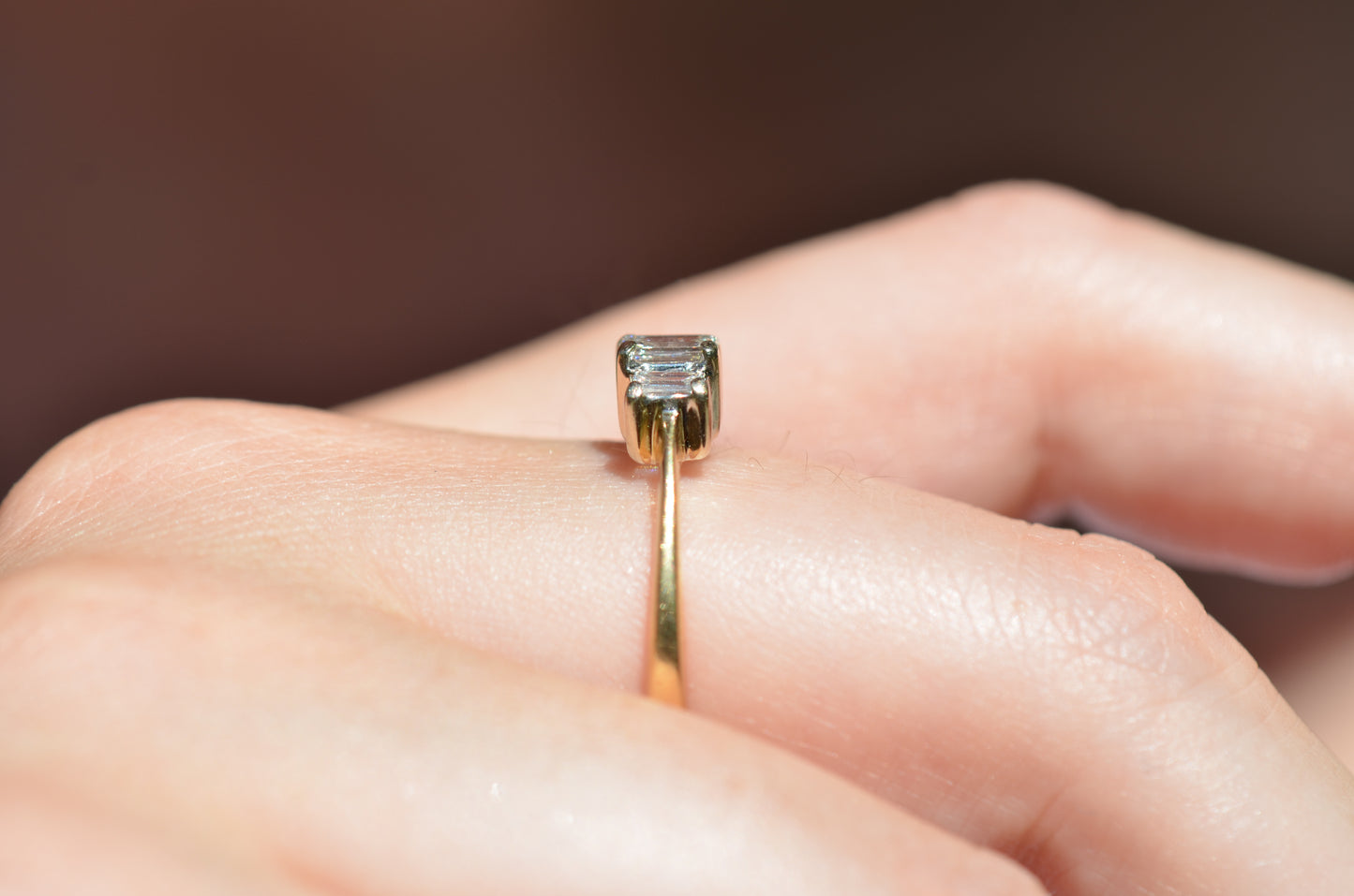 Chic Vintage Emerald Cut Diamond Trilogy Ring