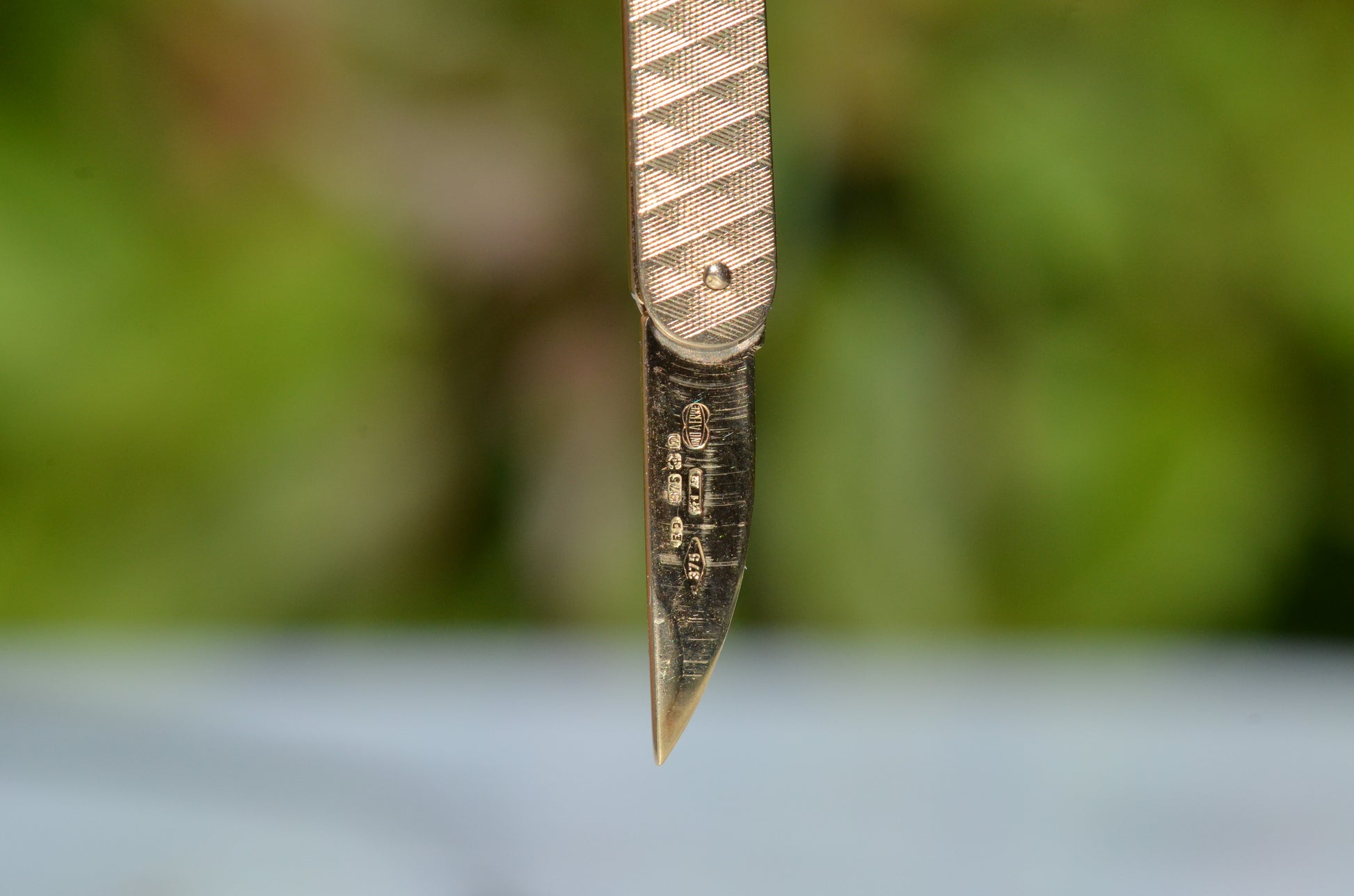 Whether a fan of West Side Story or looking to add a little edge to your collection of protective talismans, this petite pocketknife fits the bill! We are utterly charmed by the sleek engine-turned texture of the handle and the way the (sharp!) little gold blade eases out - this is a piece that perfectly straddles the line between "always prepared scout" and "loose cannon wild card" and we are HERE for it.