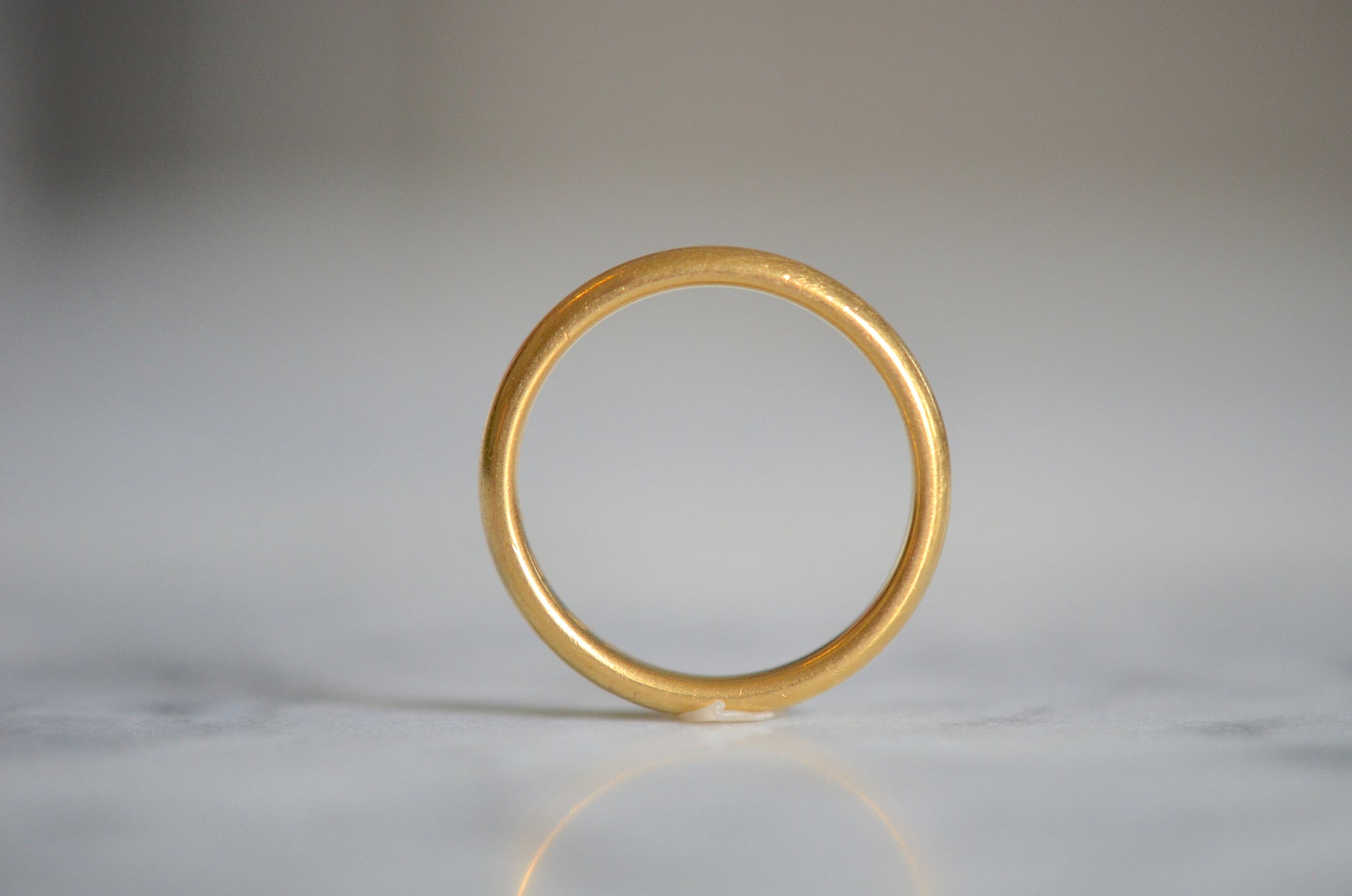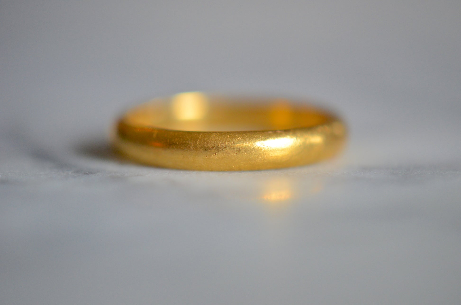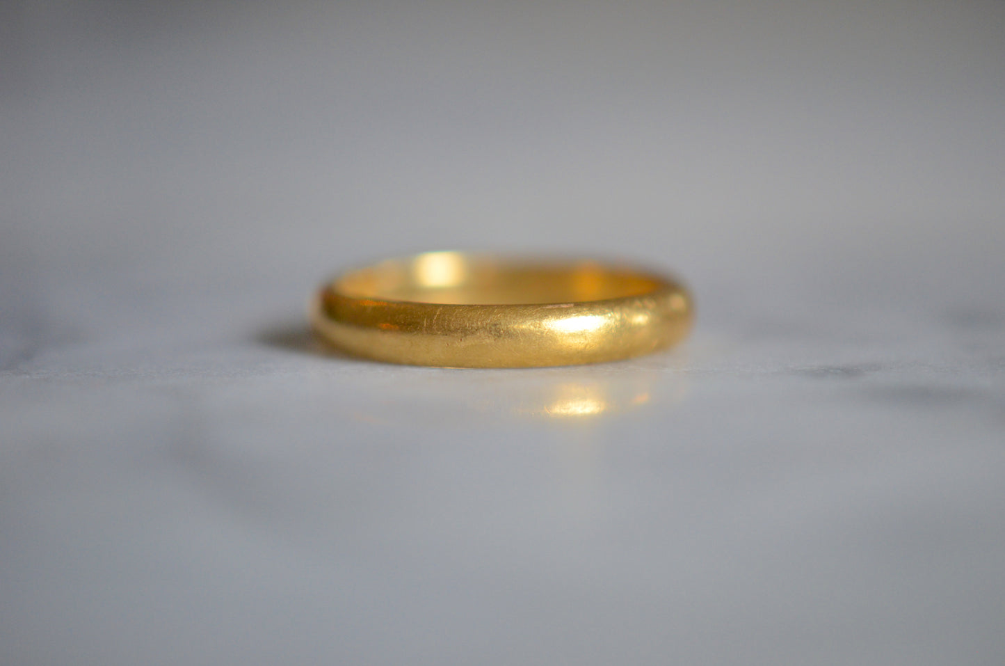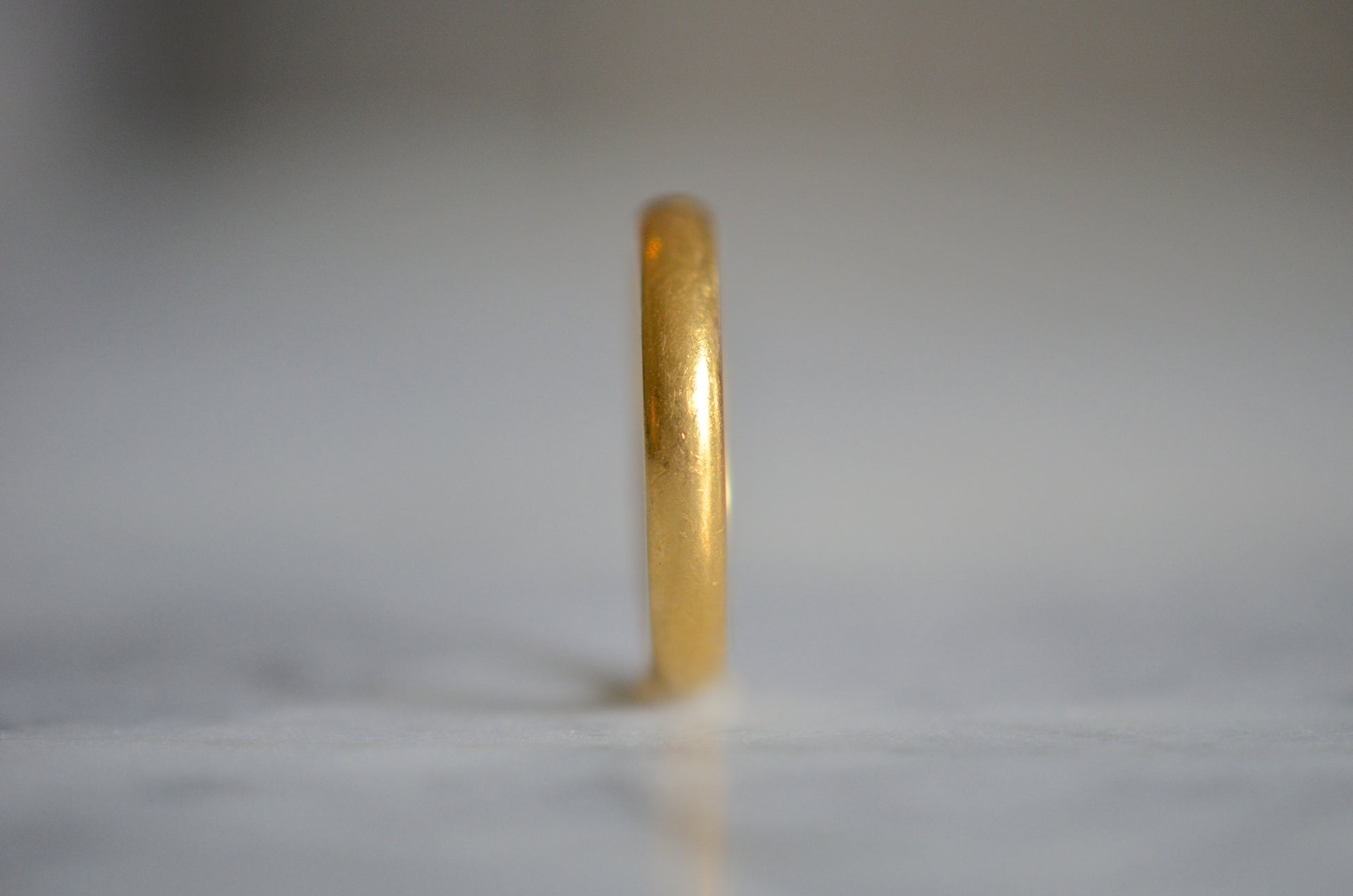A gloriously thick and heavy ring with easy, everyday charm, this is exactly the sort of staple piece you'll never want to take off. Beautifully crafted in glowing 22k gold that has the softness of generations of wear, this ring is all smooth edges and sentimental secrets.