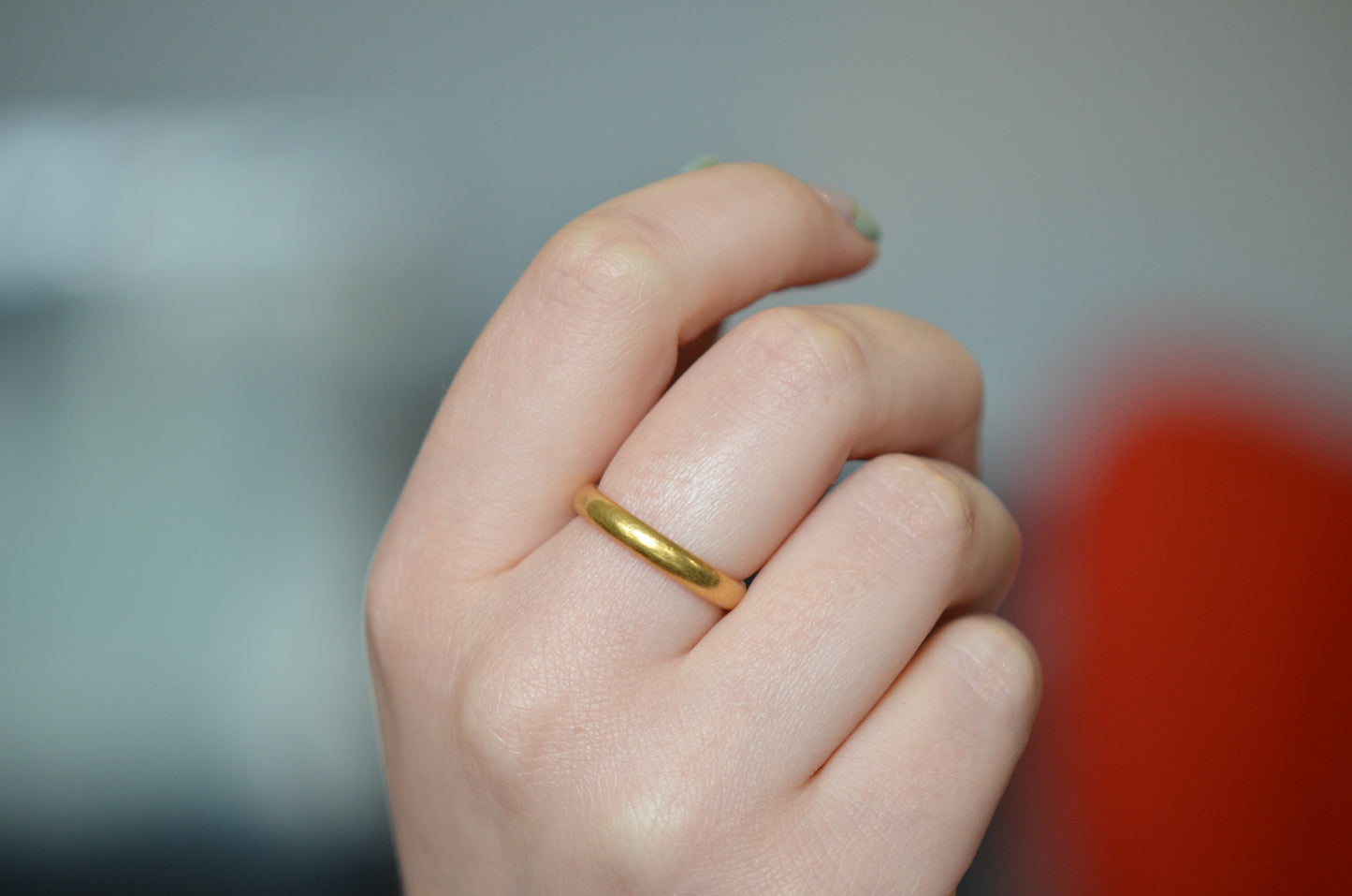 • 3.3mm wide (knuckle to knuckle) and 1.7mm thick (rise off finger), with a comfort fit inside and rounded Tiffany-style outside