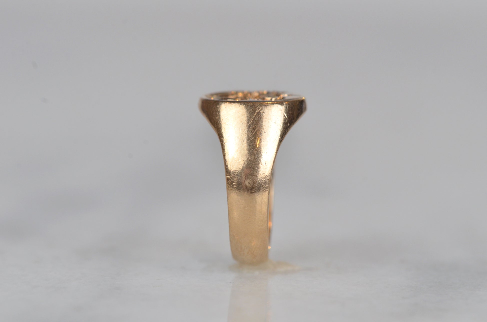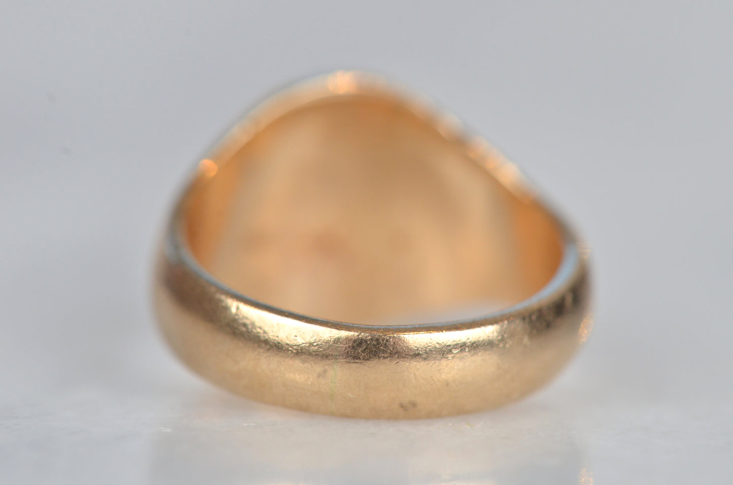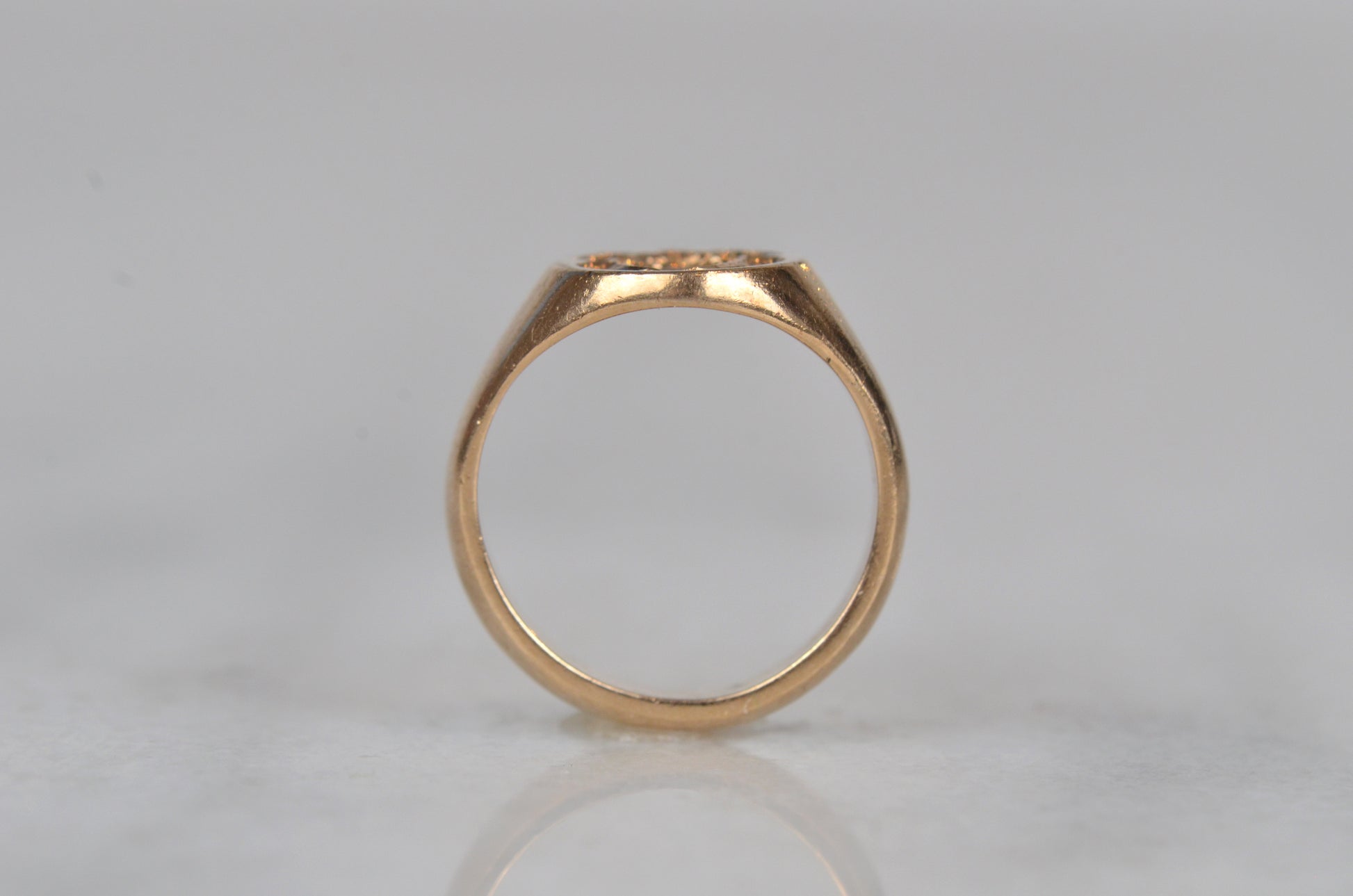 • Face of ring measures 12.2mm wide, 10.5mm across, with a rise of 1.8mm; back of band measures 4.1mm wide and 1.5mm thick
