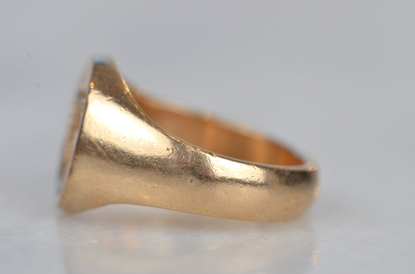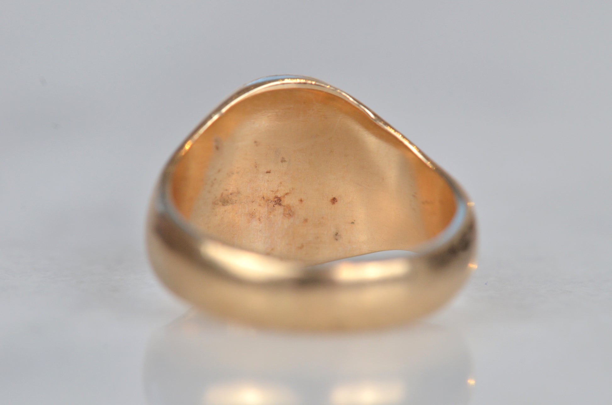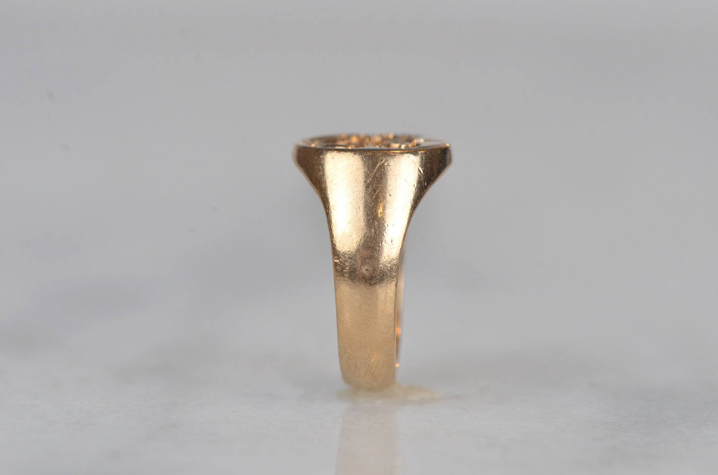 • Face of ring measures 12.2mm wide, 10.5mm across, with a rise of 1.8mm; back of band measures 4.1mm wide and 1.5mm thick