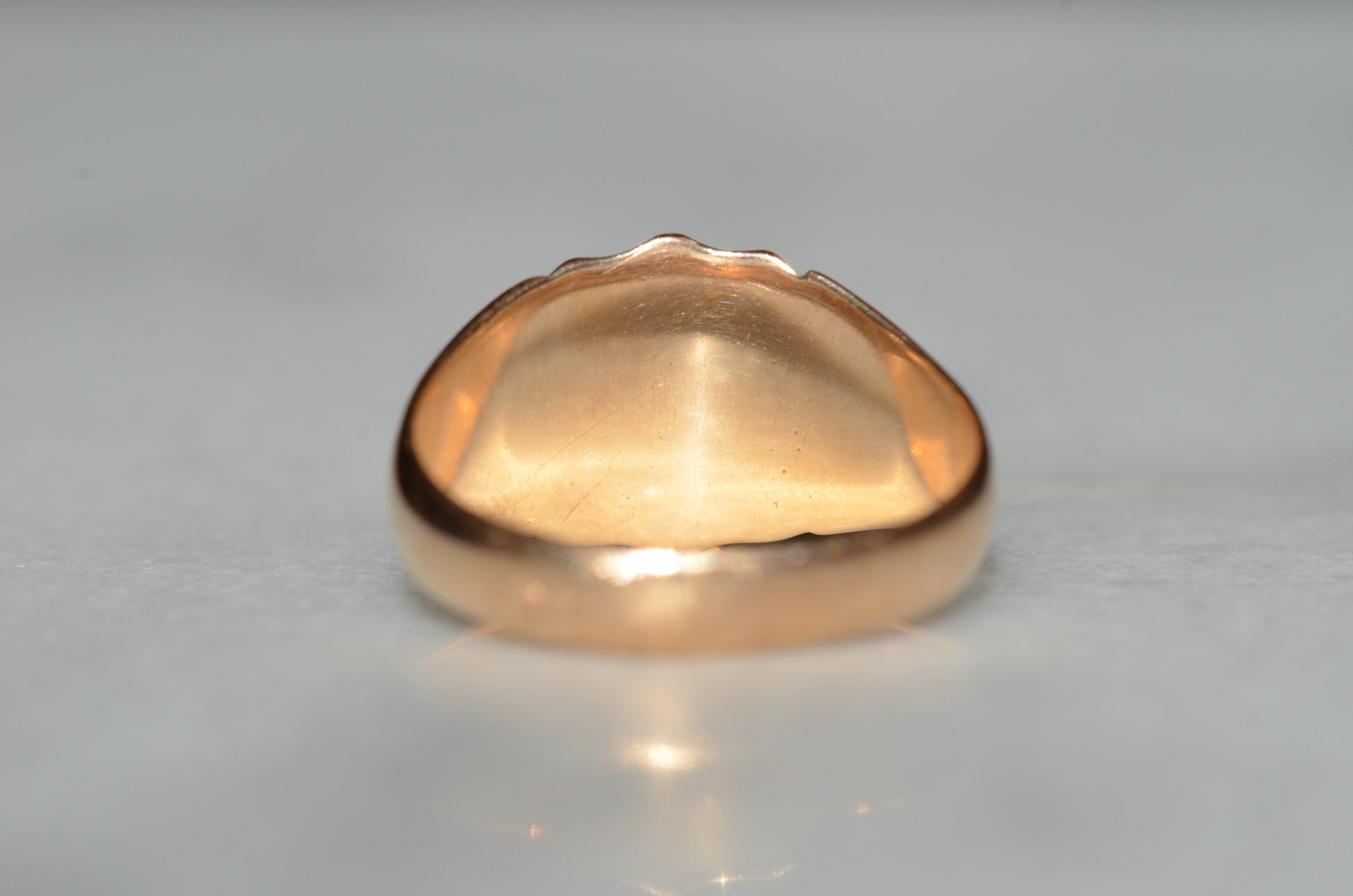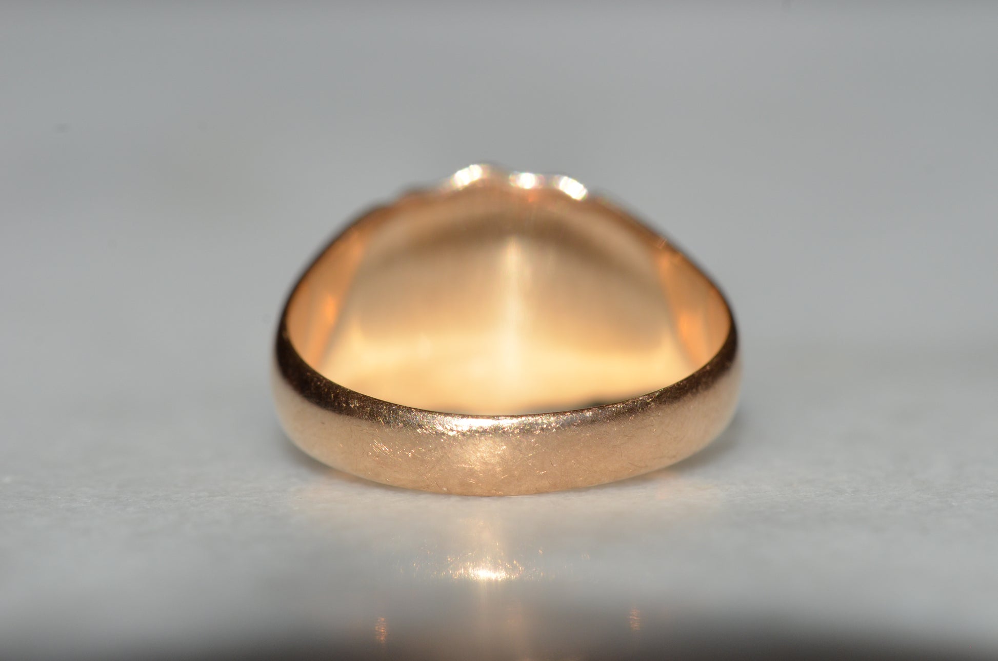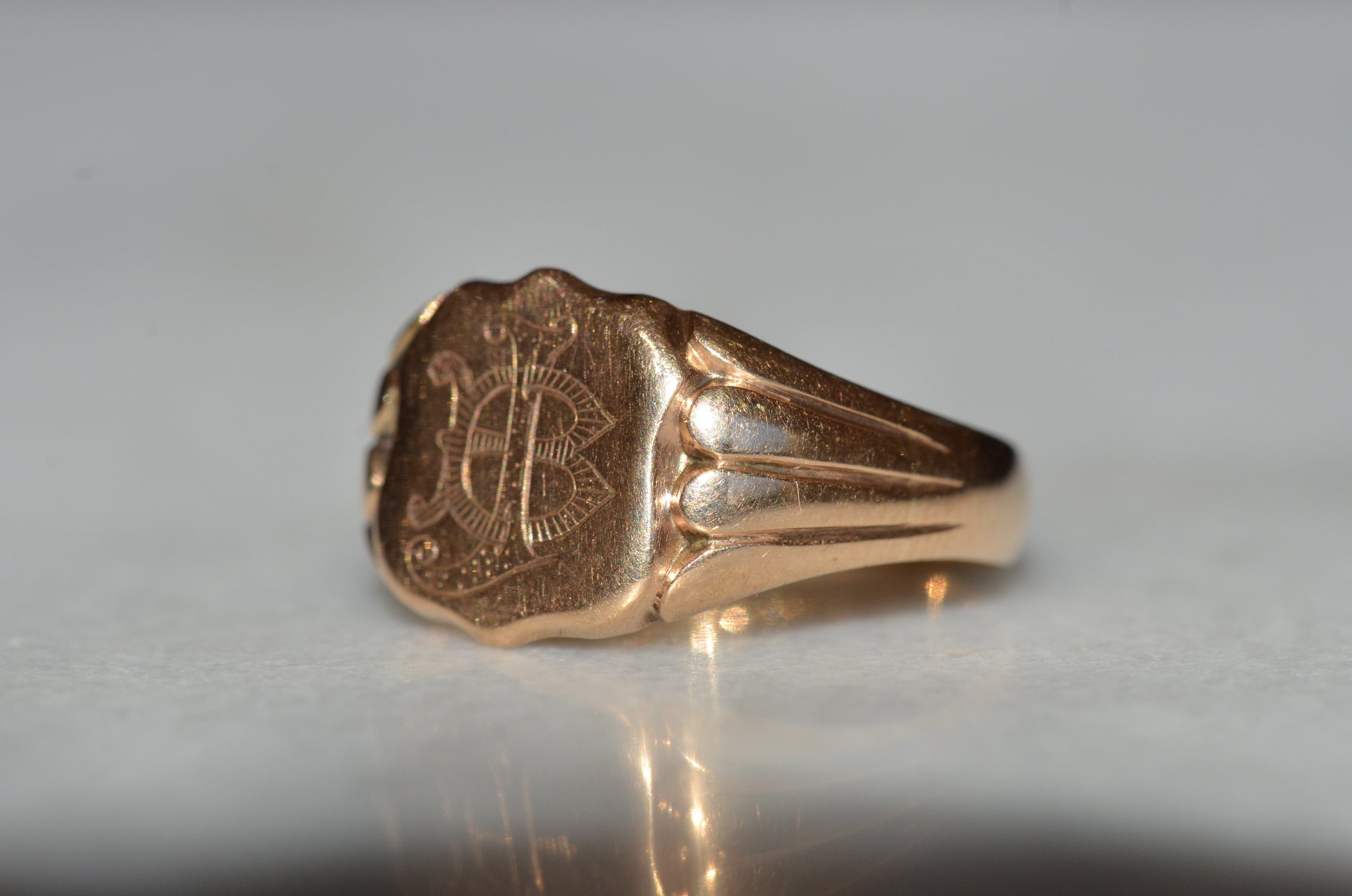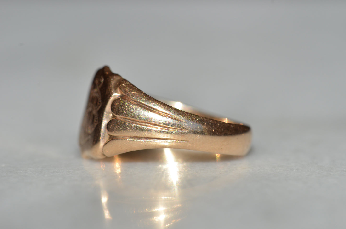 A gorgeous Edwardian signet in a style that feels timeless despite nods to the era, with lovely flared shoulders and shaded initials in the monogram. There's such a special feeling in finding a preloved piece that already has letters on it that are meaningful to you, that we play pretty fast and loose - maybe it's the first or last initials of you and your lover, or your own in another order, or the initials of a loved one: no matter what, it will feel sentimental every time it catches your eye.