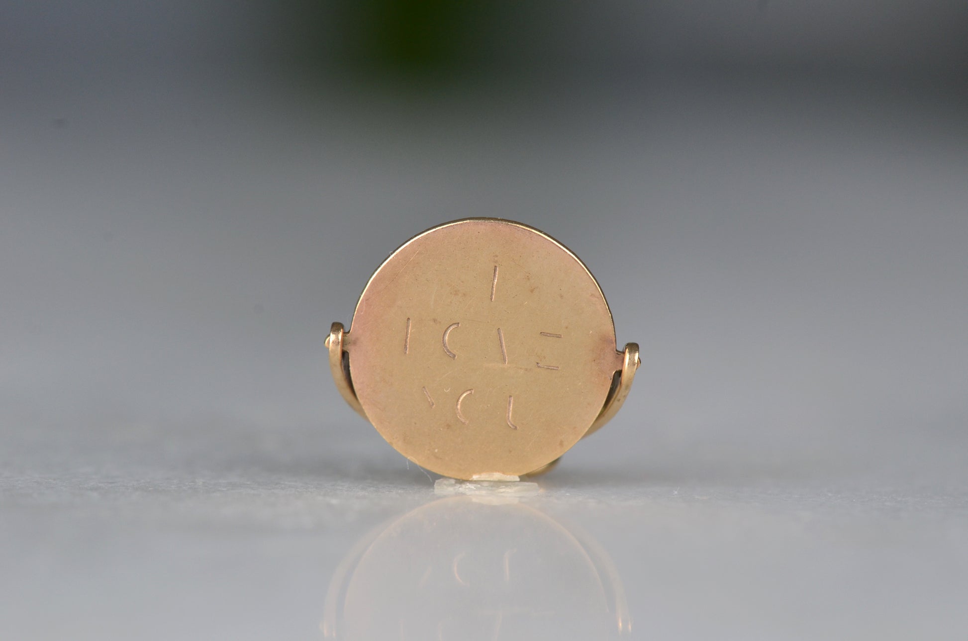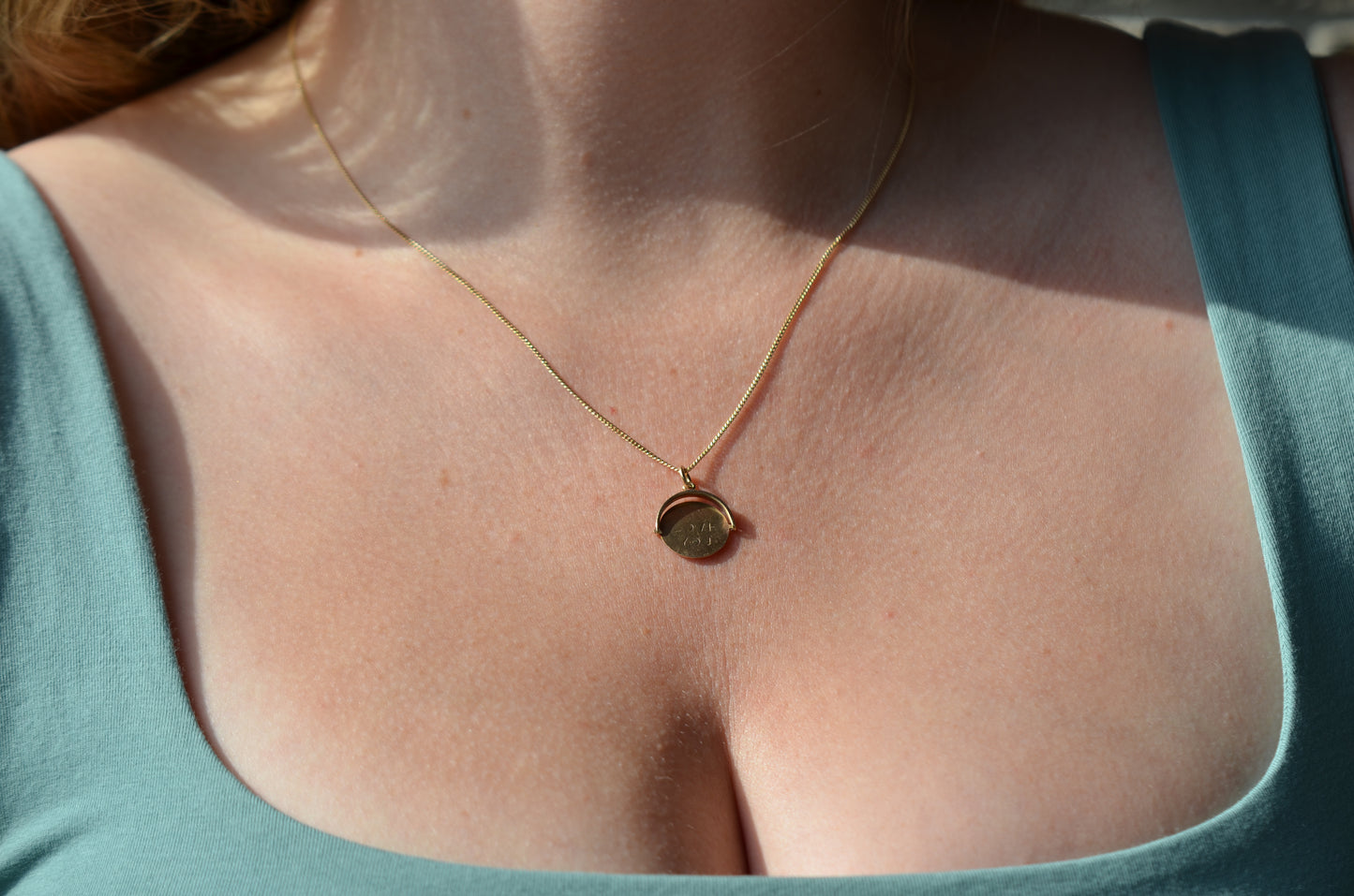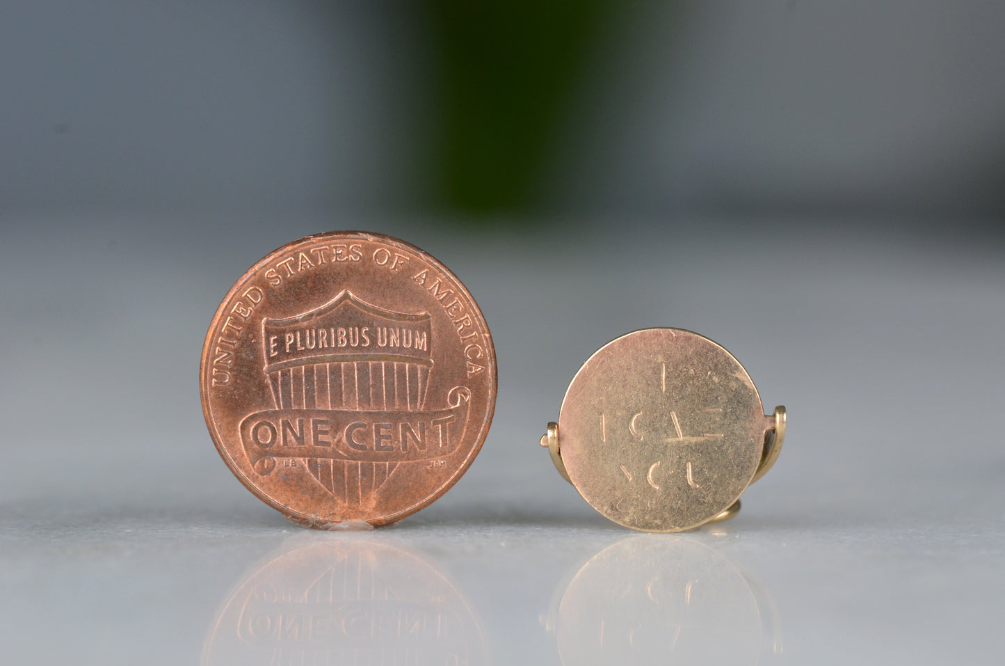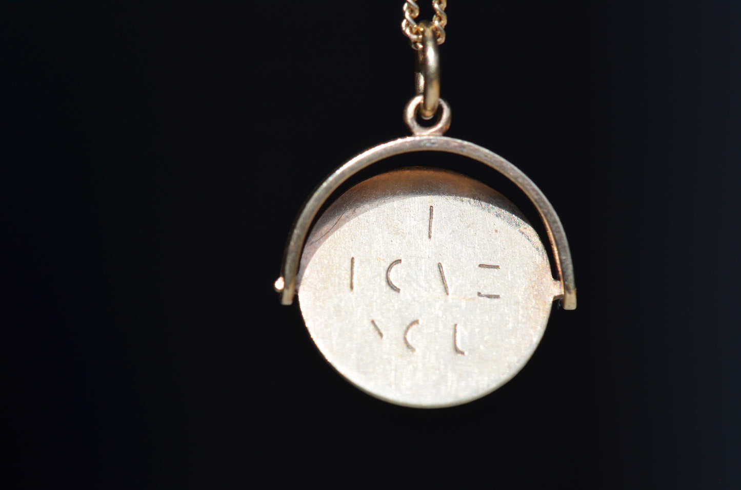 Straight from the mid-century charm craze, these delightful pieces can be added to your own charm bracelet or necklace, or worn alone on a chain to give them all the focus. Each side of the disc bears only a portion of each letter, creating a secret message that is only revealed when the disc is spun and in motion.
