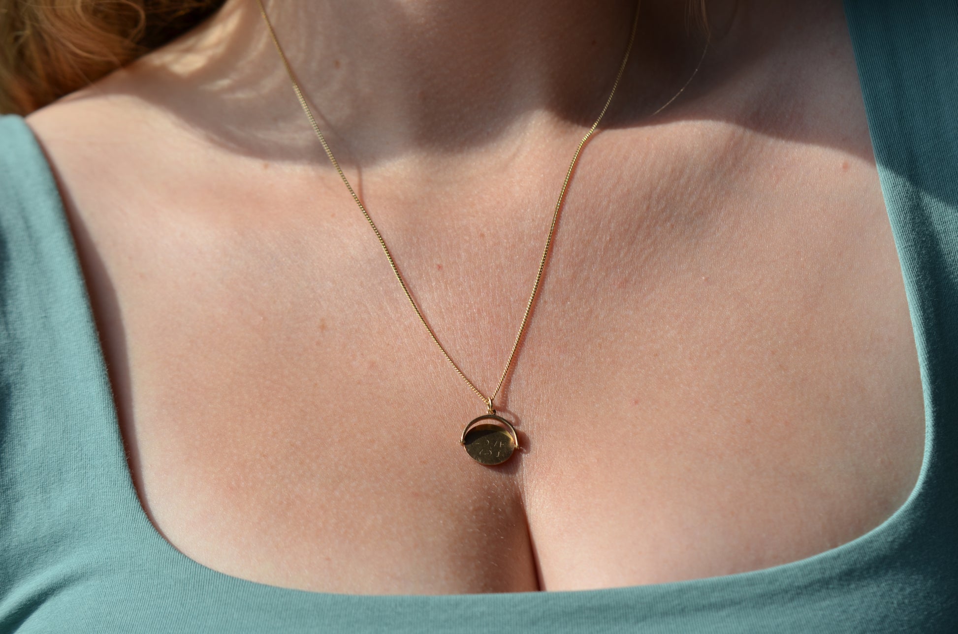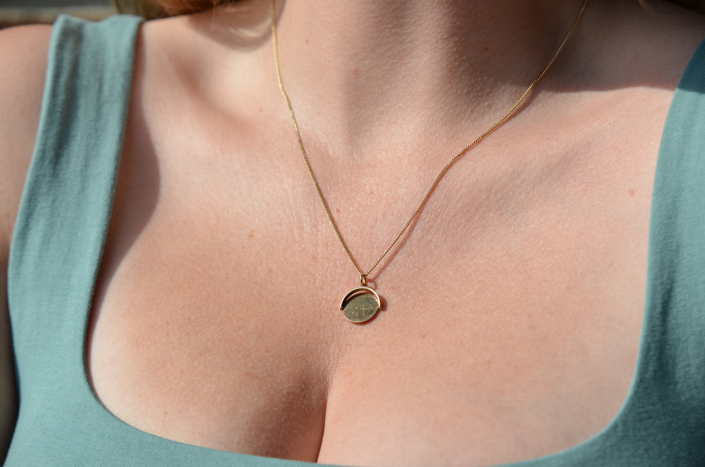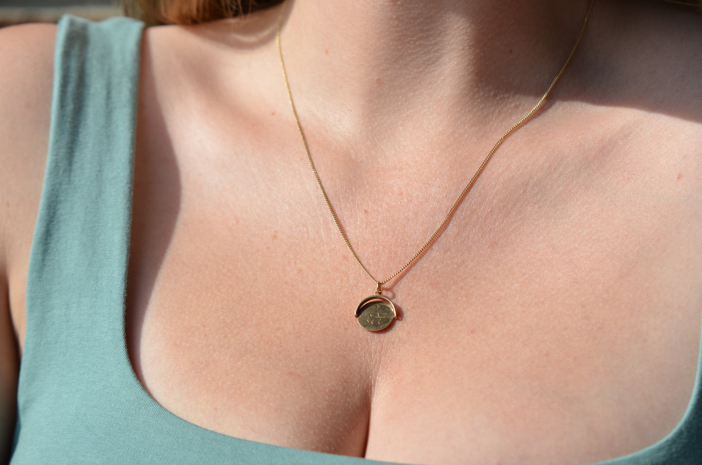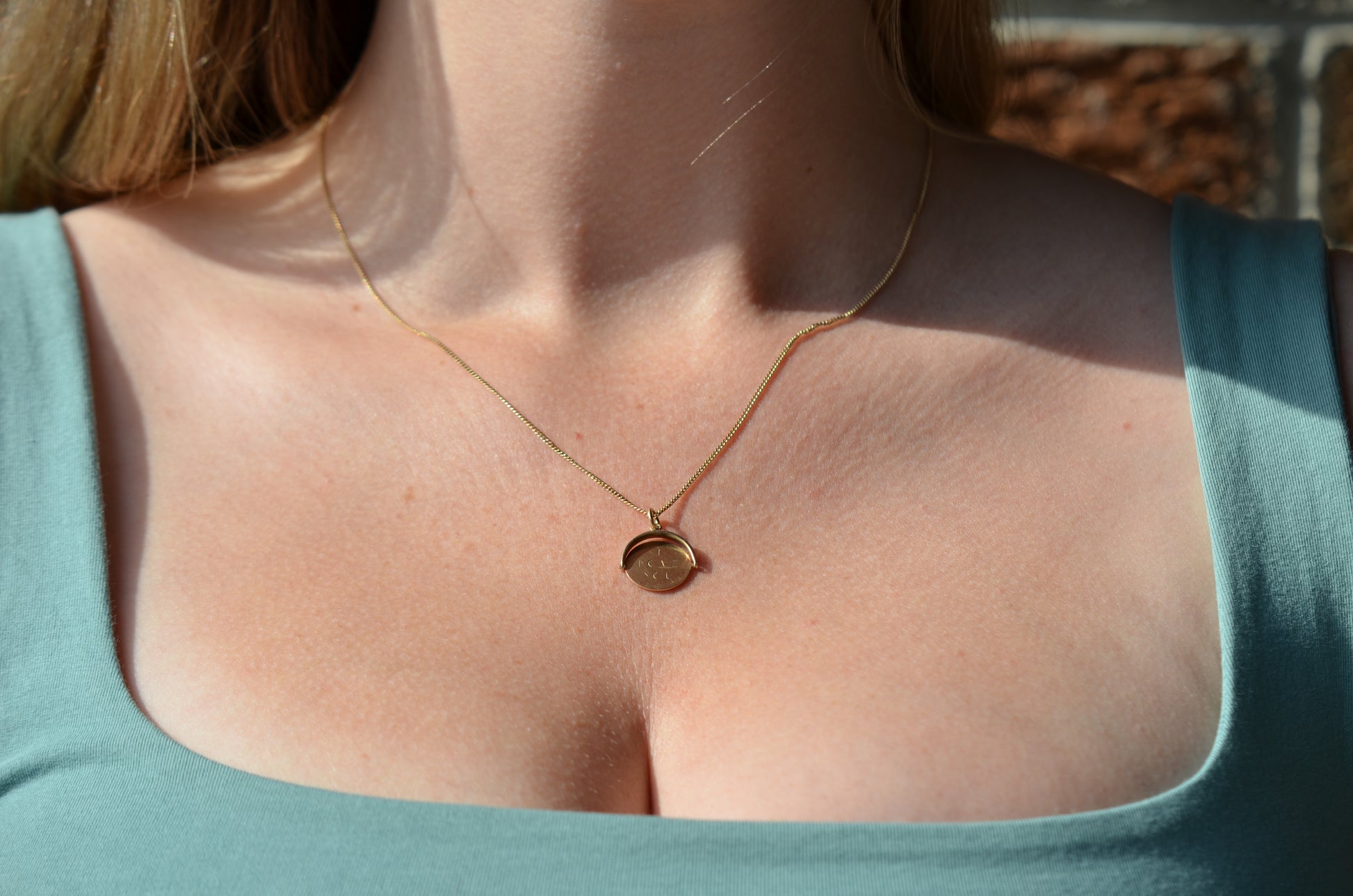 Straight from the mid-century charm craze, these delightful pieces can be added to your own charm bracelet or necklace, or worn alone on a chain to give them all the focus. Each side of the disc bears only a portion of each letter, creating a secret message that is only revealed when the disc is spun and in motion.