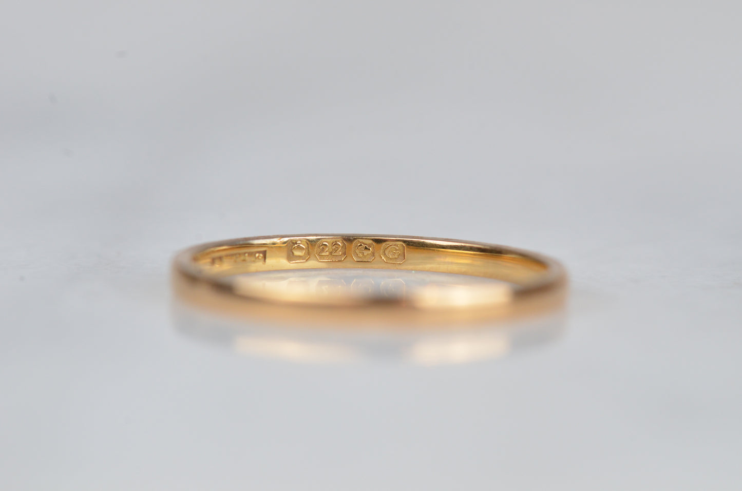 • 22k yellow gold with British hallmarks for Birmingham 1931 and a worn maker's mark