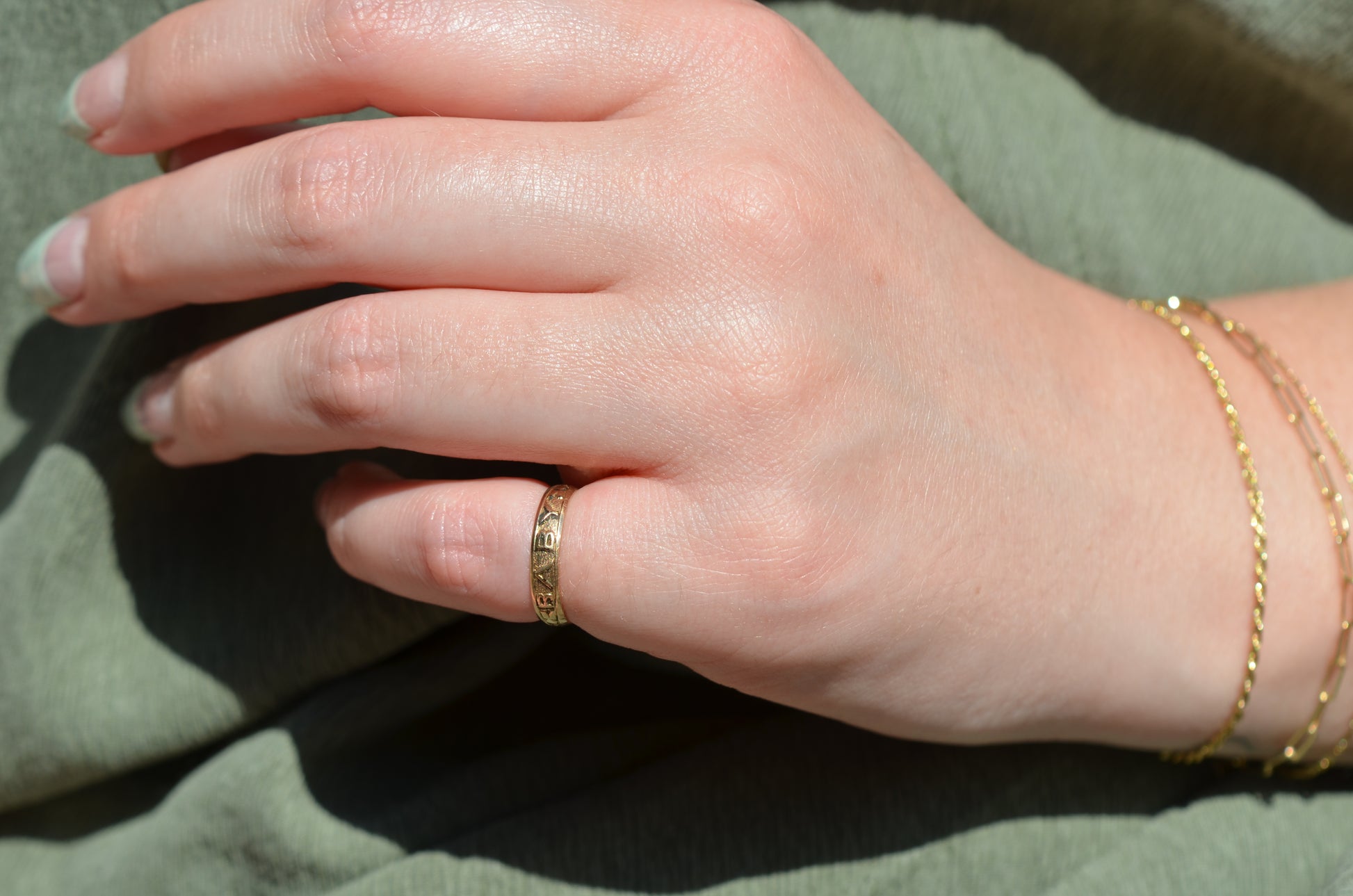 We love the small scale of these pieces, and the way they can elevate an everyday ring stack by being worn as a pinky or midi ring, or strung along a chain with other charms and talismans. This would make a great gift for a new parent, the baby of your family, or your love. Or maybe just for you - cuz you're nobody's baby!