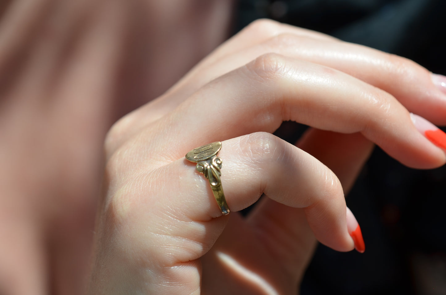 Crisp Vintage Scrolled Signet Ring