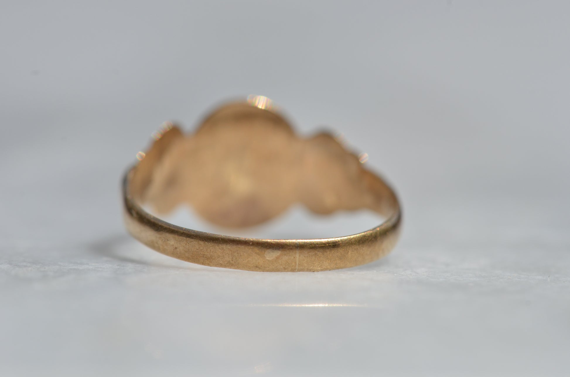 • Face of ring measures 9.4mm x 8.4mm with a rise of 0.6mm; back of band measures 2.1mm wide and 0.6mm thick