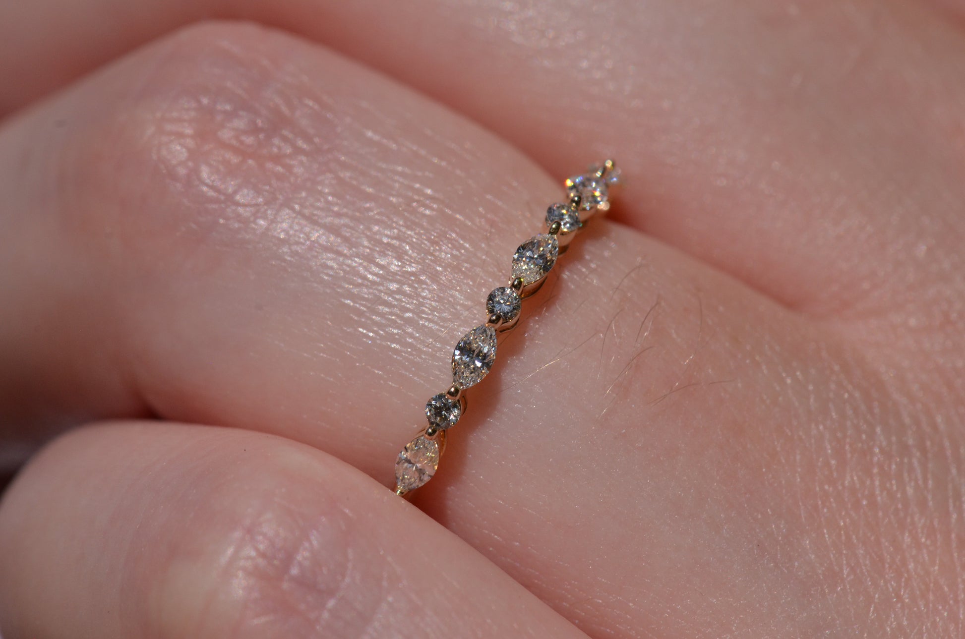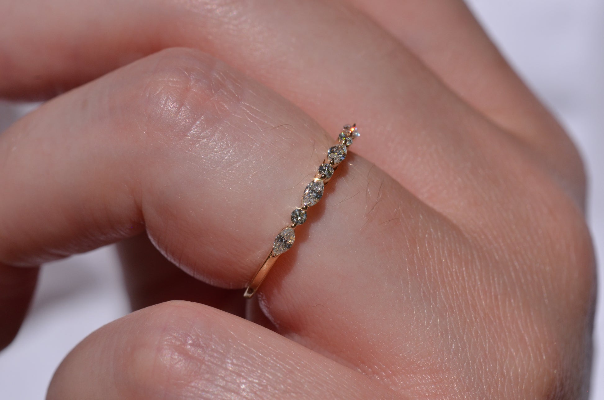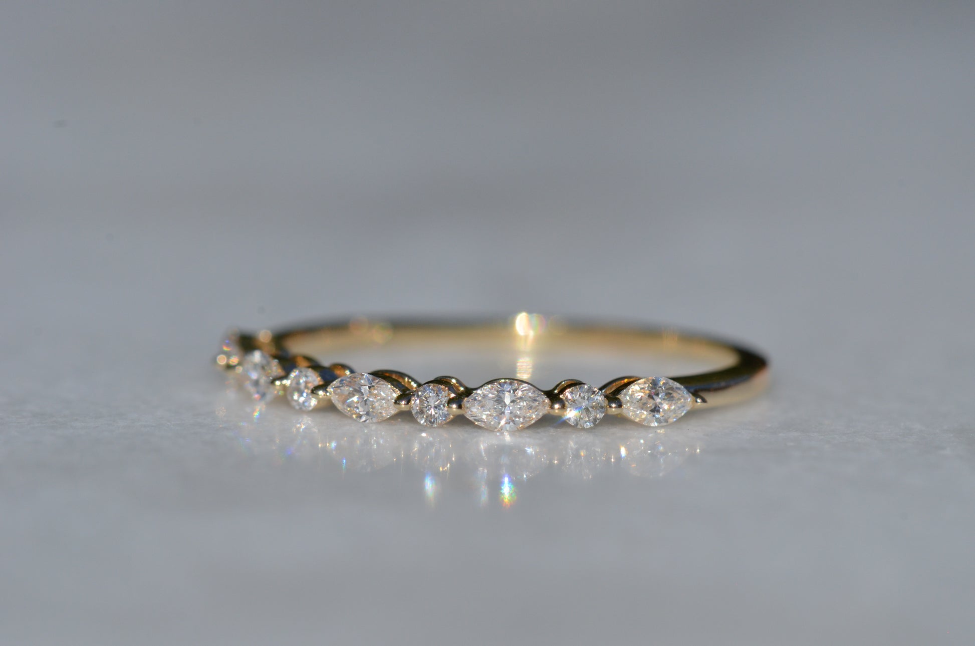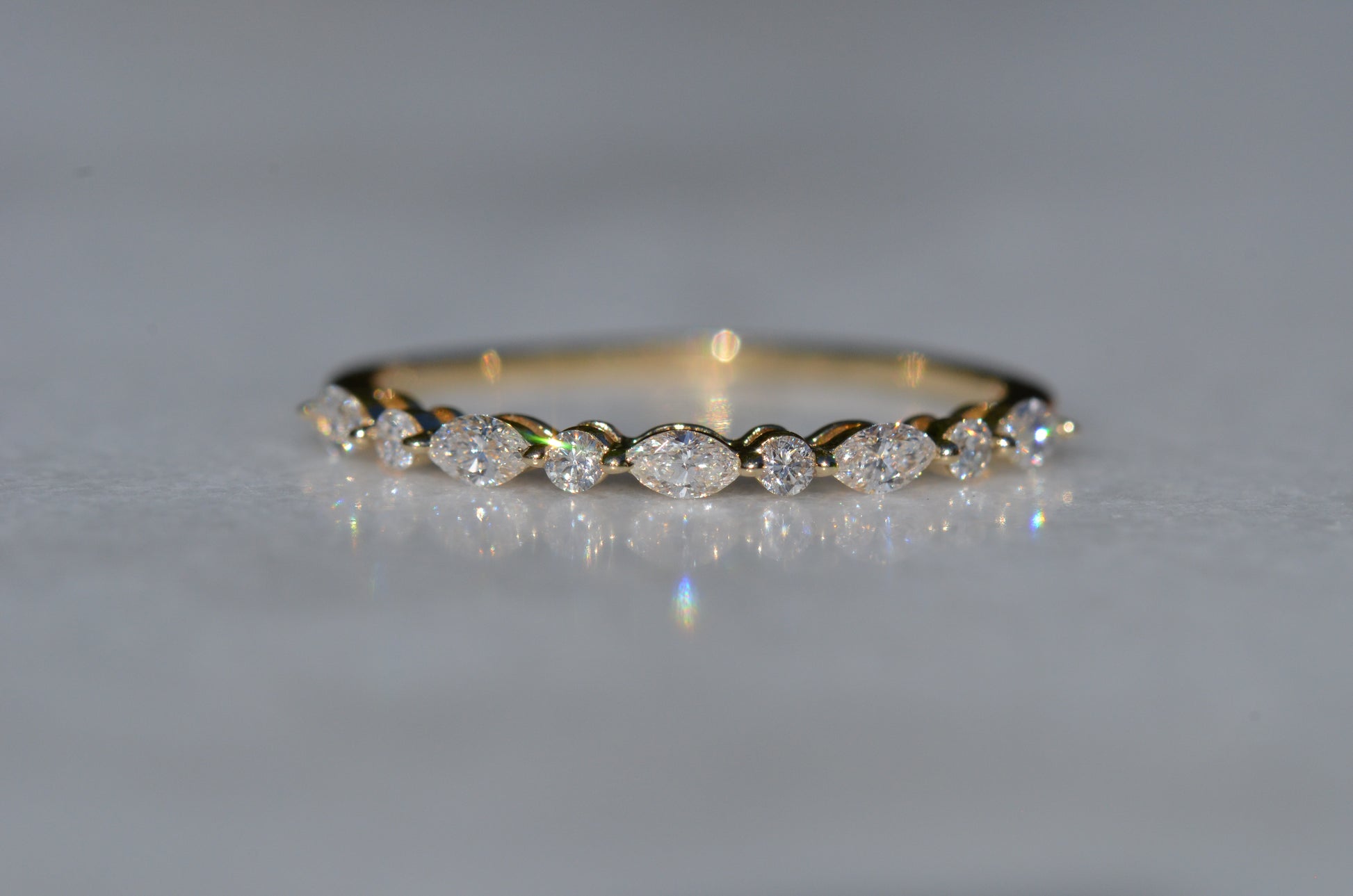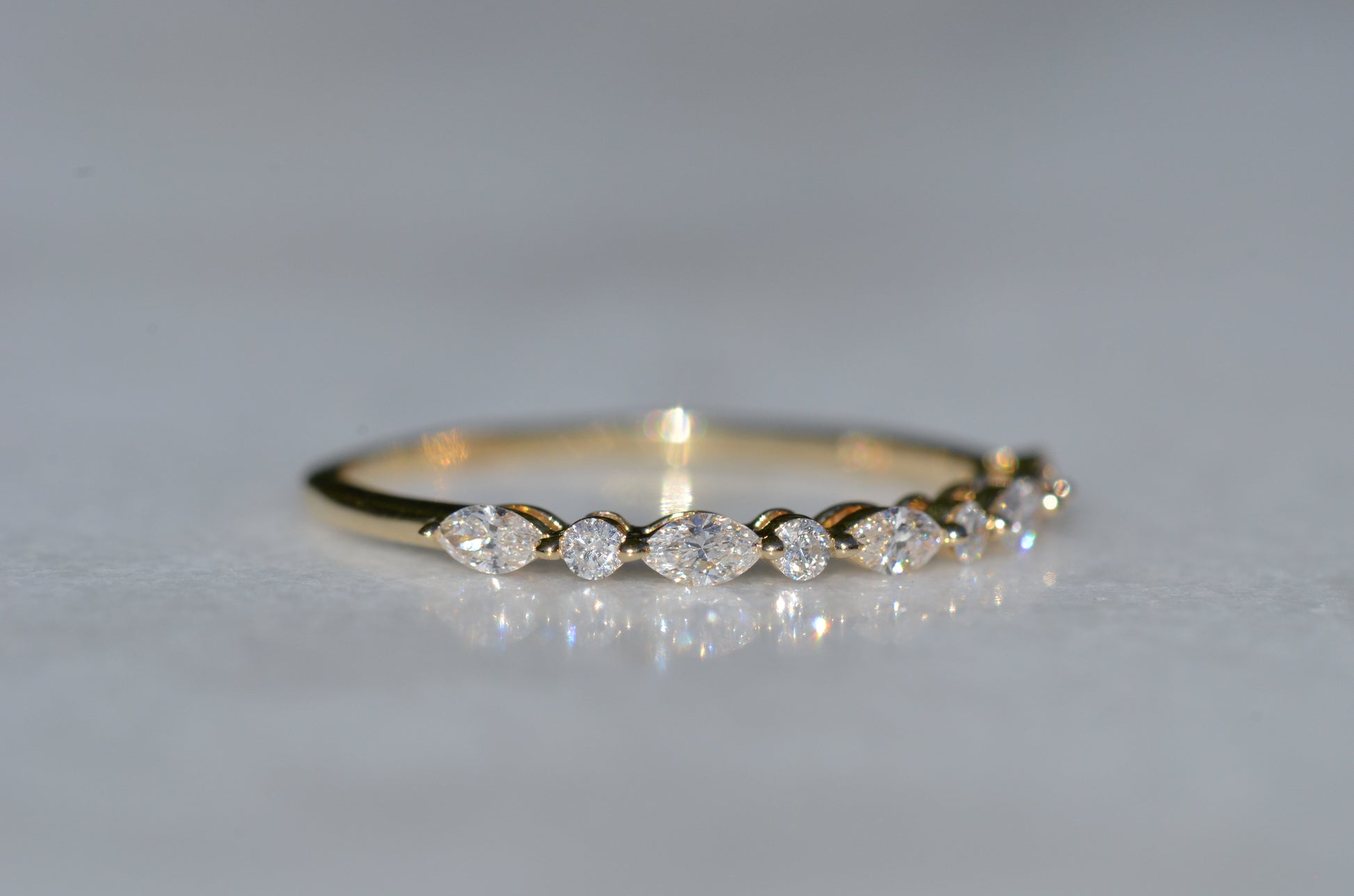 • Five marquise cut diamonds and four round brilliant diamonds, approximately 0.39ctw