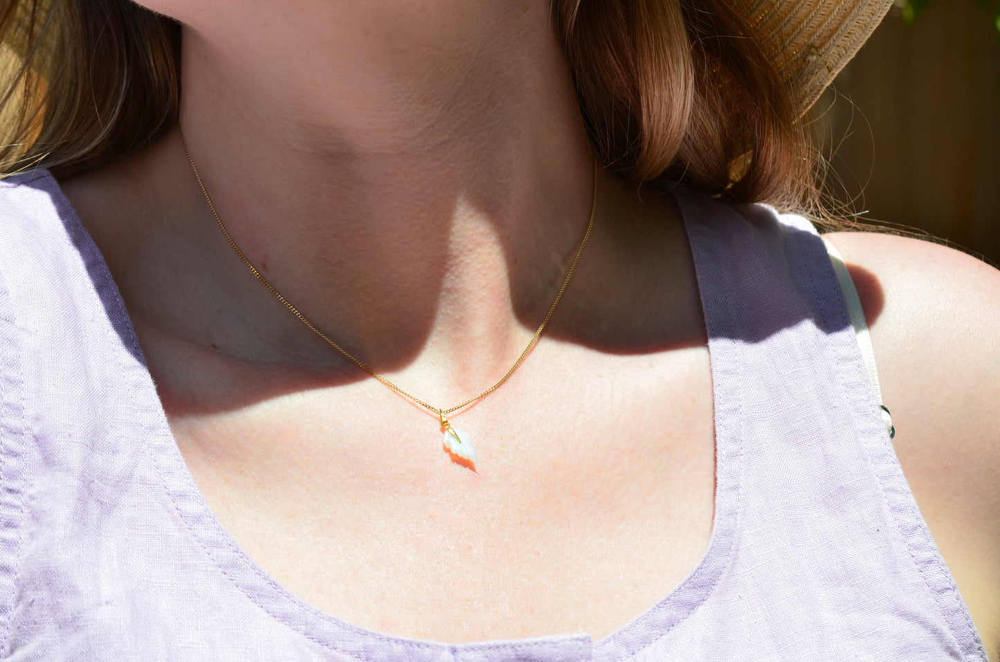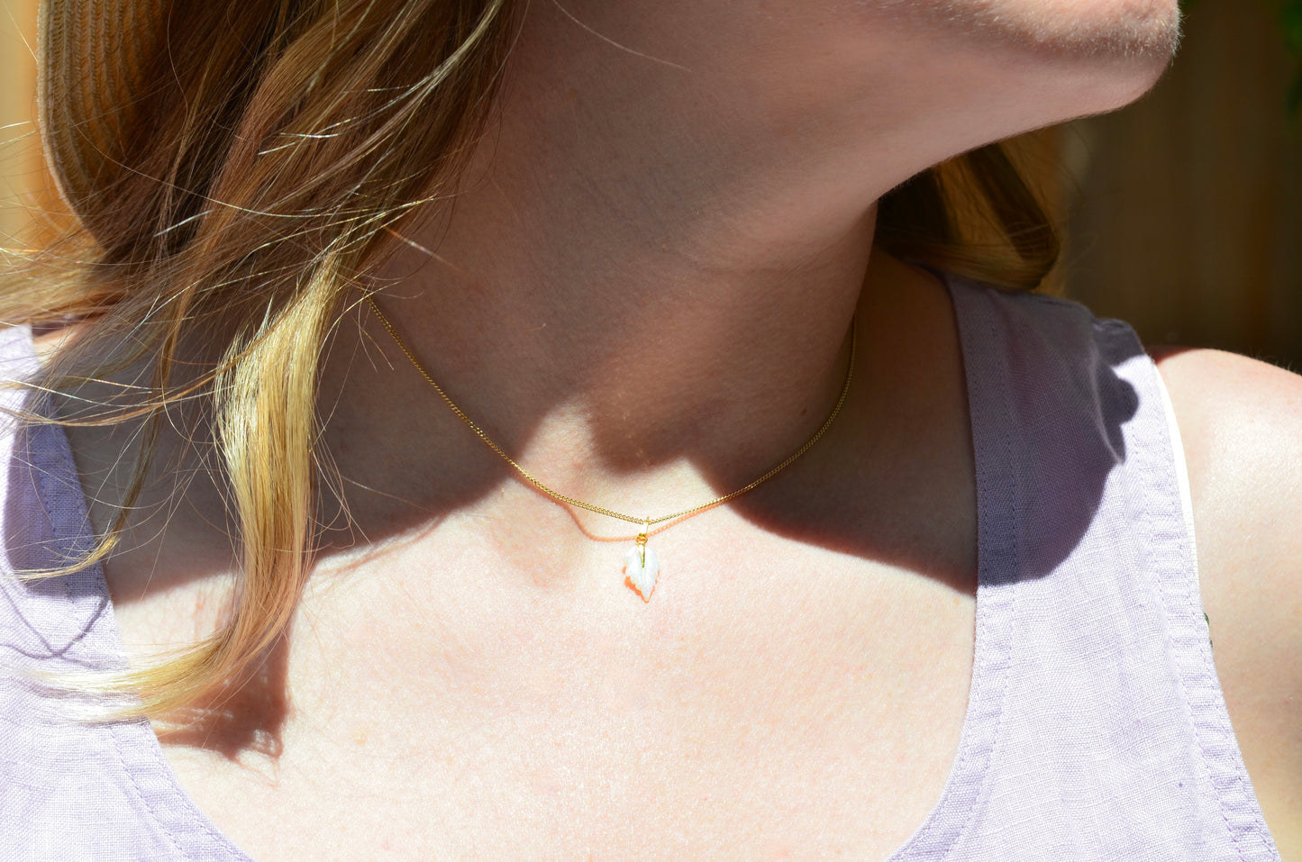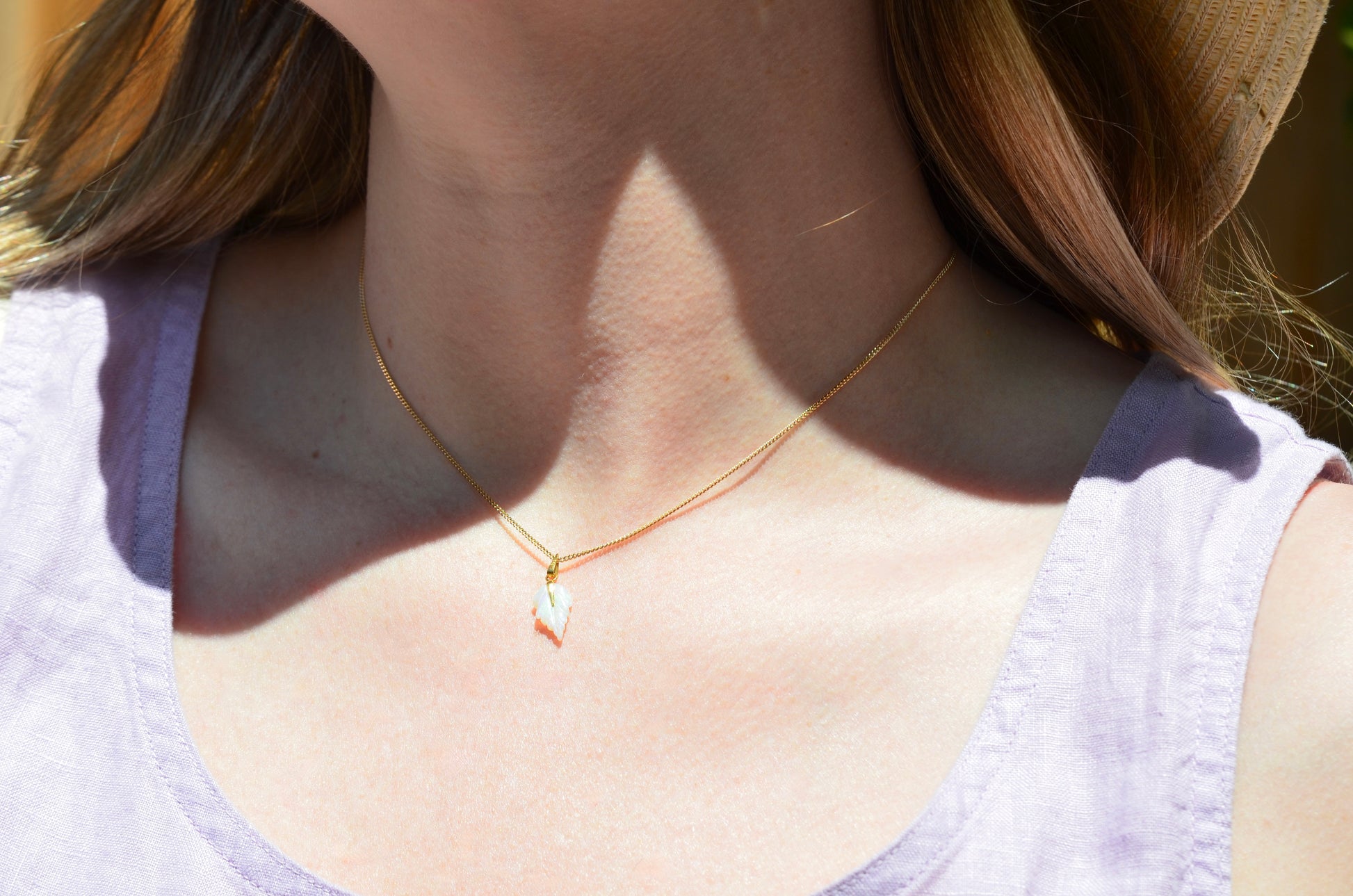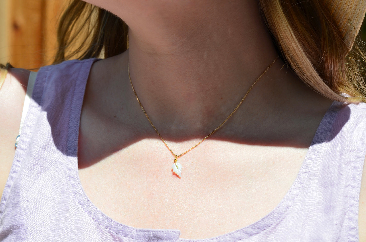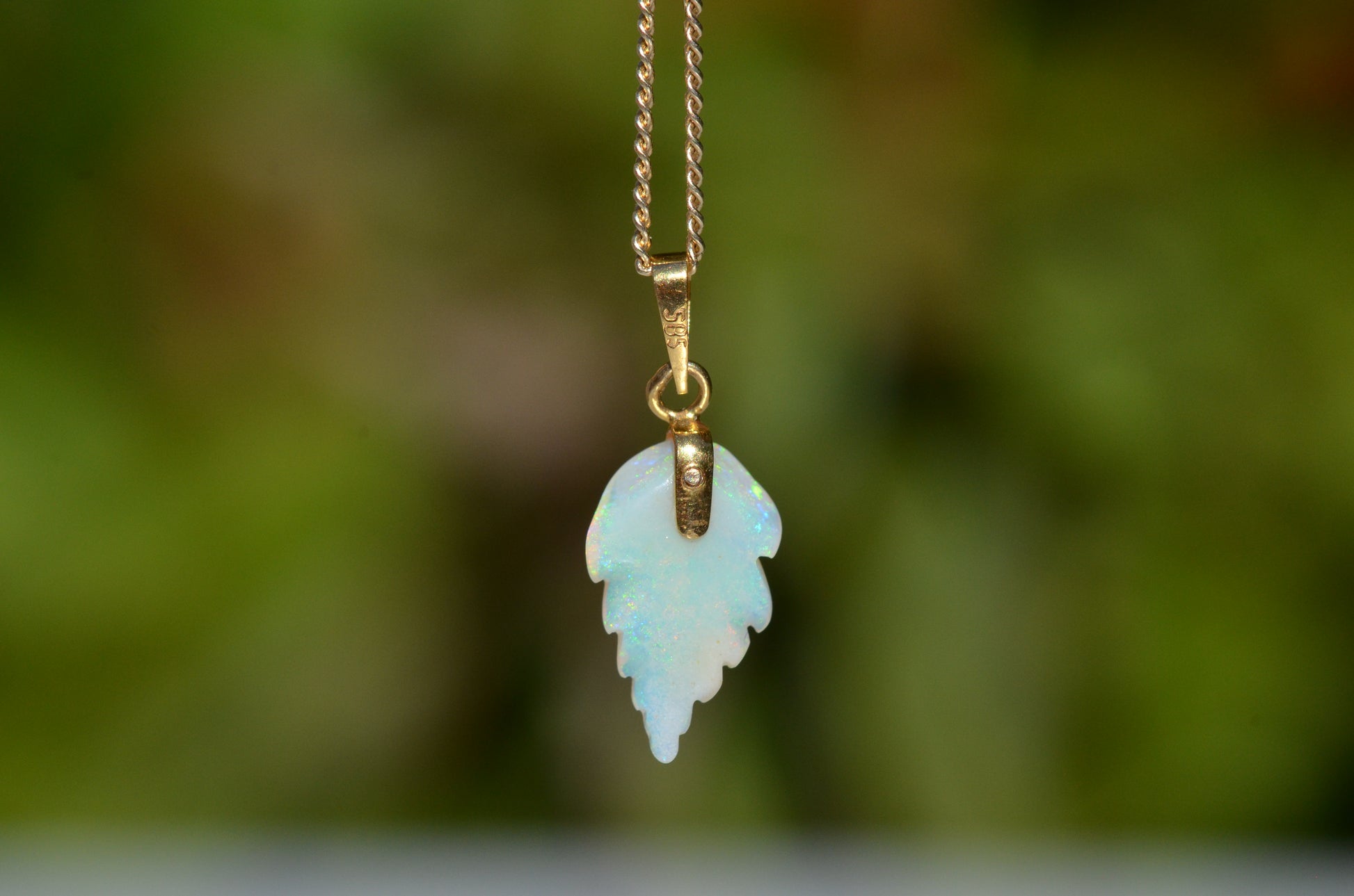 Dainty Vintage Carved Opal Leaf Pendant