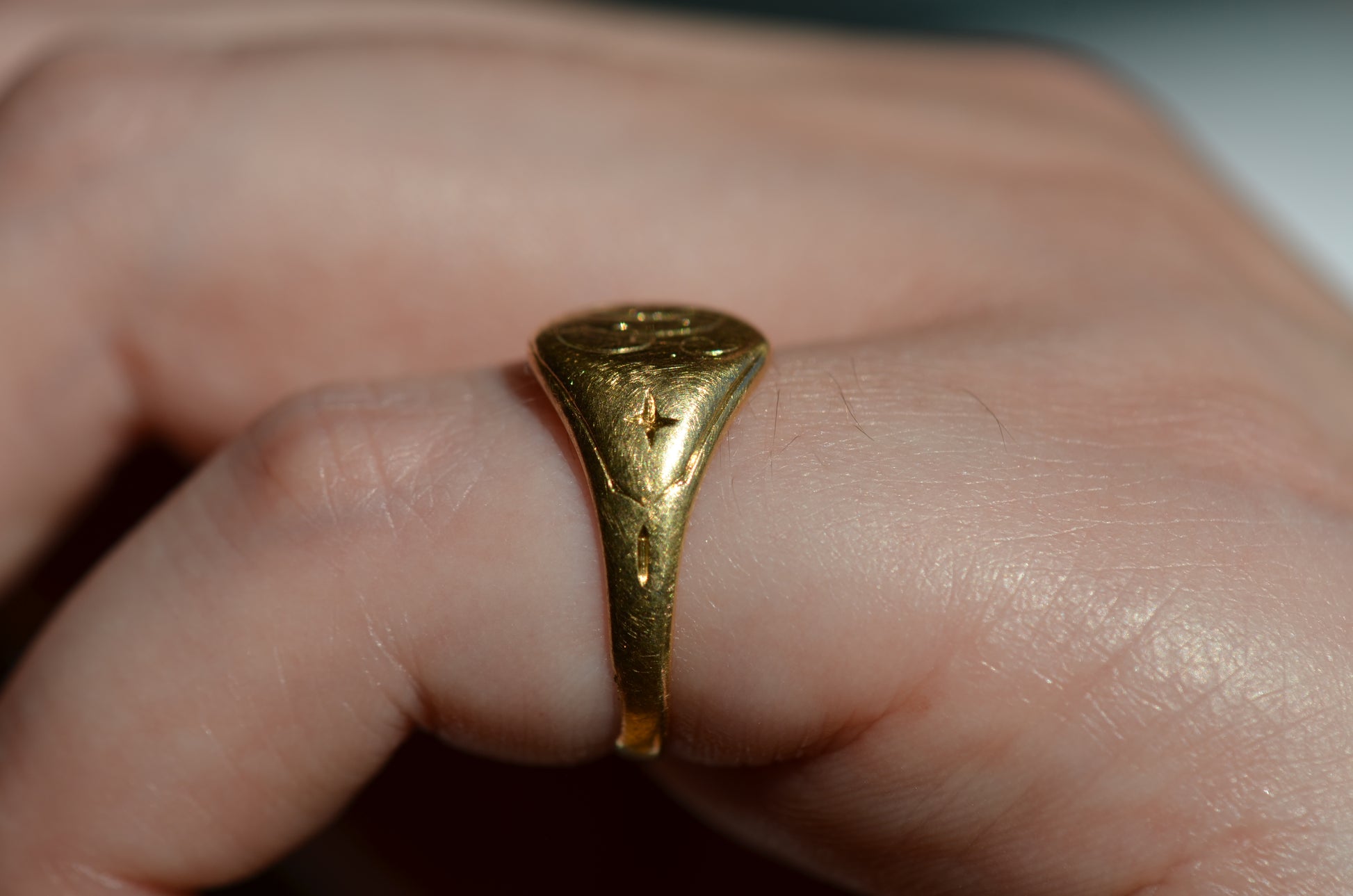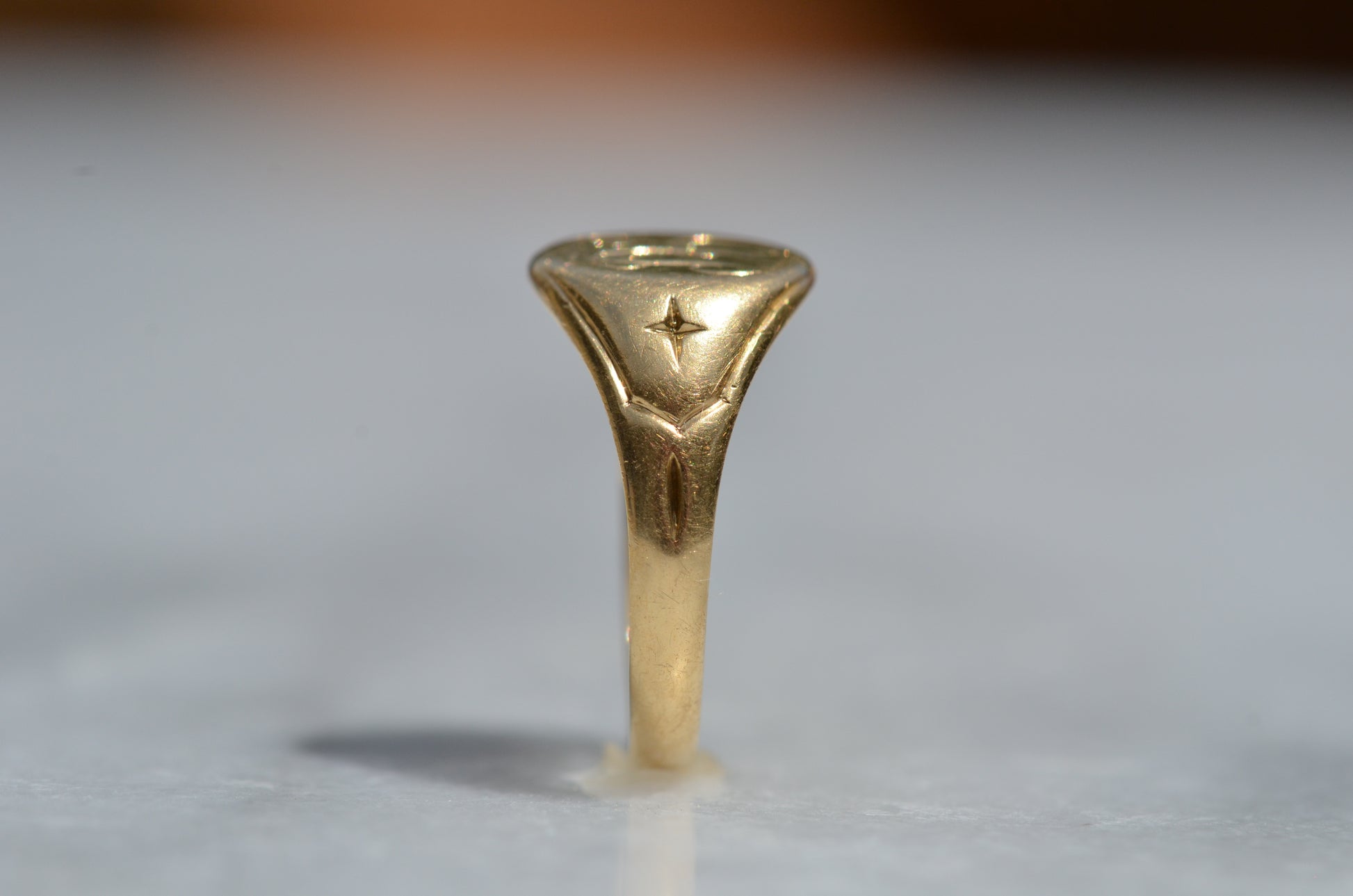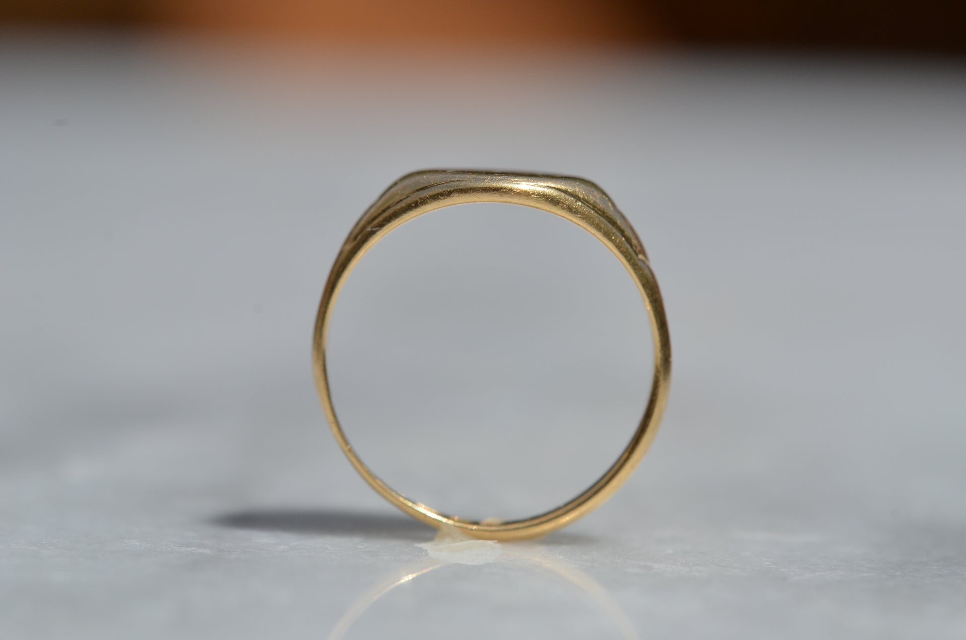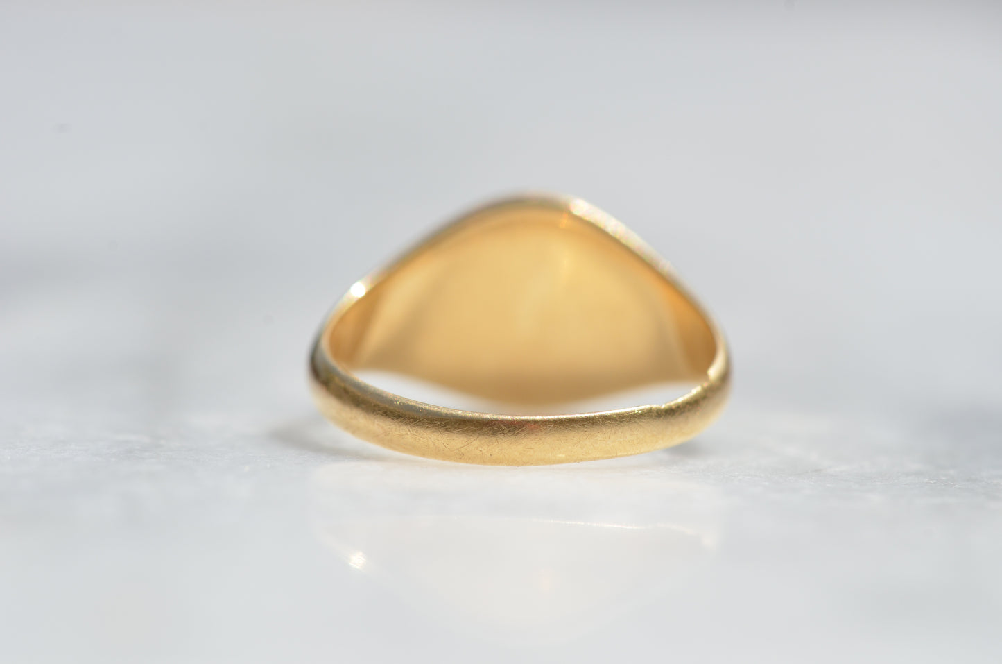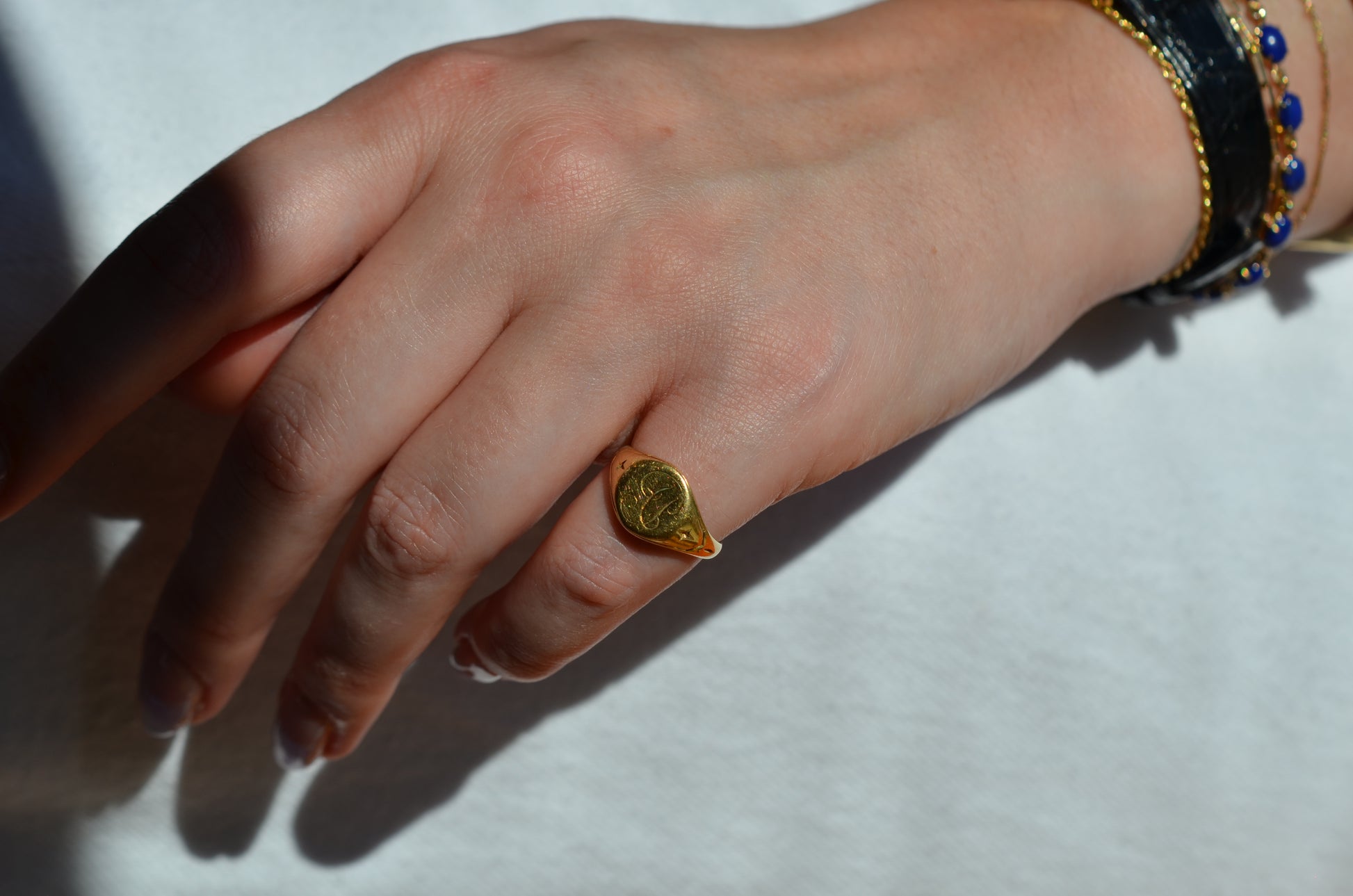 One of our favourite signet rings yet, we can’t get enough of the soft face, swirling script, and star-like details on this Edwardian beauty. There's such a special feeling in finding a preloved piece that already has letters on it that are meaningful to you, that we play pretty fast and loose - maybe it's the first or last initials of you and your lover, or your own in another order, or the initials of a loved one: no matter what, it will feel sentimental every time it catches your eye.