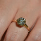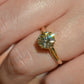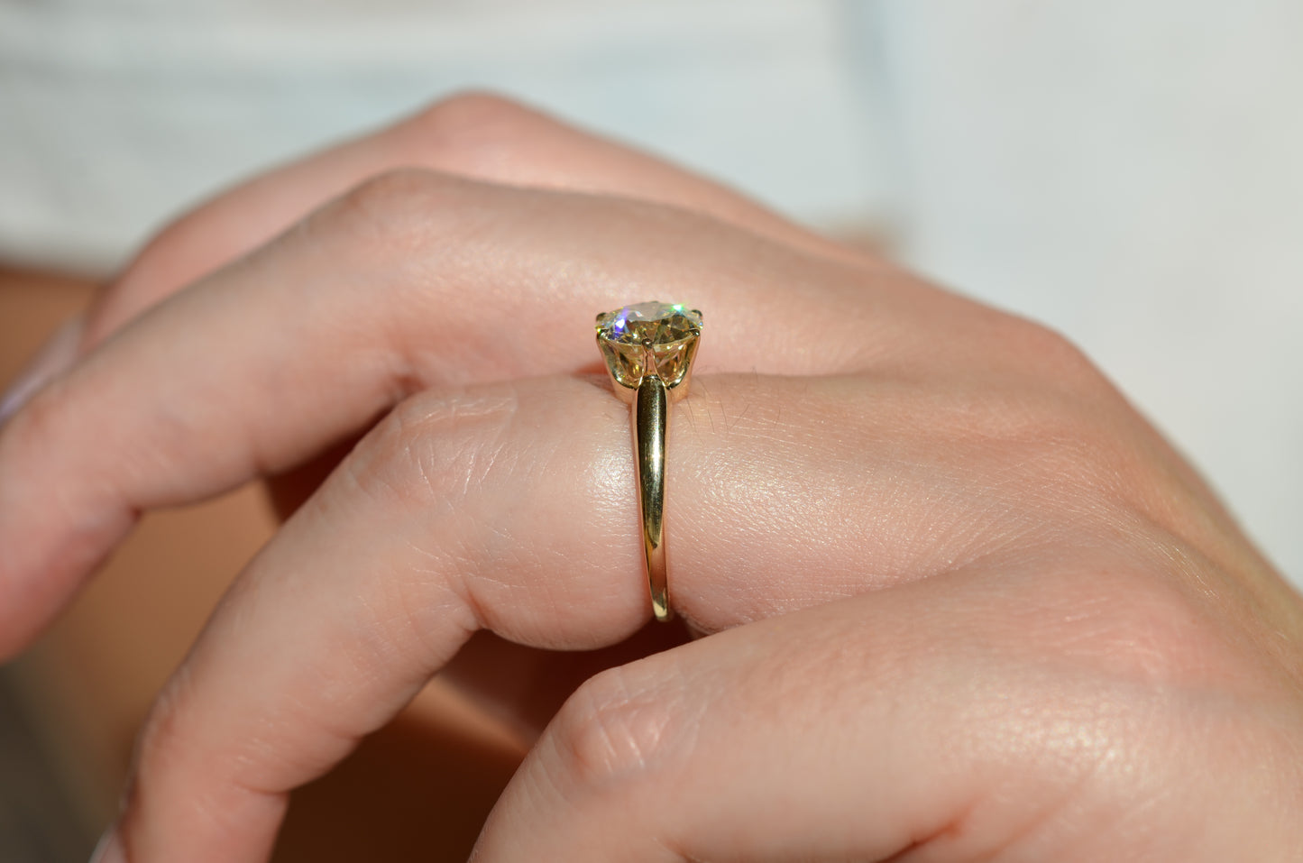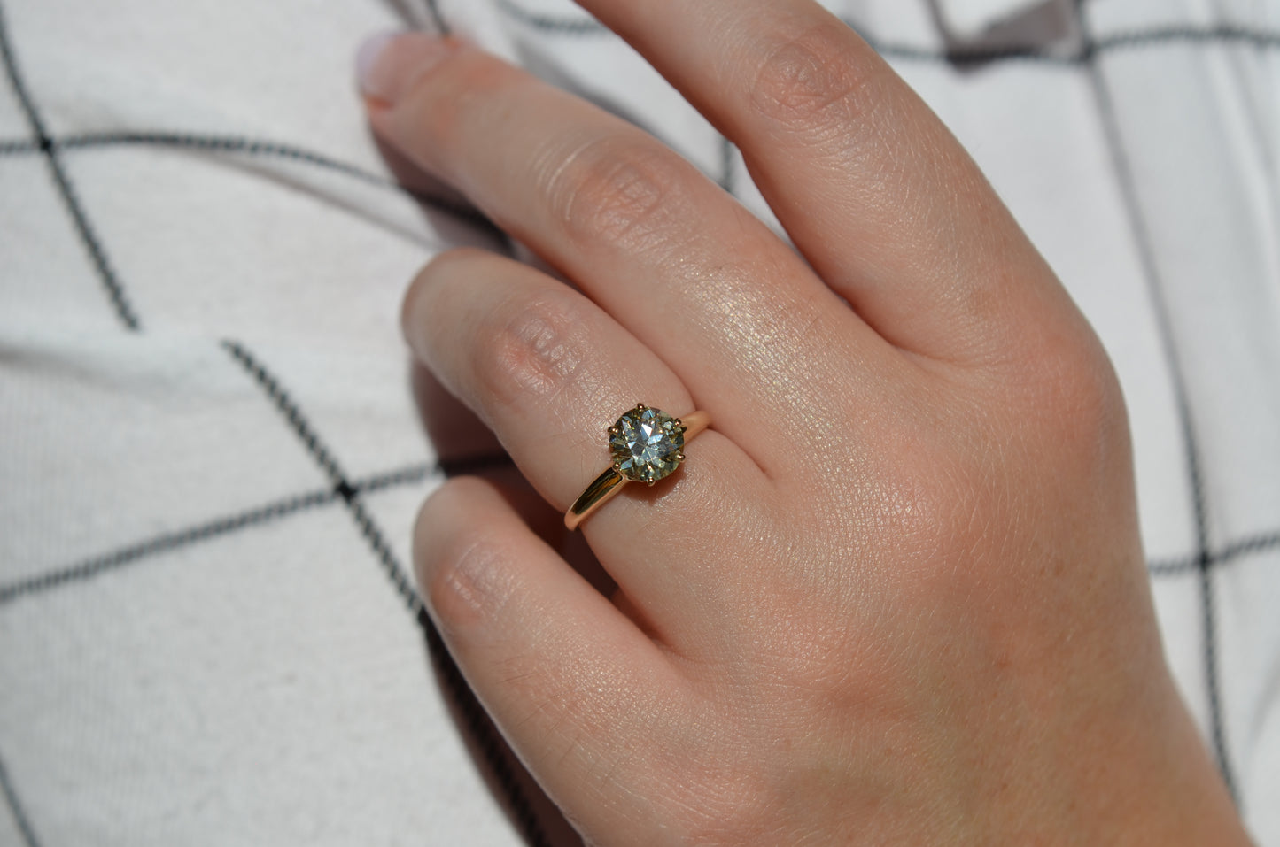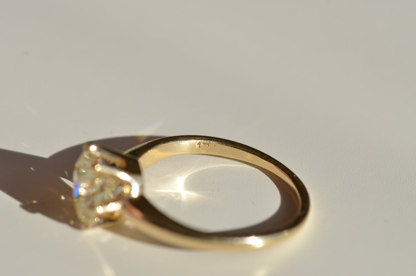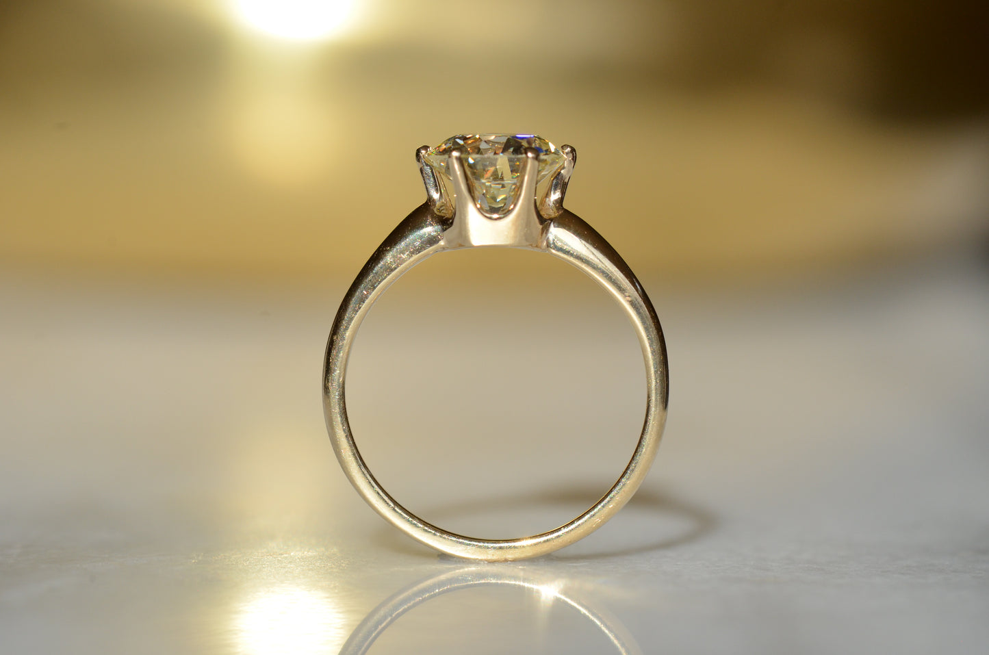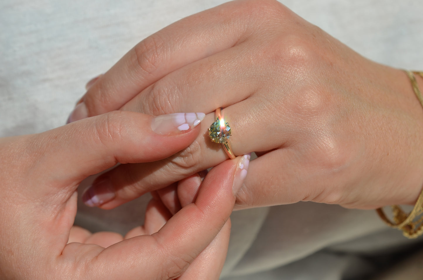 Chic, elegant, and crisply rendered, this stunning early mid-20th century ring captivates with a richly hued diamond in warm yellow gold. So named for its unique place in time and style between the old European and its most popular successor, the modern round brilliant, the transitional cut exhibits high symmetry and sees the chunkier facets and culet of the Euro tightening up toward their modern endpoint. A relic unique to about the 1920s-1940s, the stone exemplifies the ongoing attempts by diamond cutters to improve the visual appearance of stones for modern electric light as well as an increased use of diamond cutting machines starting in the early 20th century. So brief was the evolution of cuts and so varied were the results, the cut never received its own defined categorization from the (at the time newly-formed) GIA; the rare cuts now seem to confuse nearly as much as they enchant. This lovely ring offers - in shape and in history - a little bridge between antique charm and modern precision. The diamond's deep warm shade is most prevalent when viewed from the side; facing up it appears considerably whiter than its grade suggests - be sure to check instagram.com/st.eloi for video of this stunner in motion.