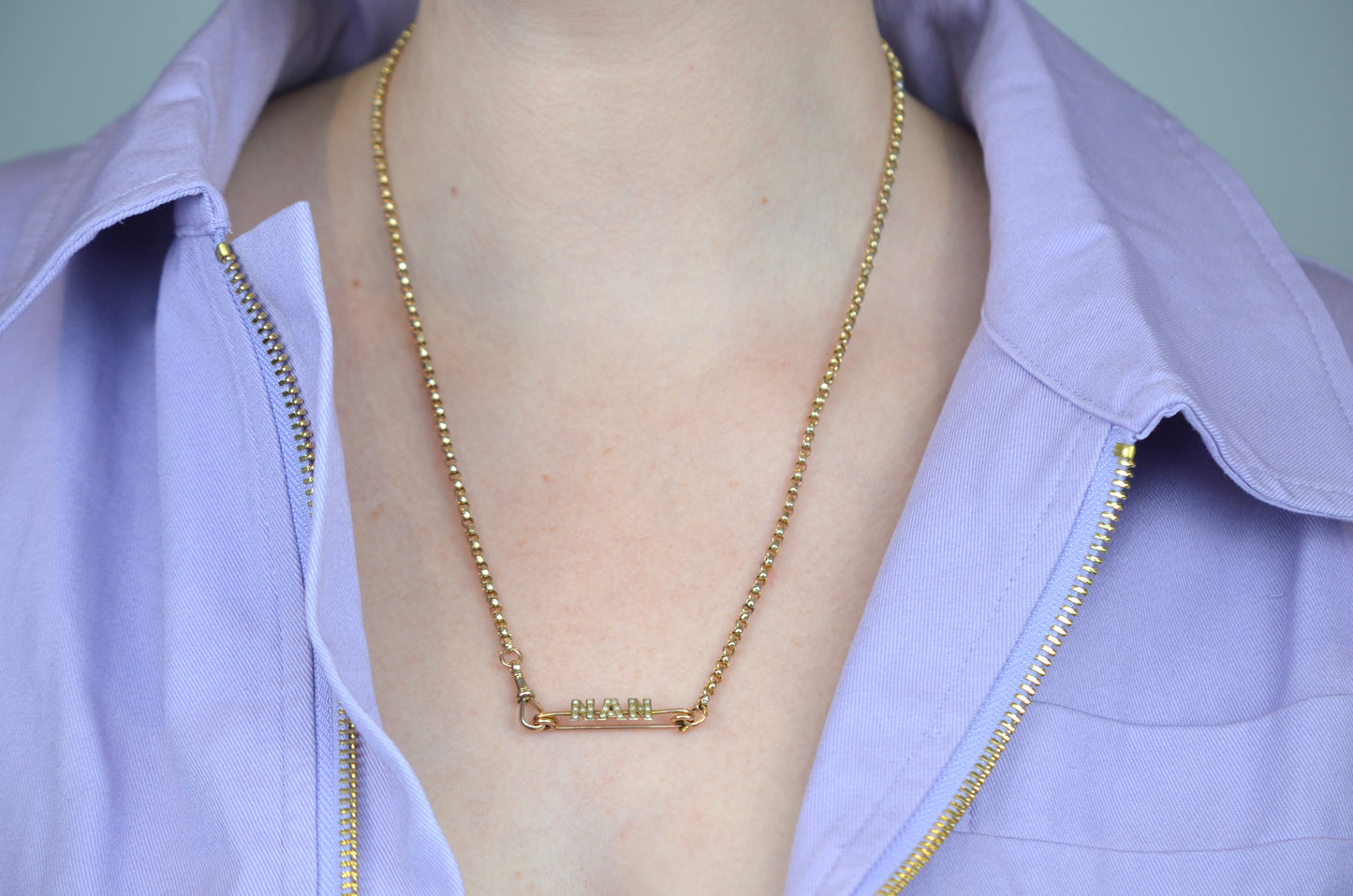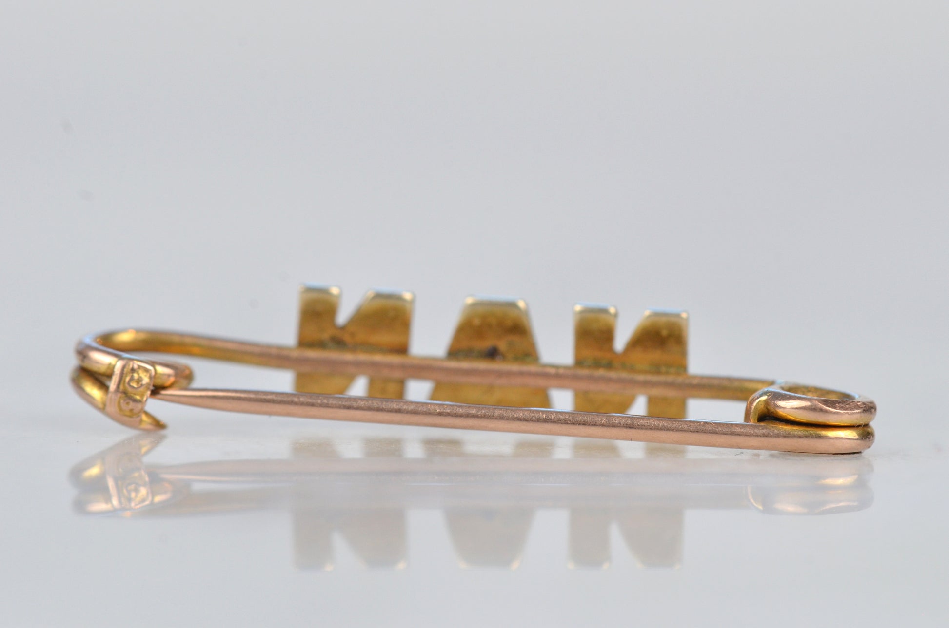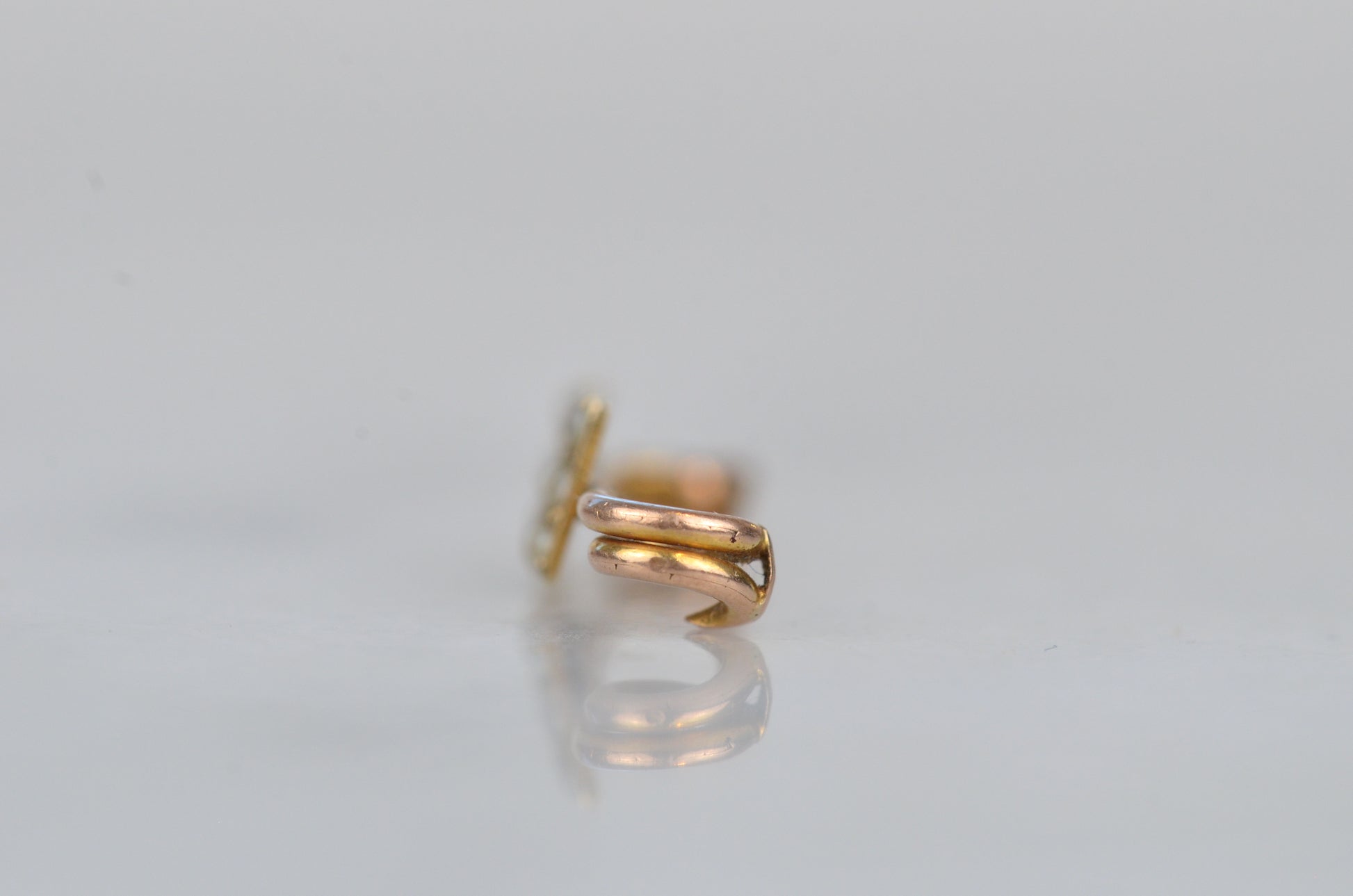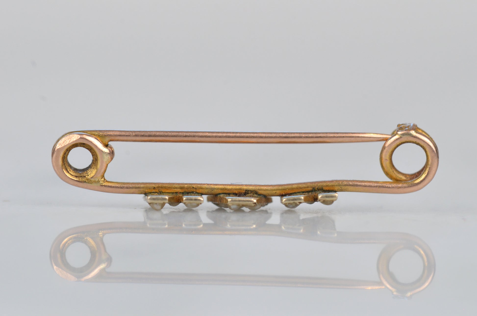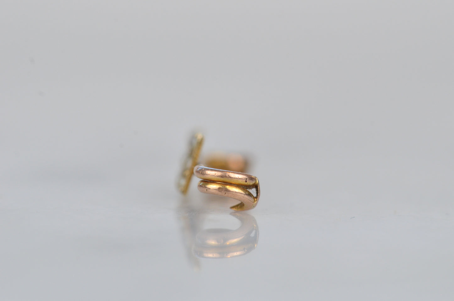 A small, perfect brooch that is utterly tender, with twenty-one seed pearls set in the gold letters NAN. We think this could be a perfect gift - for your favourite Nancy, someone with the initials N.A.N. or - fingers crossed someone thinks this is as cute as we do - a present to let your mum (or mum-in-law) know she's about to be a nan herself. The pin stem has good tension and rests securely braced against the gold tag, holding well and in ready-to-wear condition.