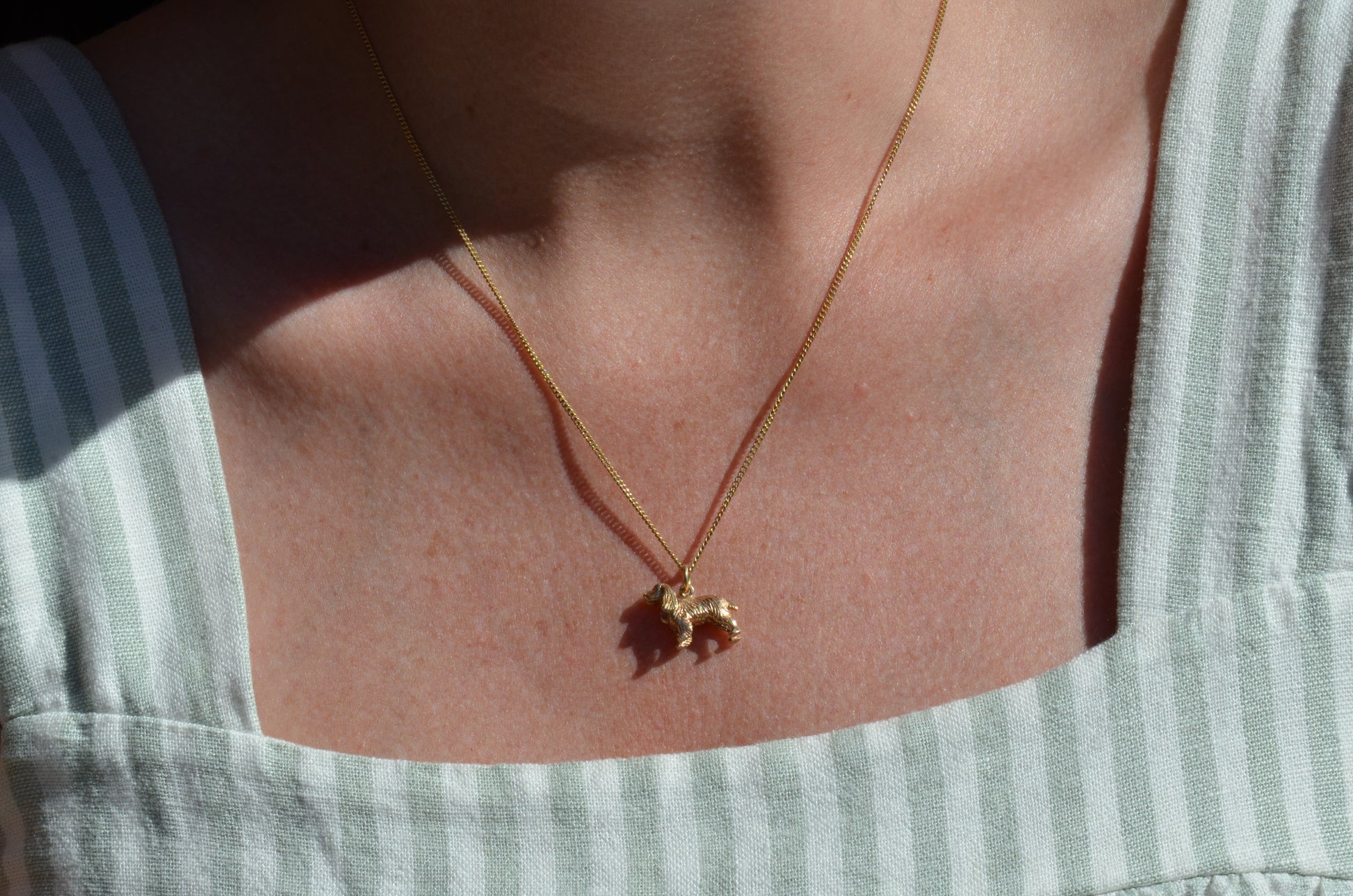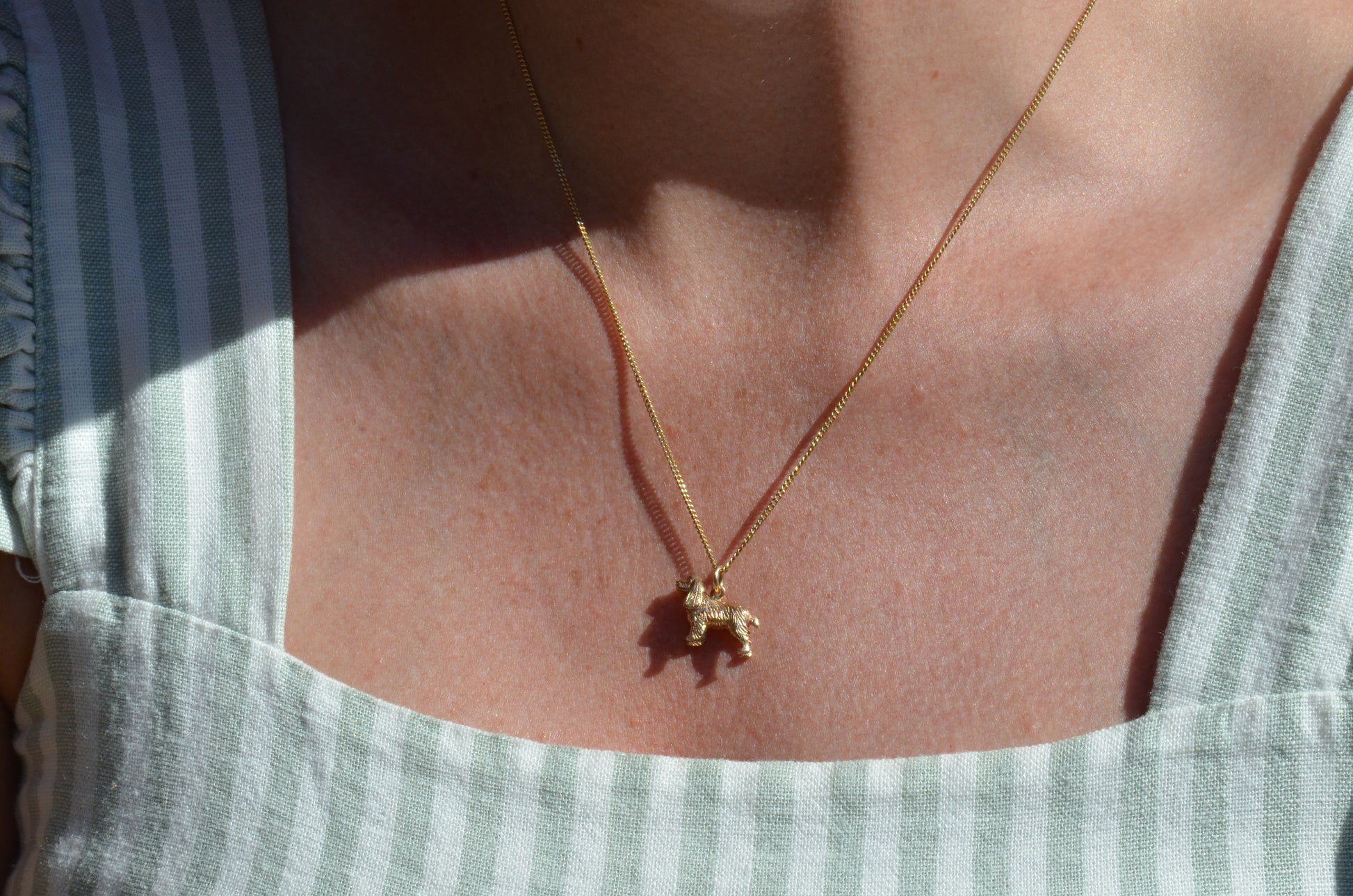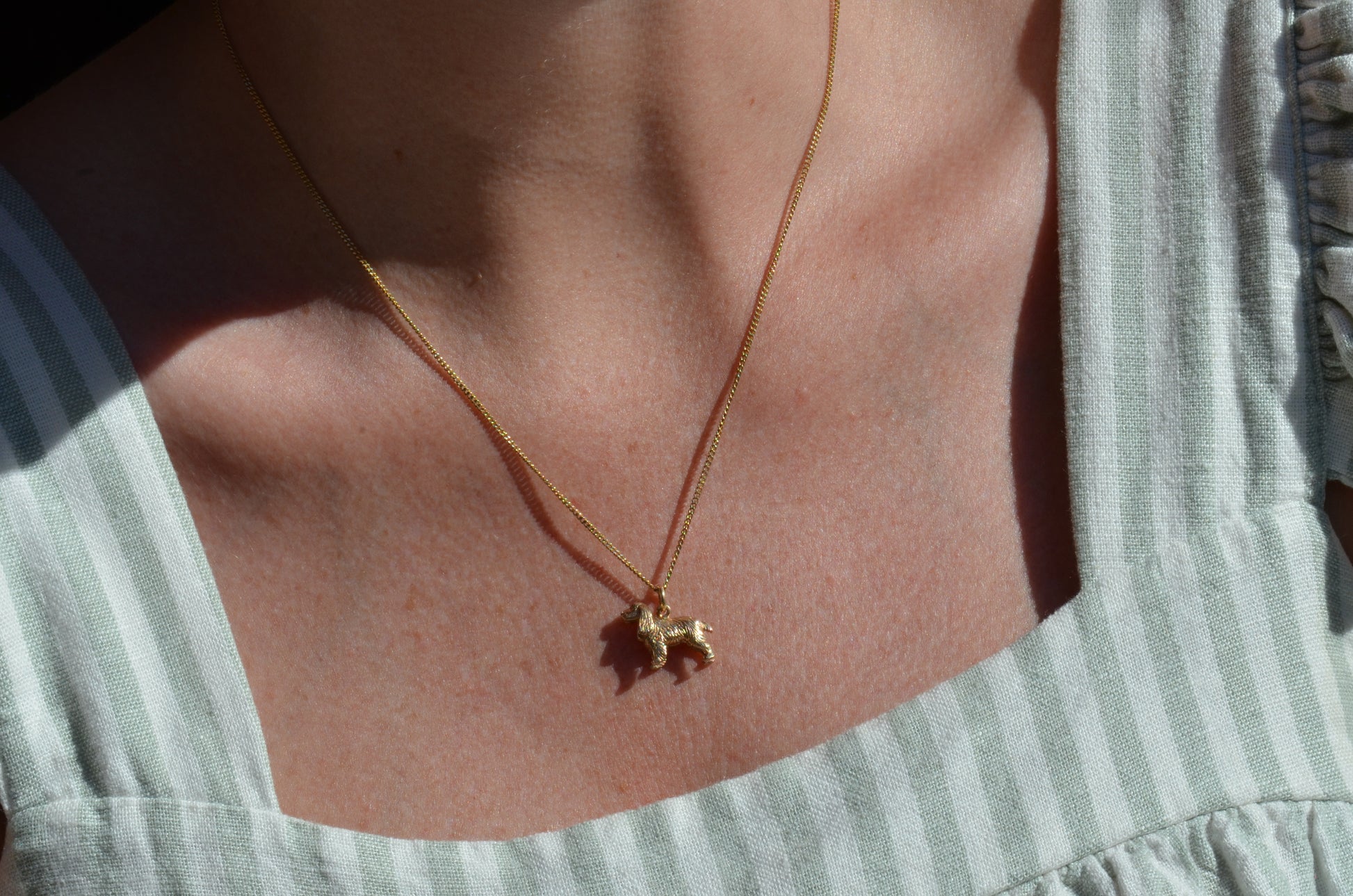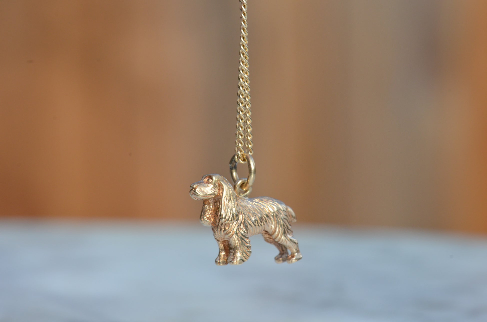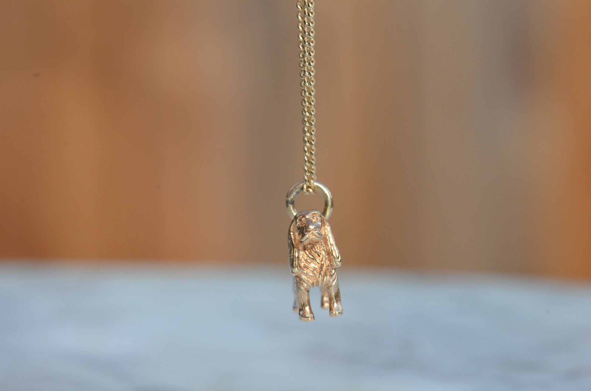 This is a beautifully detailed spaniel charm with a comforting weight. Dogs have been used for thousands of years as a motif to connote loyalty and integrity. The perfect piece to commemorate your best friend.