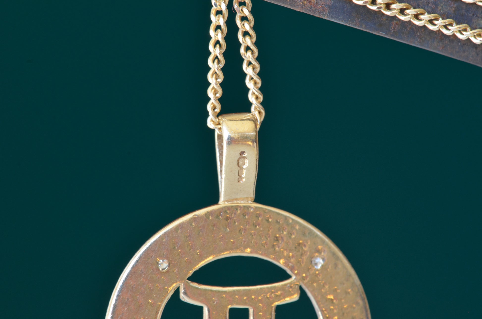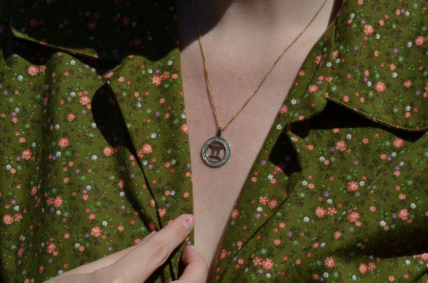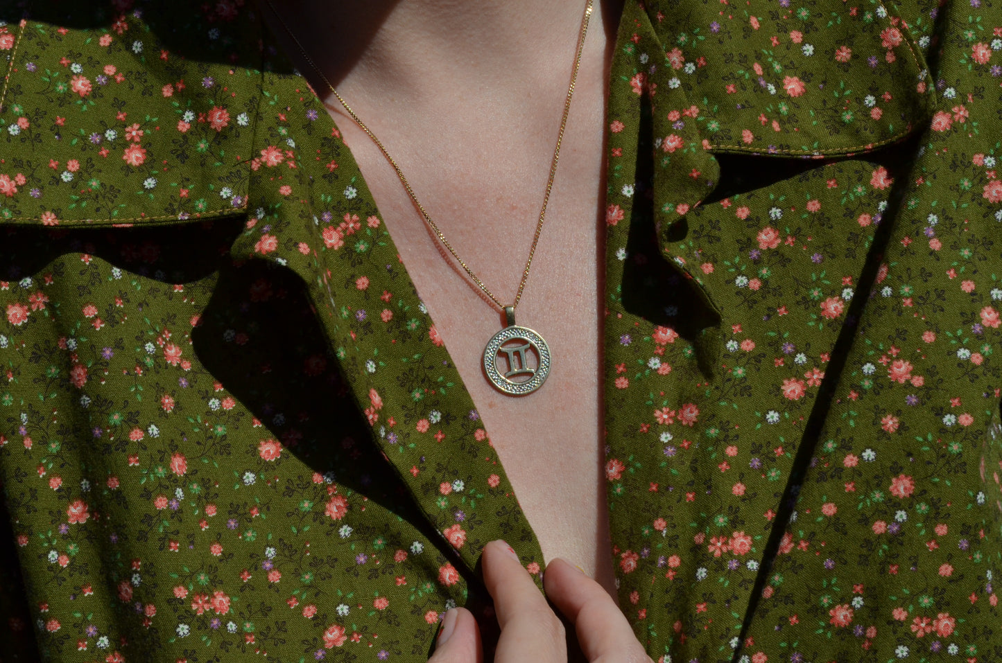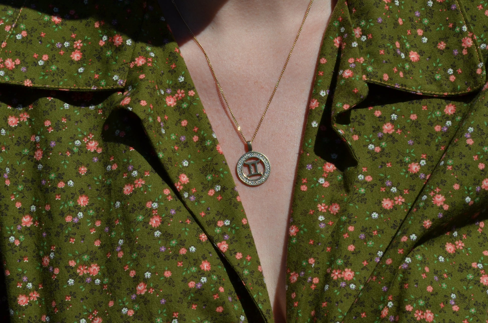 No one has ever claimed a Gemini is subtle, so naturally this medallion takes the classic astrological symbol and cranks it up a notch with two-tone gold and a balanced quartet of wee diamonds in a textured finish to catch the light.