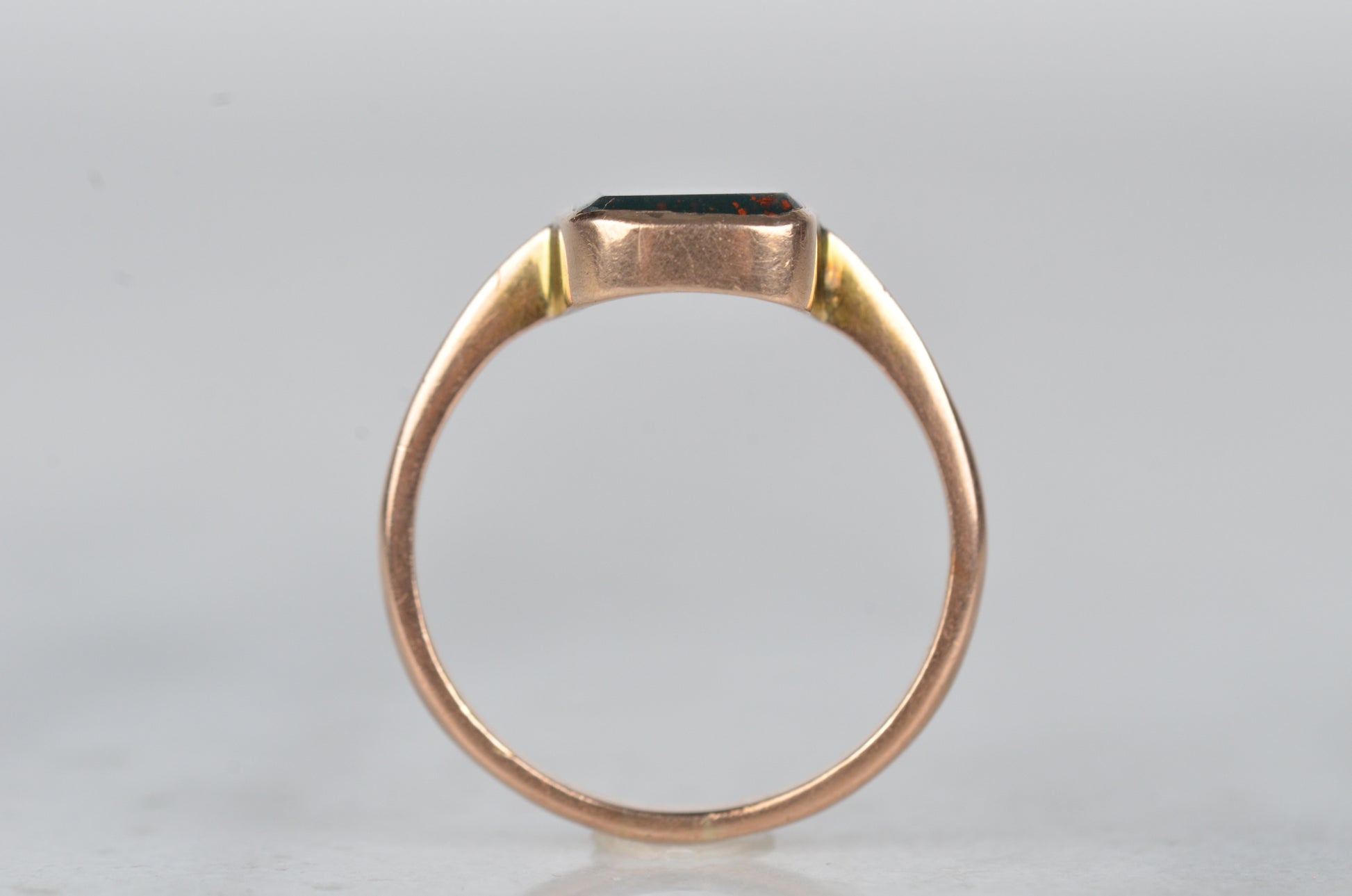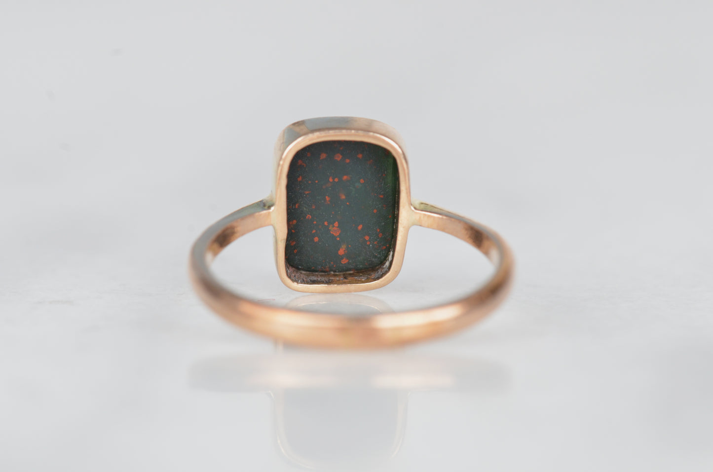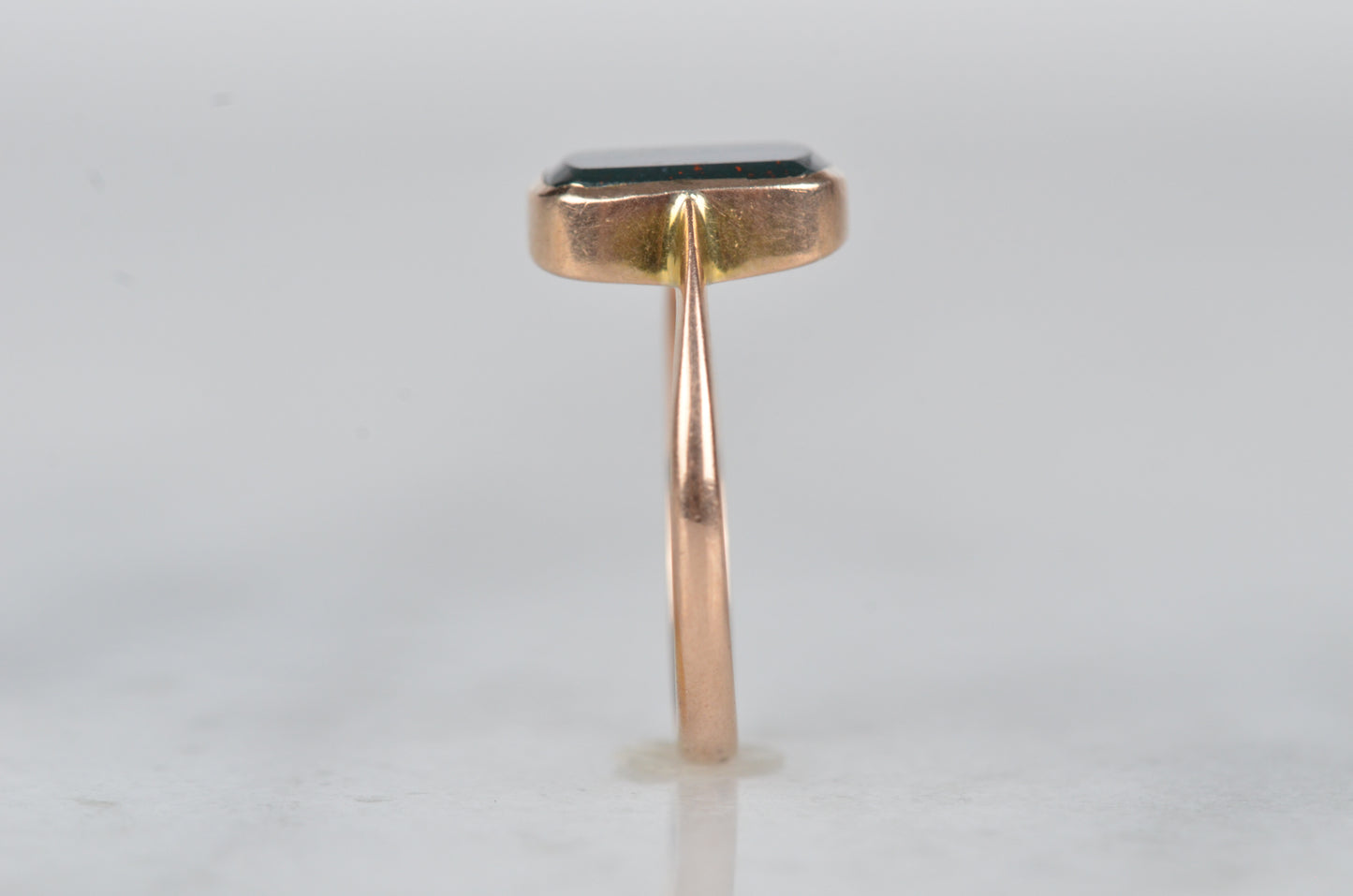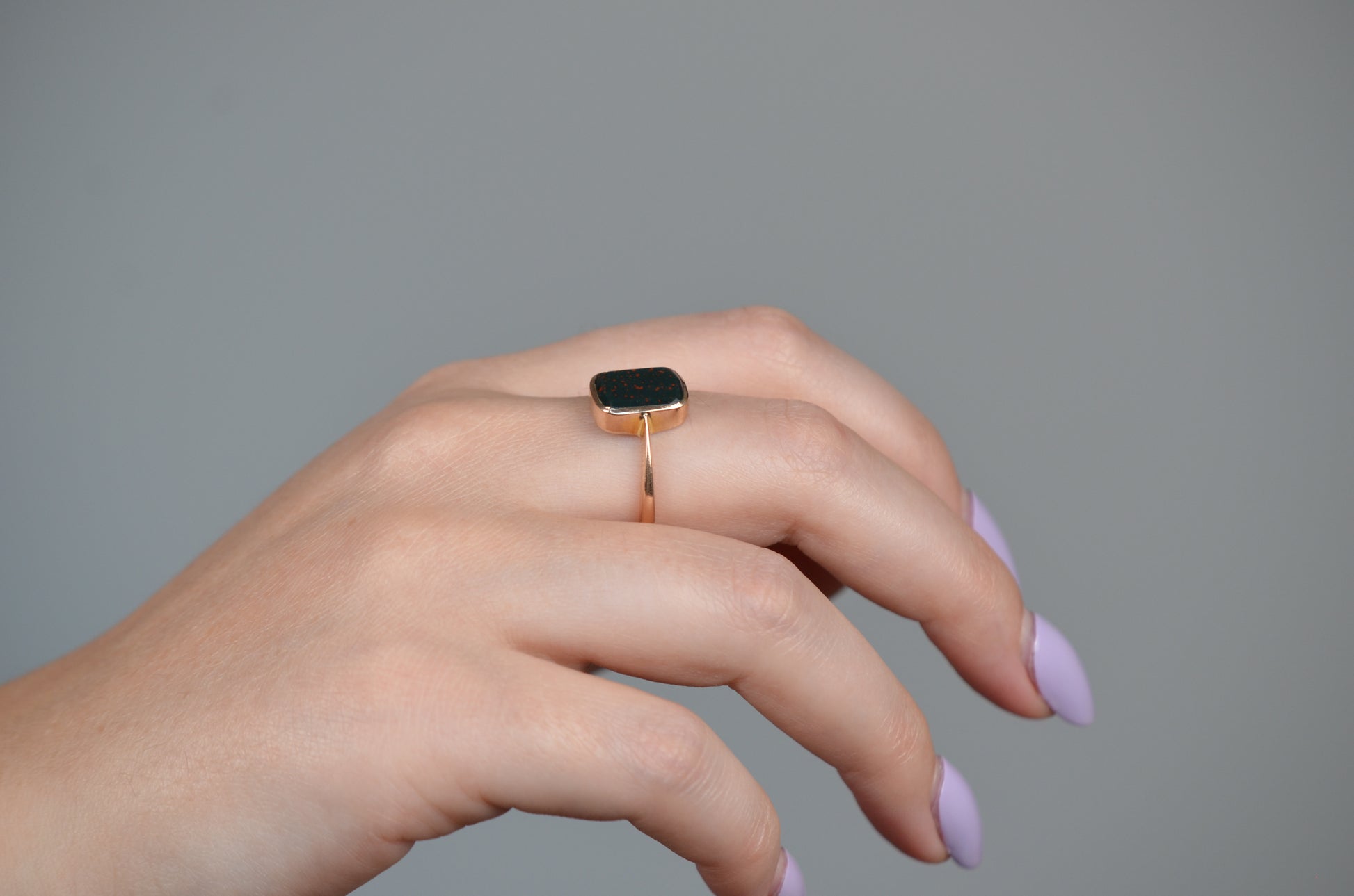 Rich and moody, we love the red-flecked field of inky green that makes bloodstone so unique and mysterious. In this Victorian-inspired ring, the stone takes centre stage in a simple bezel setting with a plain band that pinches at the shoulders to draw the eye further in. Bloodstone, an alternate birthstone for March, has been worn for amuletic purposes (believed to have healing powers, especially for open wounds) for thousands of years across many cultures. While we can't vouch for those particular virtues, we're all in on the dramatic look.