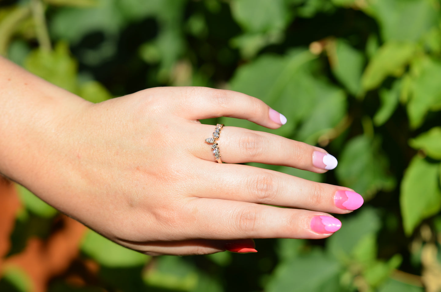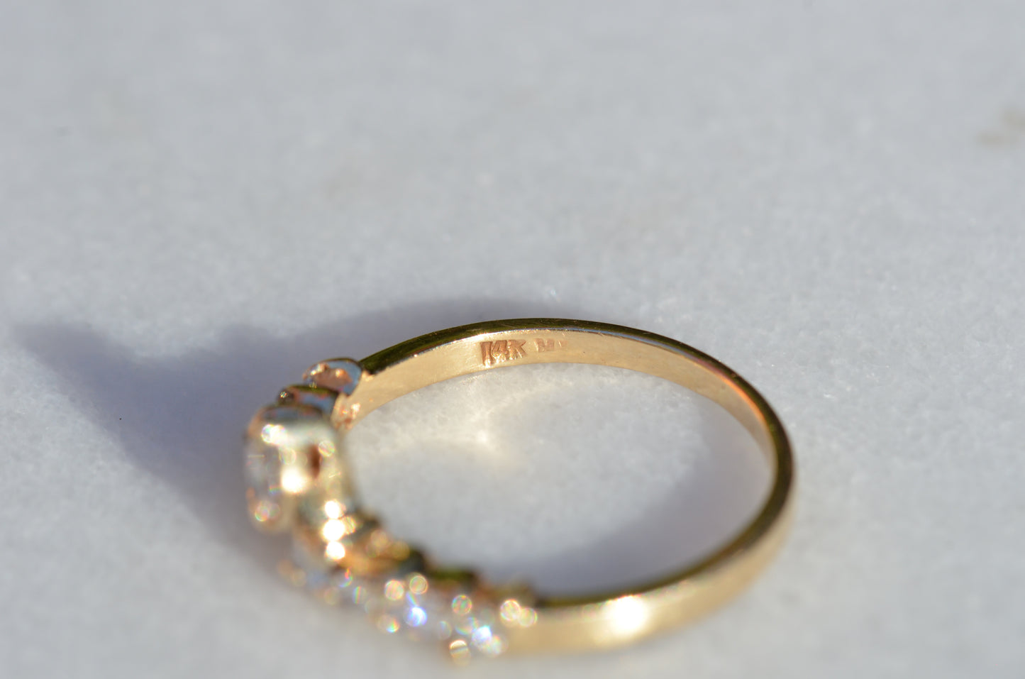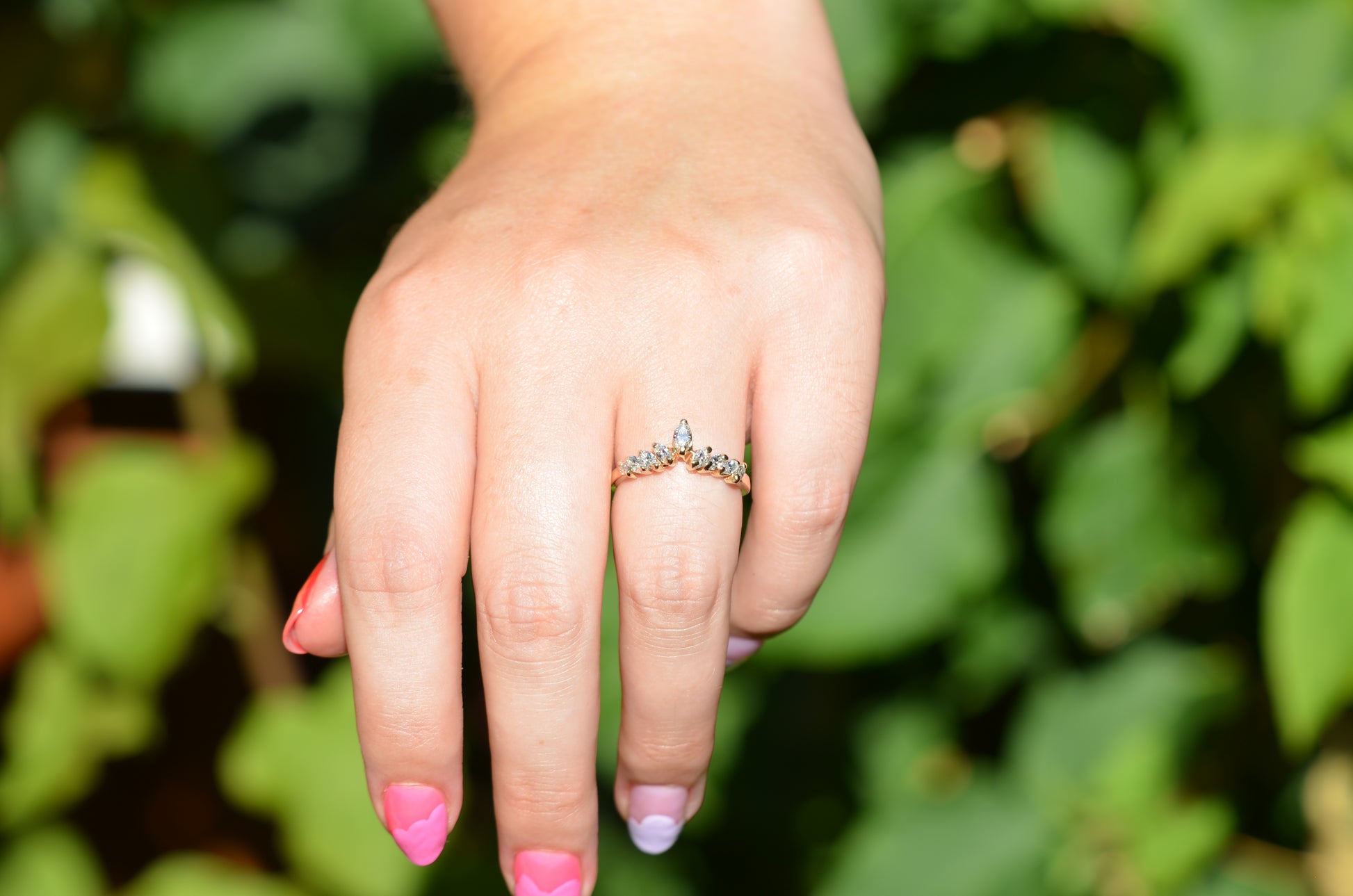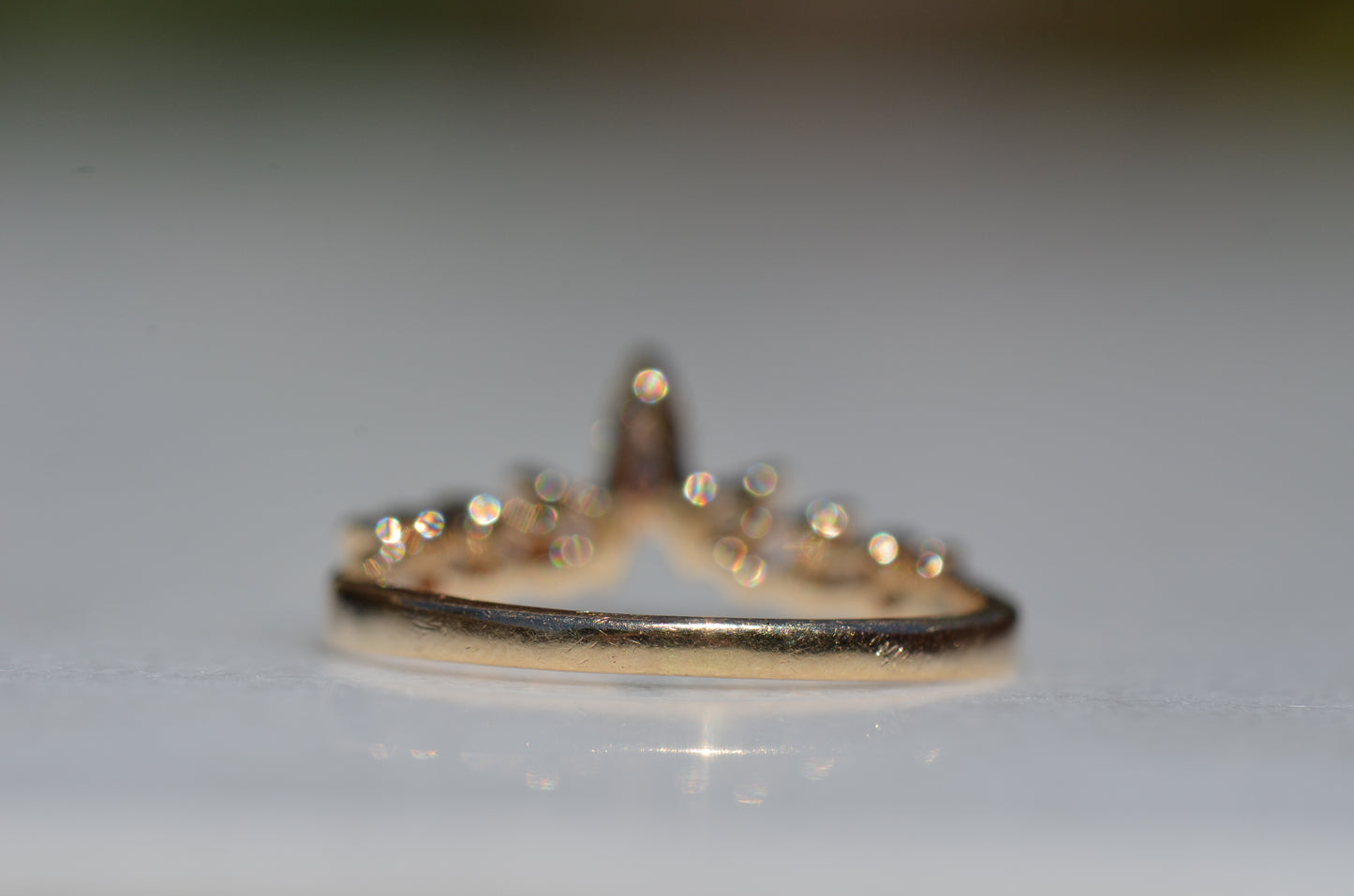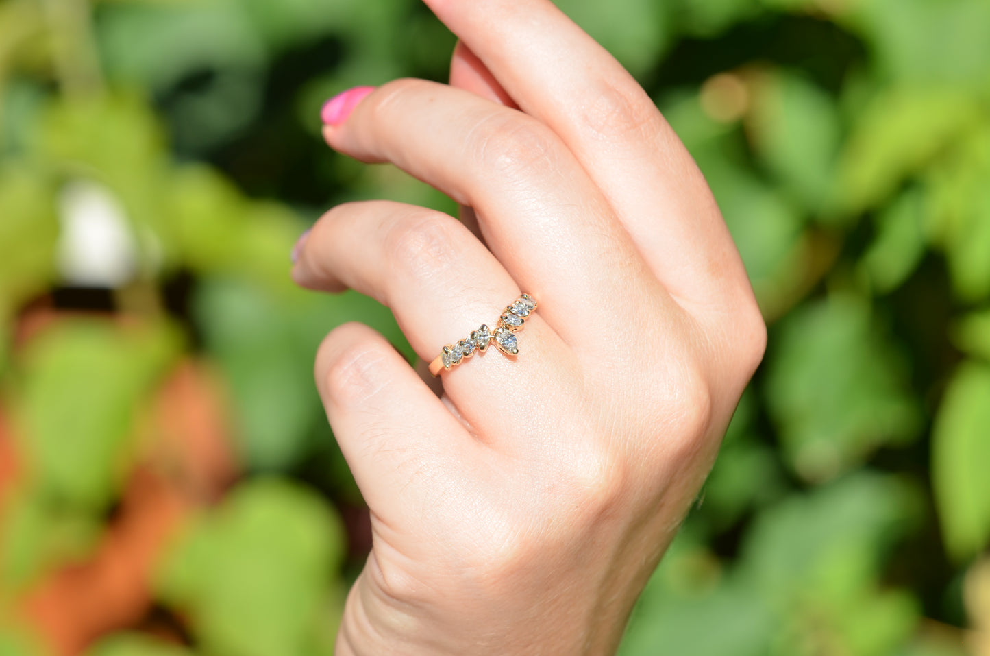 Positively striking, this dipped (or "contour") band showcases a spray of marquise-cut diamonds radiating out from the centre, allowing it to serve as the perfect enhancement to another ring - though not with such a big dip as to make it look as though something is missing if worn alone. Perfectly styled solo, below another ring as a dramatic base or above another as a crown, we love the versatility of this vintage piece.