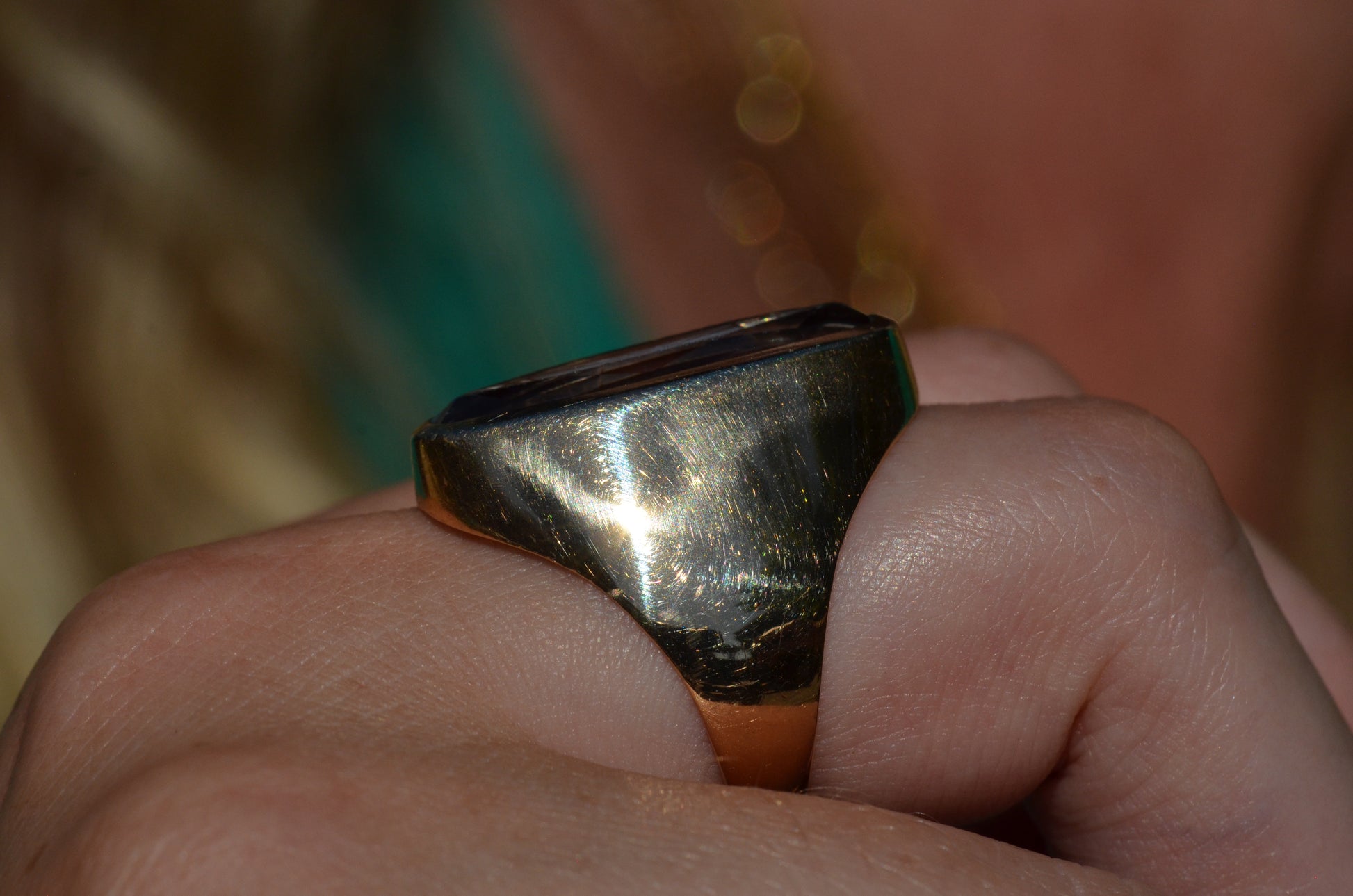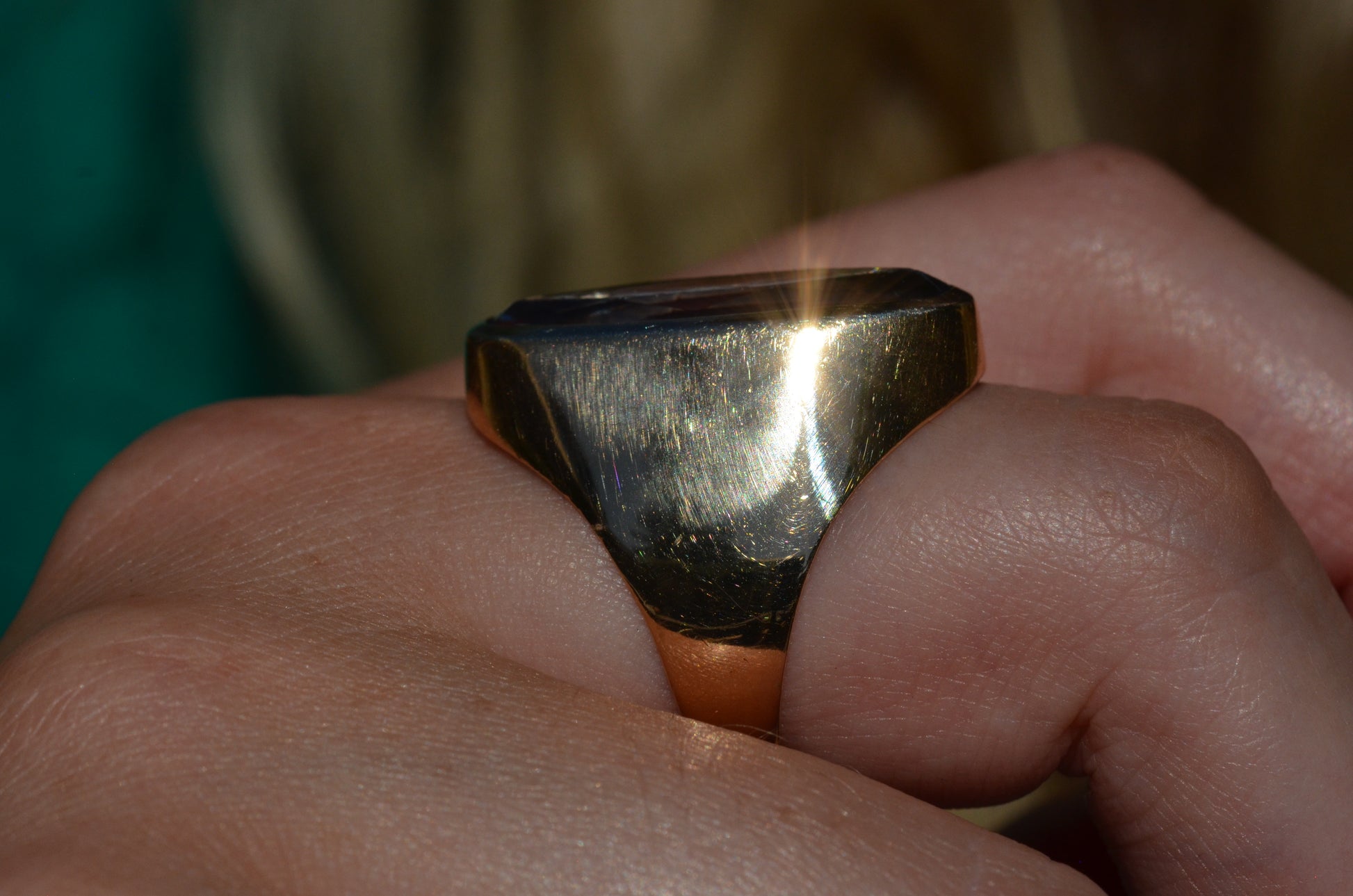 • Face of ring measures 25.4mm wide, 10.3mm across, with a rise of 5.9; back of band measures 3.4mm wide and 0.6mm thick