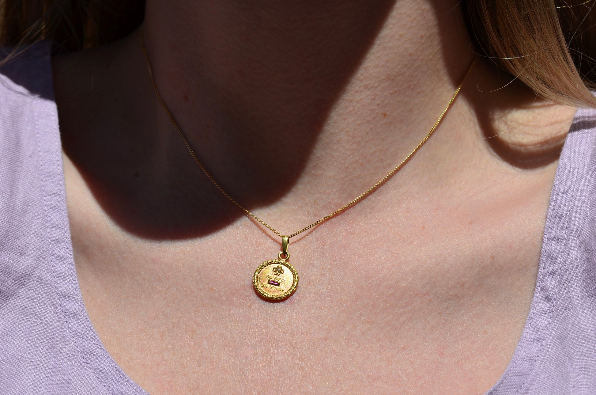 These love tokens are widely reproduced and imitated, but the quality of the Maison Augis pendants (always die struck and never cast) have made them a very collectible piece, even after over 100 years of production and many style variations.
