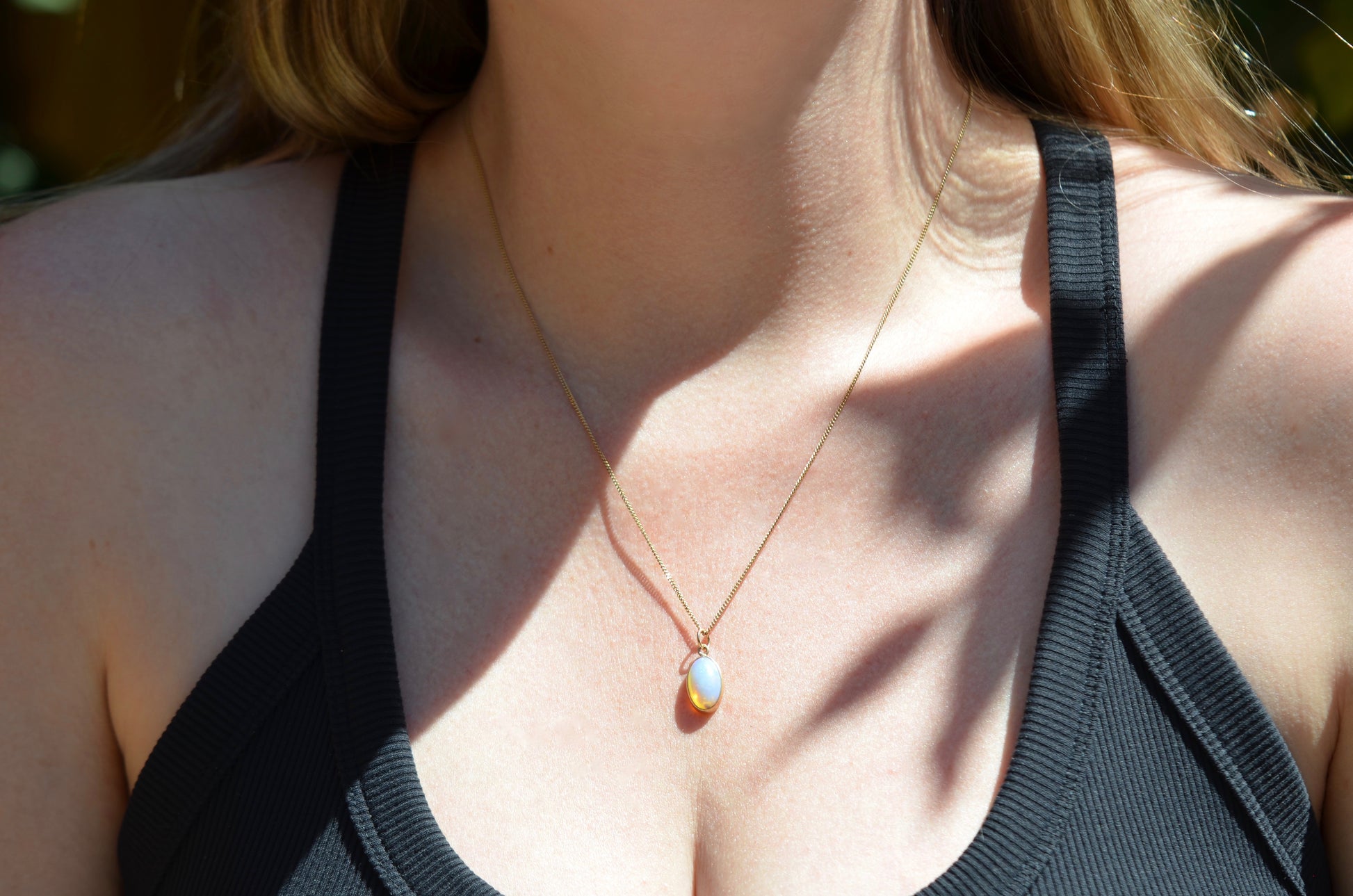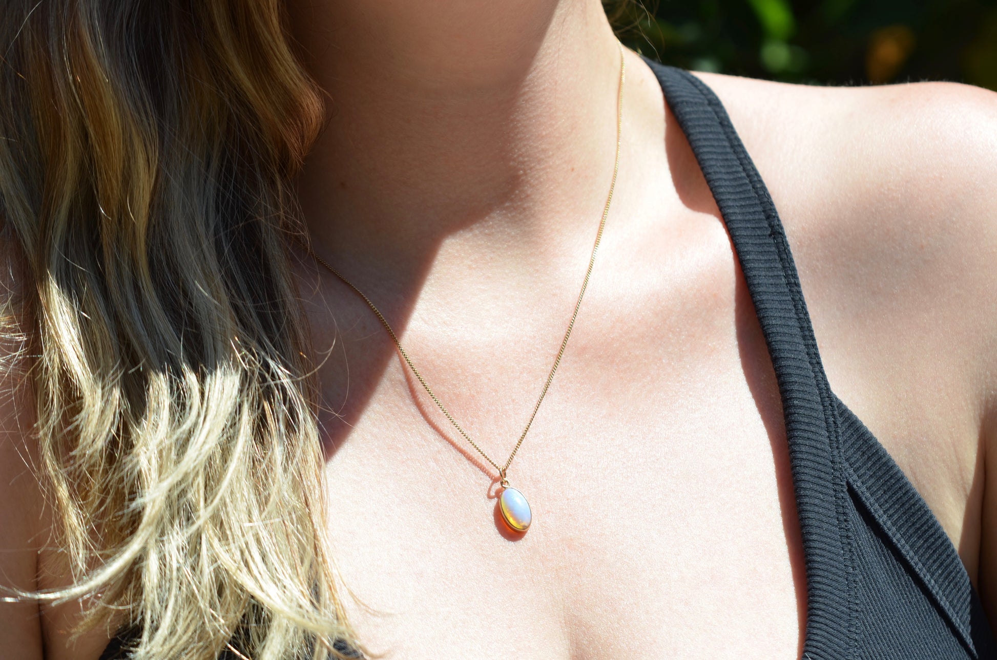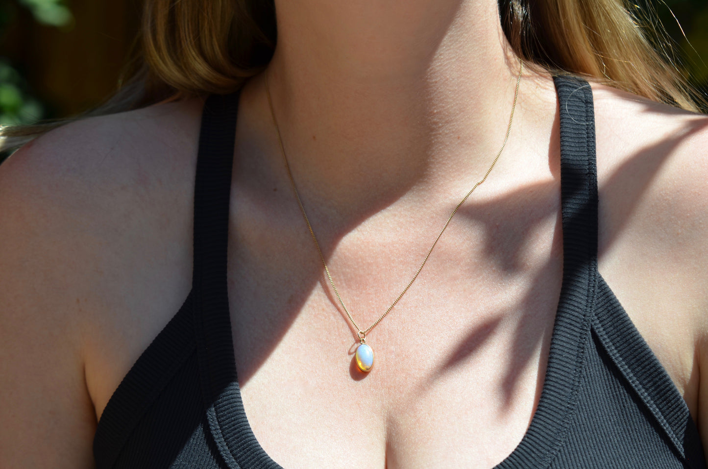 A lovely little opal wrapped in gold, this pendant feels at once otherworldly from the stone and yet completely minimal in design. With a small section of the gemstone's rock matrix peaking through from the rear, this stone has depth to its magic play of colour thanks to its more transparent body. Darling alone or in a small charm cluster (though keep in mind a mess of charms risk scratching the stone's surface).