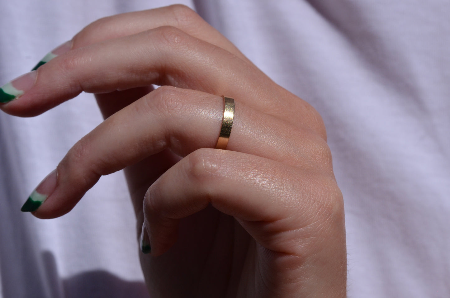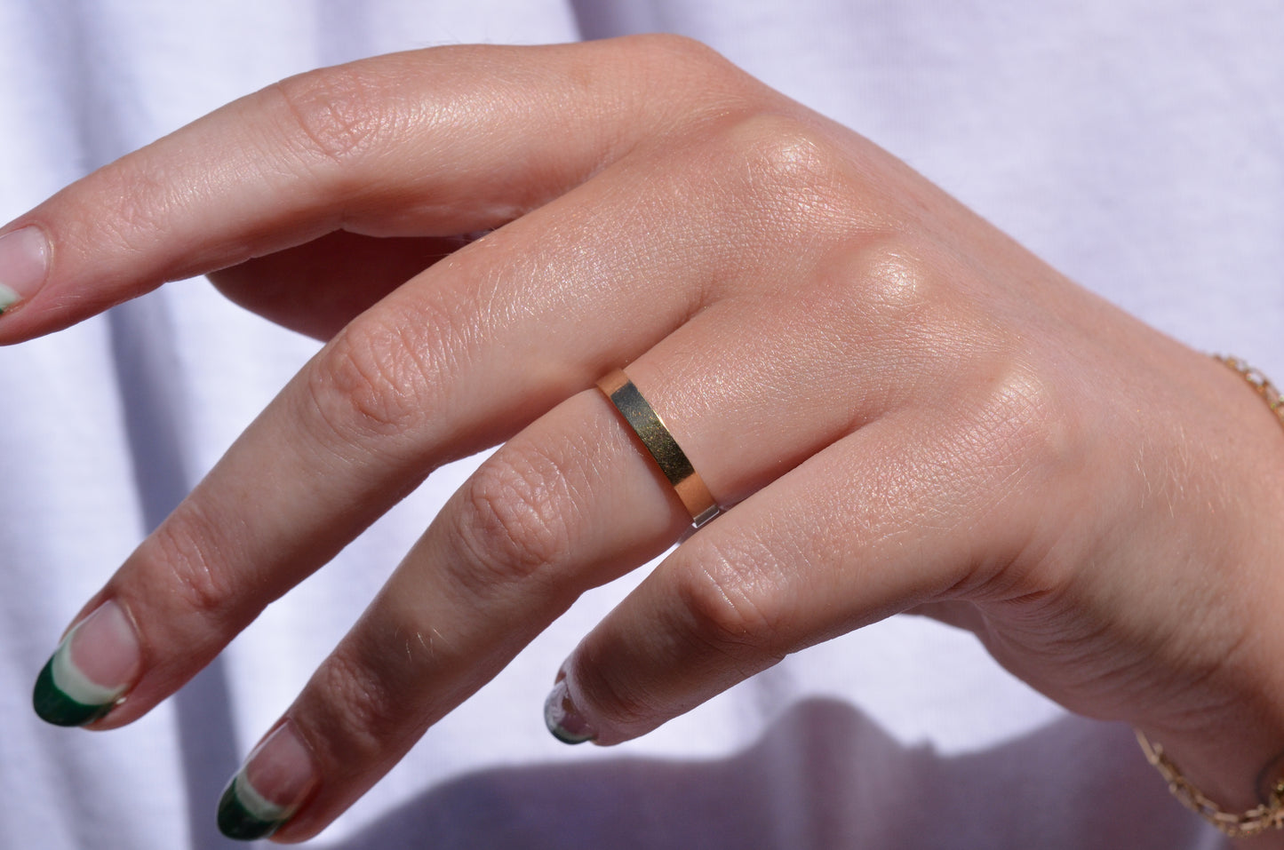 At a perfect 3mm width and barely there thickness, this smooth, flat band is an ideal piece to slip on and never take off - you'll love the way the gentle patina of this 35 year old band lends an understated softness and ease to anything you pair with it.
