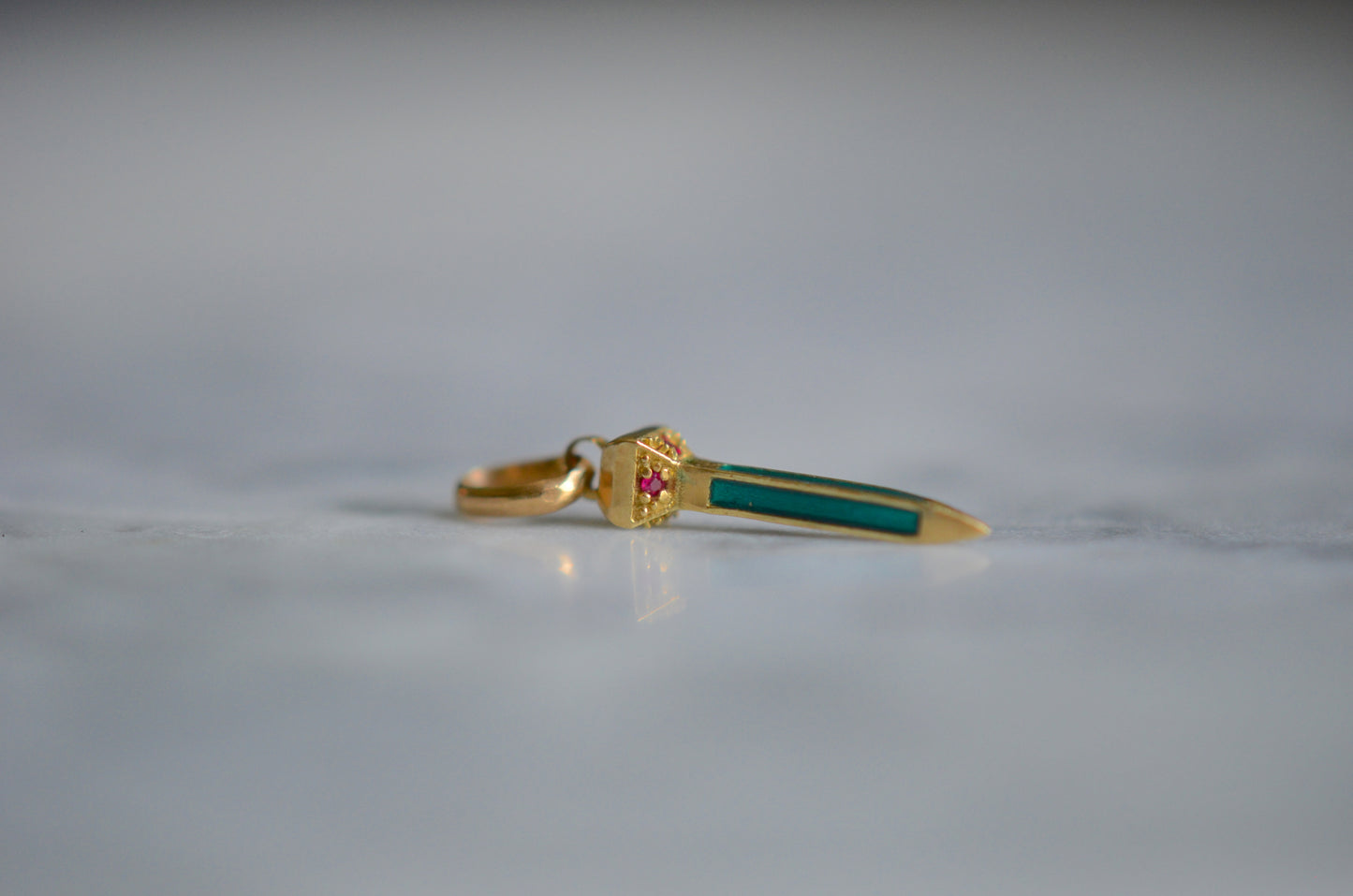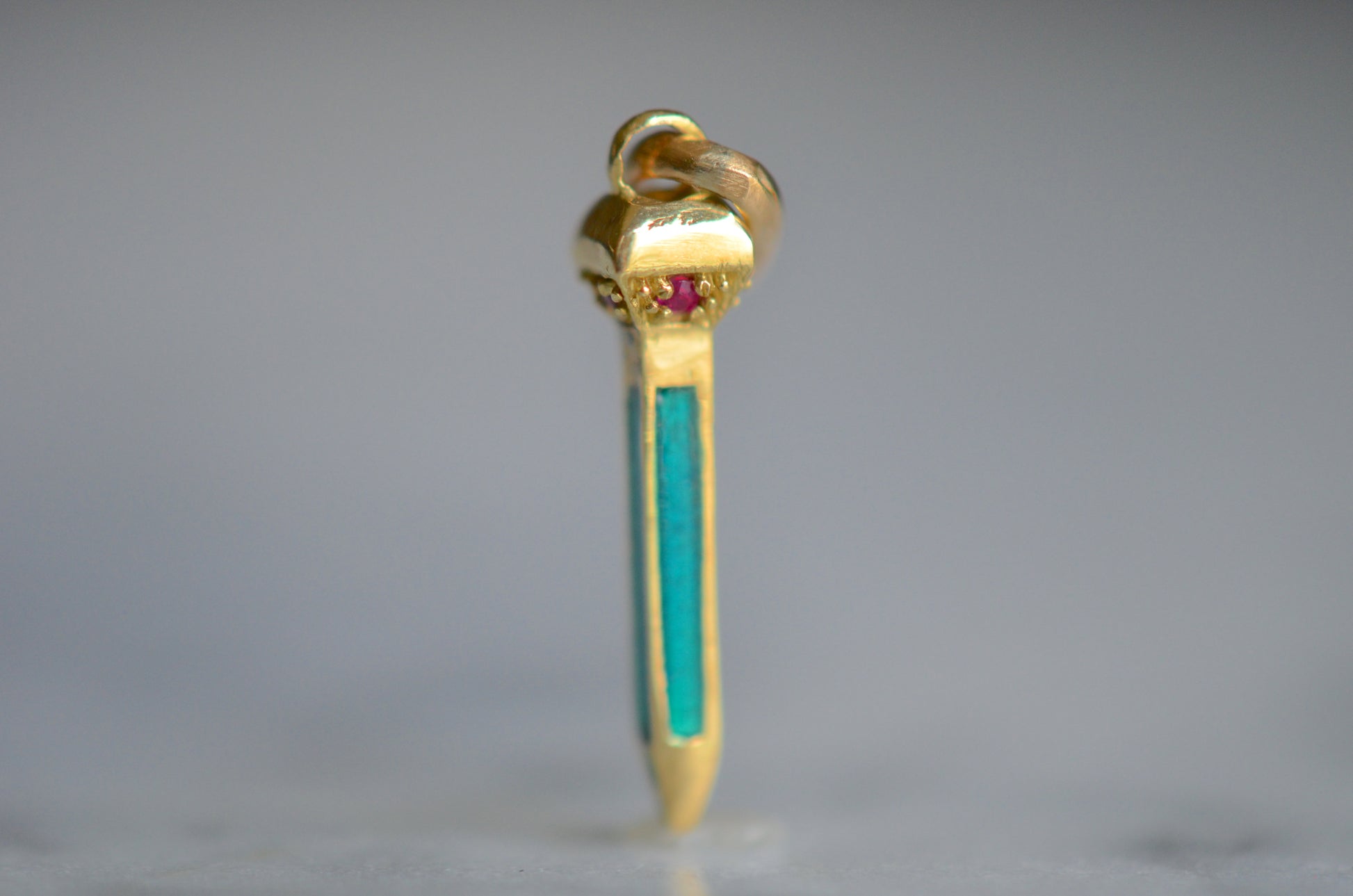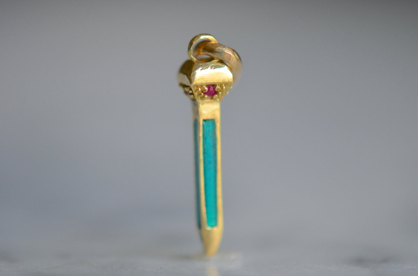 • Four rubies and blue-green enamel