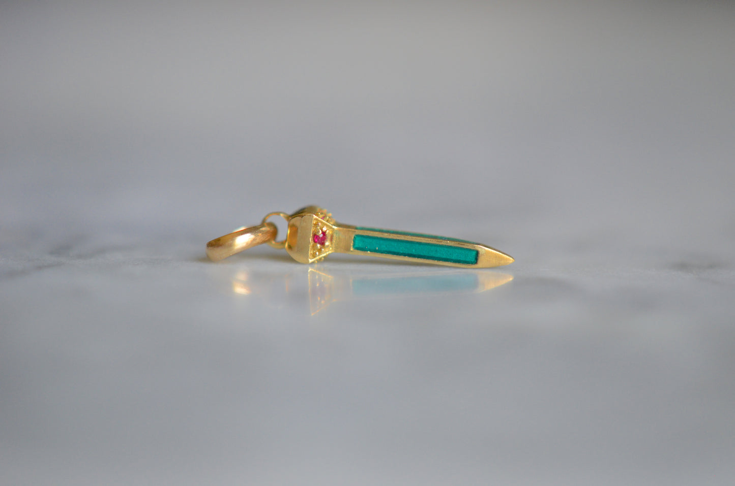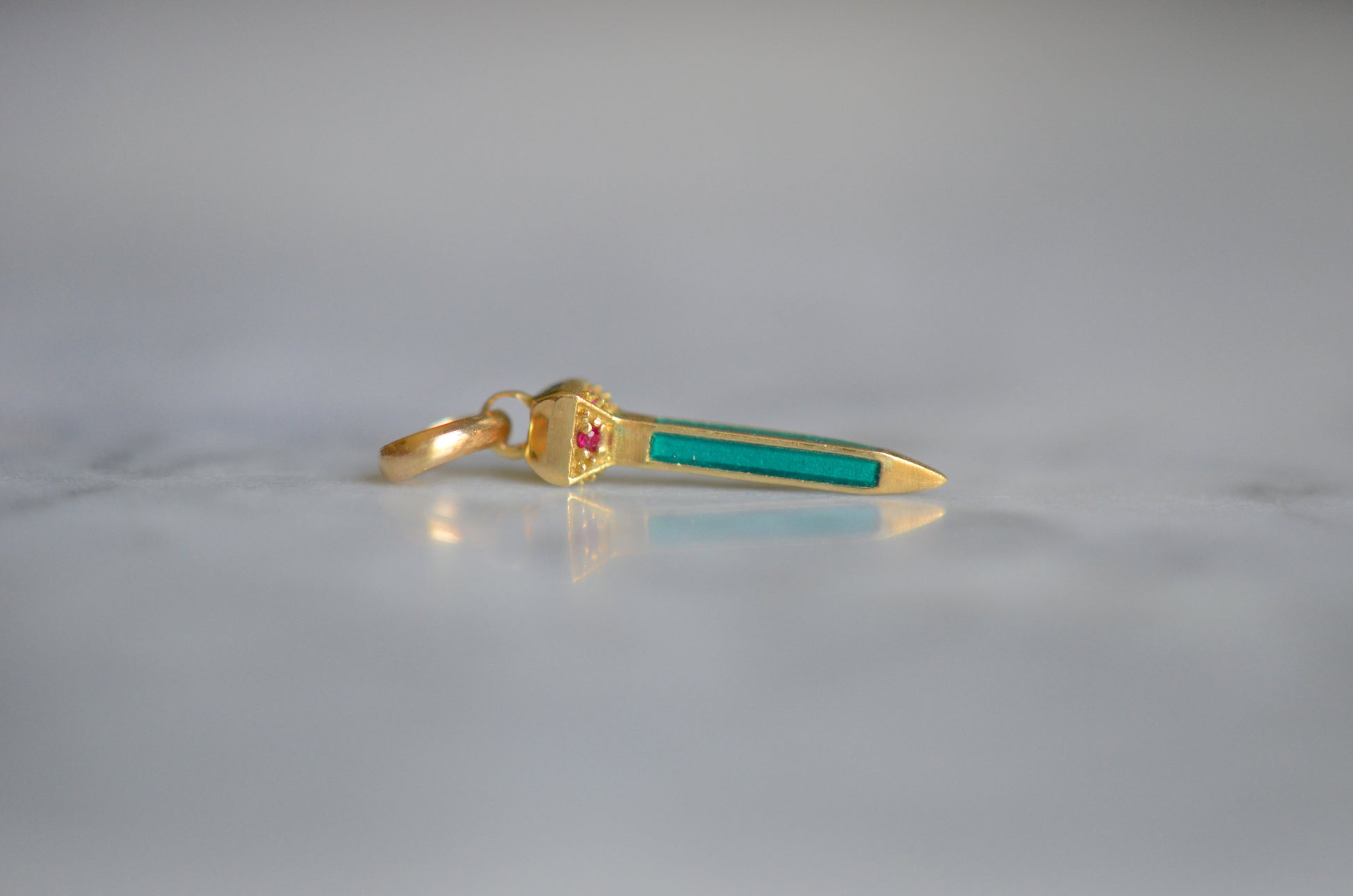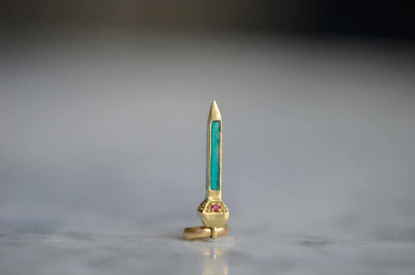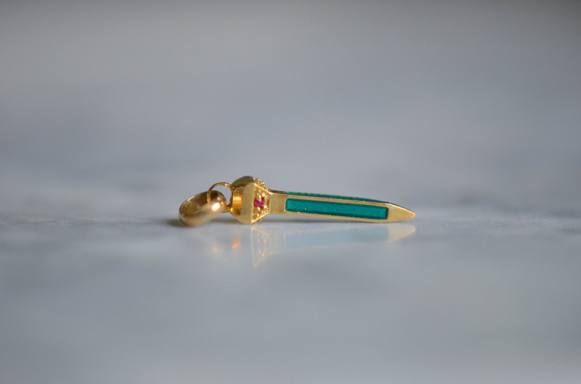 • Four rubies and blue-green enamel