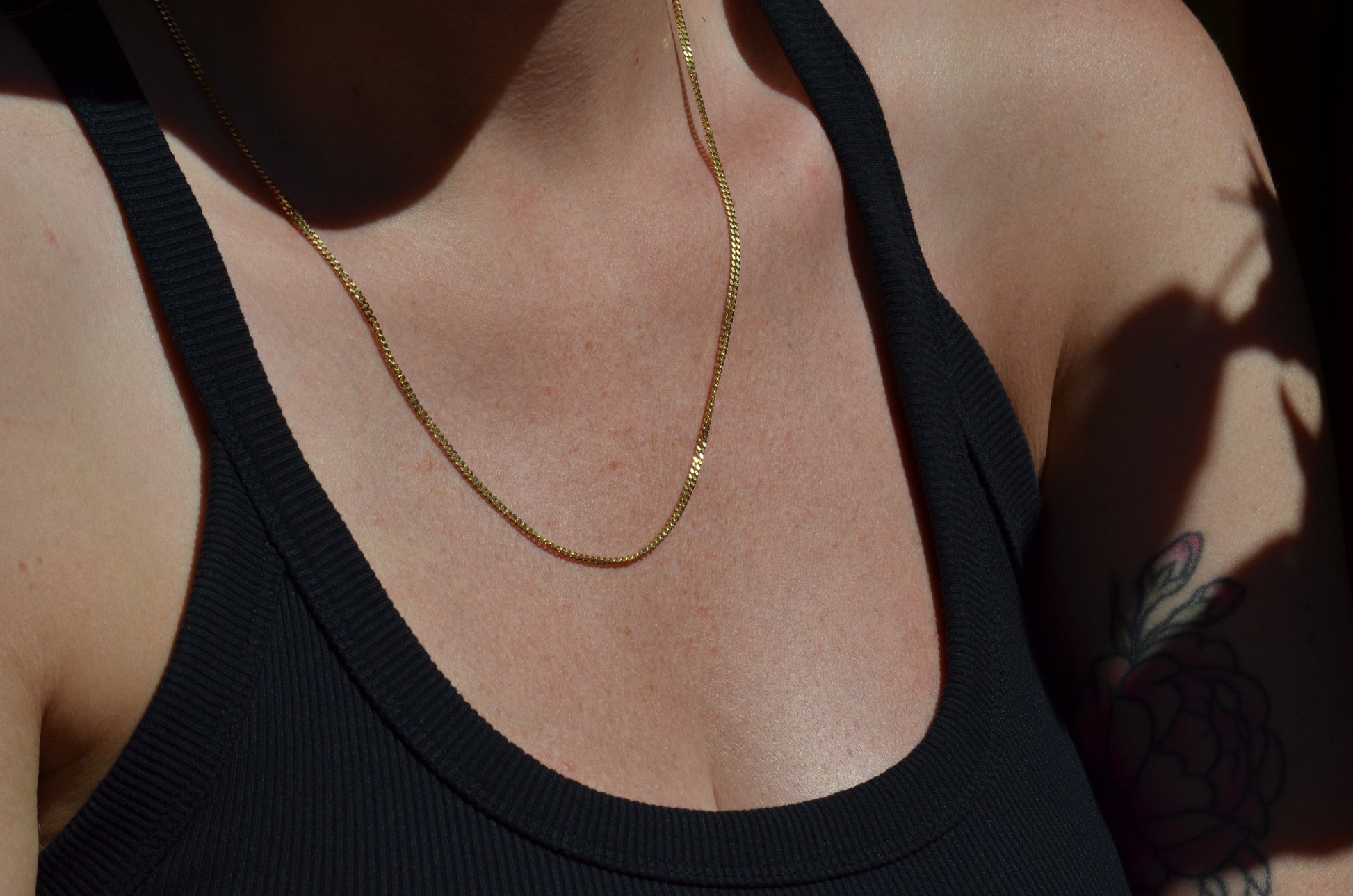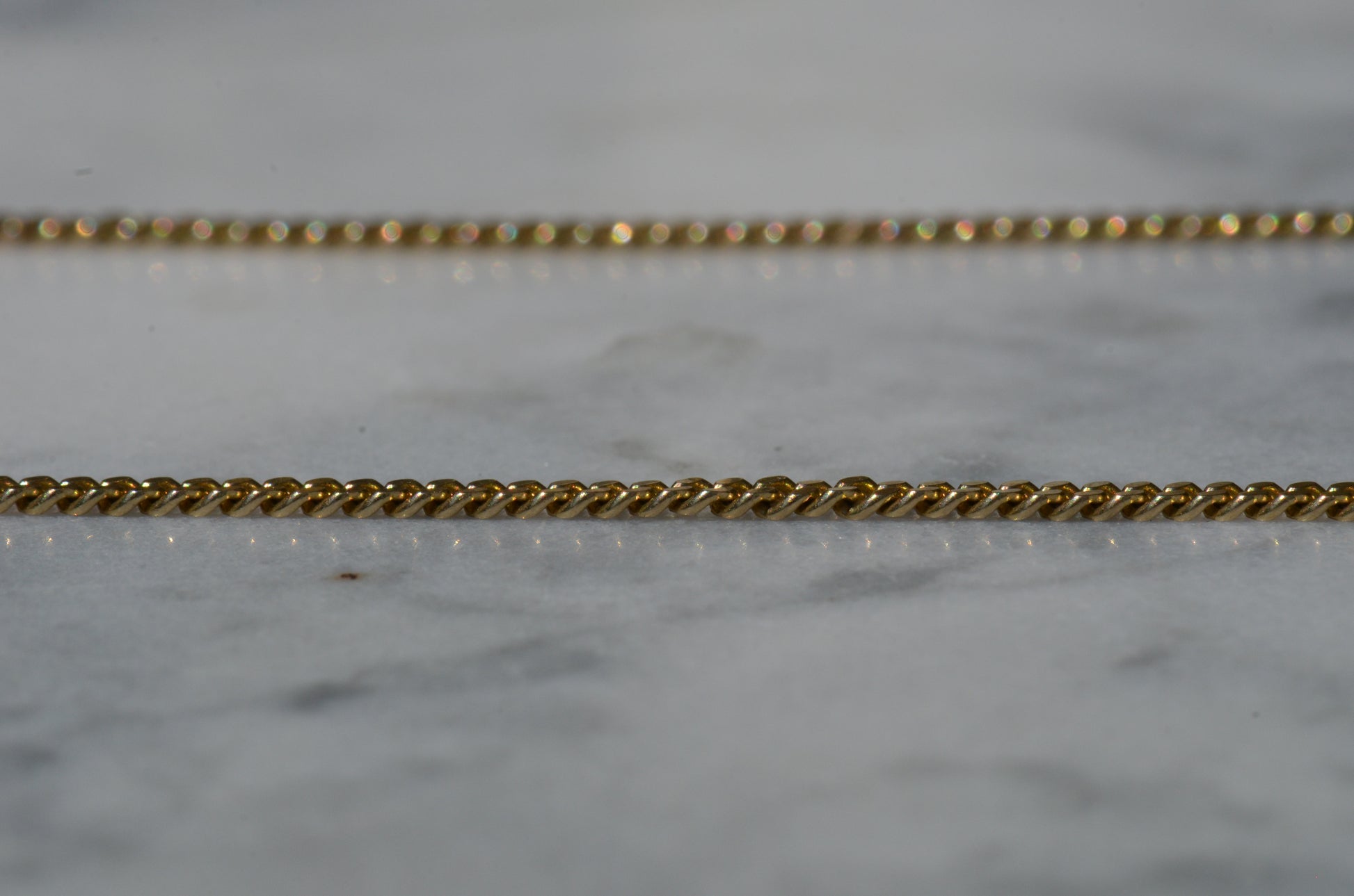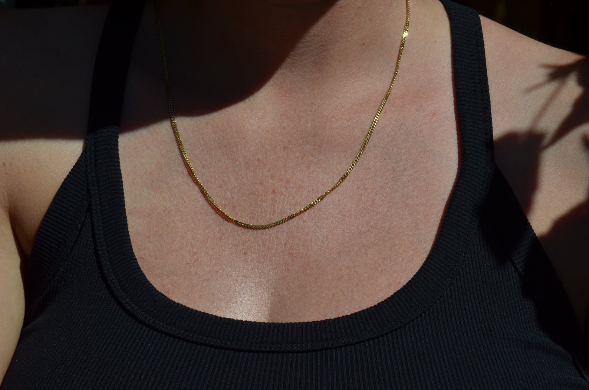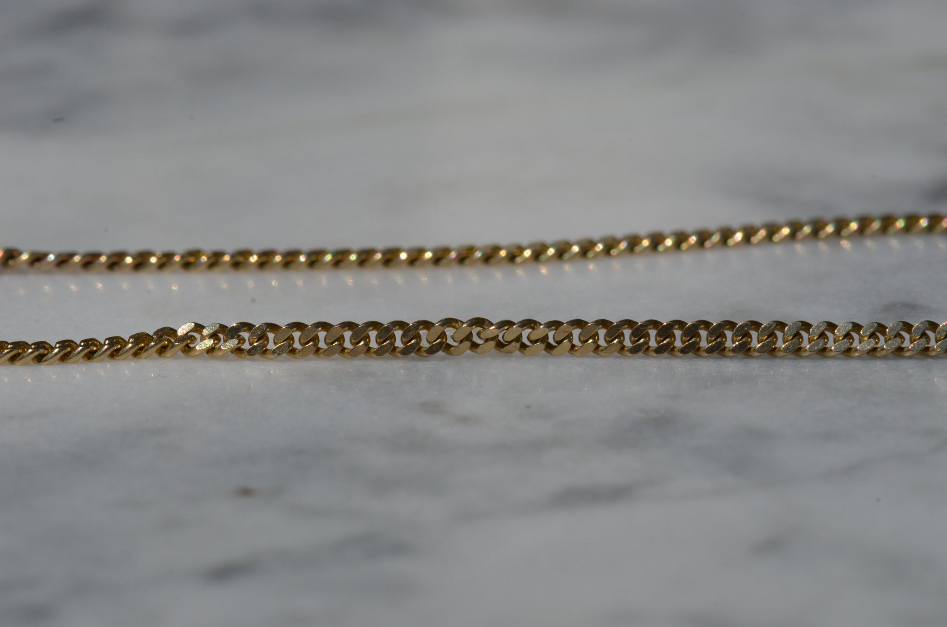 An ideal base layer, this vintage chain has a simple curb link with a high polish that catches the light perfectly. At a sturdy 2.1mm wide, this chain has workhorse potential and is well-suited to holding your daily charm jumble.